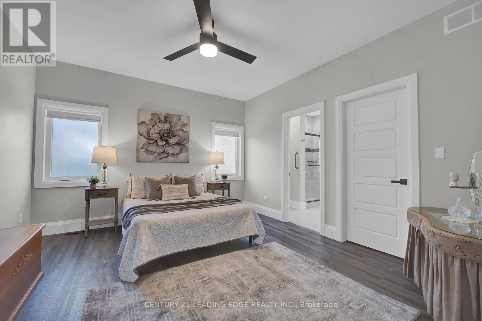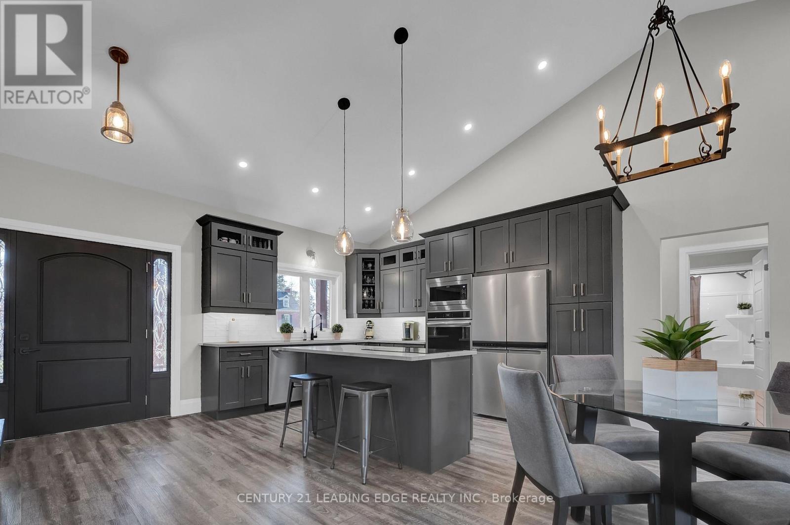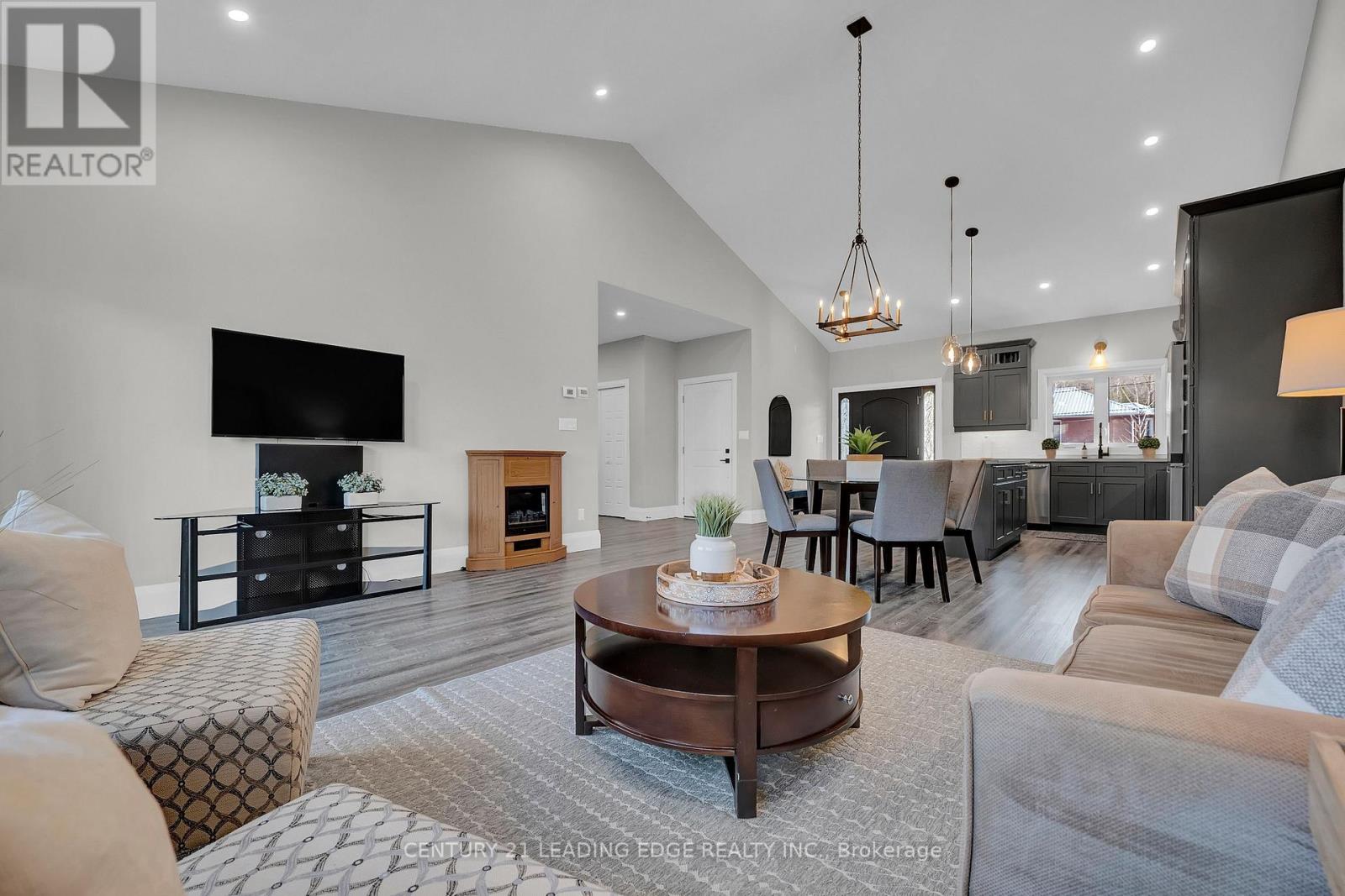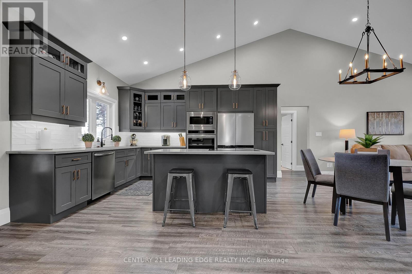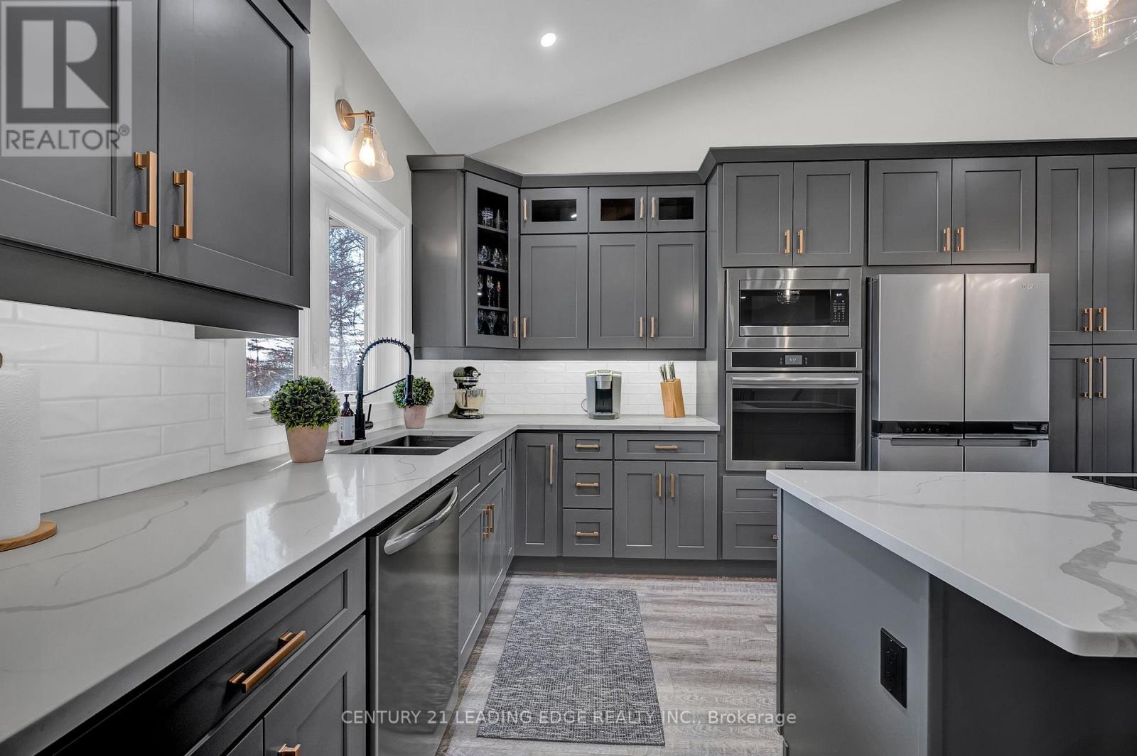 Welcome to 90 Second St, Campbellford, this custom built, 4 year old, 3+2 bedroom bungalow (1,500sqft) is situated on a desirable, 82' by 132' in-town lot! Offering approximately 2,900sqft of finished living space, this home will not disappoint! Front exterior includes a concrete walkway leading to a cozy covered front porch with wood accents and a 42" fiberglass front entry door. Entertain in style in this open concept layout which features a stunning 14' vaulted ceiling. An ultra modern kitchen with island, quartz counters, upgraded cabinets (wood drawers), modern light fixtures, plenty of storage & upscale appliances (s/s fridge, built-in oven, built-in microwave, induction cooktop & dishwasher). Spacious combined dining & living areas with pot lights and walk-out to composite deck & stone patio. A private primary bedroom with 9' ceiling, walk-in closet and a 4pc ensuite (large walk-in shower & double sinks). Good sized bedrooms 2 & 3 with double closets, large window and a 4pc bath (with linen closet) in-between. A designated main floor laundry room with plenty of cabinets and window. A fully finished basement with a huge recreation room (dual zones), two additional bedrooms (above grade windows) and 4pc bathroom. This quality built home offers modern construction features such as R30 ICF foundation, an oversized two car insulated garage & a 200amp electrical panel to name a few. Bonus 4 car driveway. Close walk to shopping, schools & waterfront trail! Tarion Warranty! (id:4555)