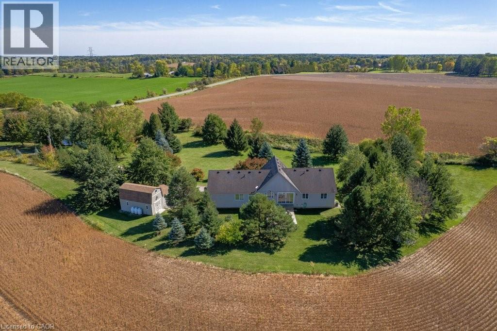 Welcome to 407 Harrisburg Road in the charming village of Troy! This beautiful country property offers the perfect blend of peaceful rural living with modern comforts. Nestled on almost 3.5 acres, the home boasts a classic design with inviting curb appeal, mature landscaping, and plenty of outdoor space for entertaining or relaxing. With a pond, shop with 220amp, and inground sprinkler system this property has everything you need! Step inside to find a bright, open layout featuring a welcoming living room with large windows, an open kitchen space and a dining area ideal for family gatherings. The home offers a finished lower level with flexible space for a rec room, home office, or in-law suite. Enjoy the serenity of your private backyard, complete with mature trees, lush greenery, and room for gardens, play areas, or future projects. A long driveway and detached shop provide plenty of parking and storage. Located just minutes to Brantford, Paris, and Cambridge, you’ll love the balance of small-town charm with quick access to amenities, schools, and commuter routes. (id:4555)