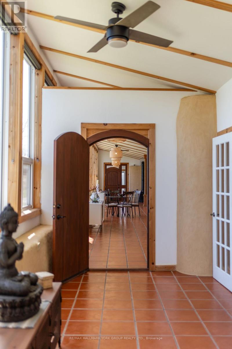 Opportunity Knocks! This stunning 4-bed, 2-bath Earthship Bungalow, boasting over 3000 sq. ft. of eco-friendly living space! Nestled on 20 acres of picturesque land with a tranquil stream, Built in 2011, this home welcomes you with a grand open-space hallway flooded with natural light. Enjoy passive Solar heating through south-facing windows, complemented by a charming wood-burning fireplace. With spacious bedrooms, a functional kitchen, and a luxurious soaker tub in the second bath, every detail exudes comfort and elegance. Step into your own tropical oasis with Terra-Cottatiles and tasteful finishes throughout. Meticulously maintained, this home reflects true pride of ownership! (id:4555)