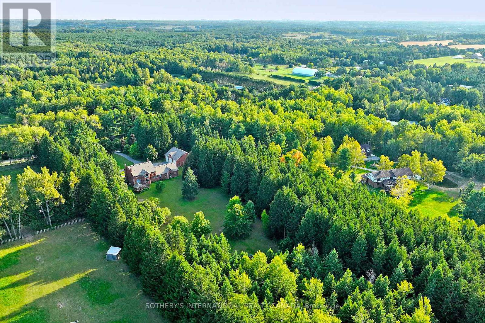 Discovering an extraordinary 10-acre private oasis with luxurious contemporary living at its finest. Enchanted forest surrounds massive table land, providing breathtaking greenery views and ideal setting for outdoor entertaining and large gatherings. Both the primary and secondary buildings are beautifully situated with lush landscapes. With easy access to Uxbridge equestrians, golf courses, ski resorts, fine dinings, optional groceries and shoppings, and fine schools. It also enjoys Markham and Toronto offerings within a 30-min drive. An immensely deep driveway sets seclusion apart from public roads. The tree lined lane and a circular landing gracefully leads an impressive arrival experience. Extensive renovations in 2017 and 2021. (Building #1) Main residence boasts appx 6,500 sf of total living incl 4,400 sf above grade. Main 9 foot ceilings. Popular ground level bedroom with full bath. Plus lower In-law suite. Enormous library/ofce. Fully updated Kitchen, Baths & Laundry. Lavish stone counters, slab surfacing & hardwood floorings. Premium millwork & cabinetry system. A complete set of upscale appliances. Splendid lighting fixtures & chandeliers. Newer Roof. Plenty of newer windows. Main attached garage park appx 6 cars. (Building #2) Detached standing alone additional garage/ workshop building. Appx 2000 sf interior & high appx 15 ft ceilings. An enclosed room, separate furnace, AC, ventilation, moisture barriers, coated flooring, newer roof & drywall, 6 large windows 3 bay doors, 270 AMP/240V e-panels. Ideal for car collectors, workshop pros & man cave champions. The enormous workshop opens to the magnificent outdoor spaces for a wealth of versatile and user friendly possibilities. Private walking trails end with charming gazebo and enlarged decks, inviting relaxing suburb retreats and gorgeous sunset views. For those seeking a perfect blend of tranquility, luxury, and amenity conveniences, this serene sanctuary cultivates endless mindfulness and family growth. (id:4555)