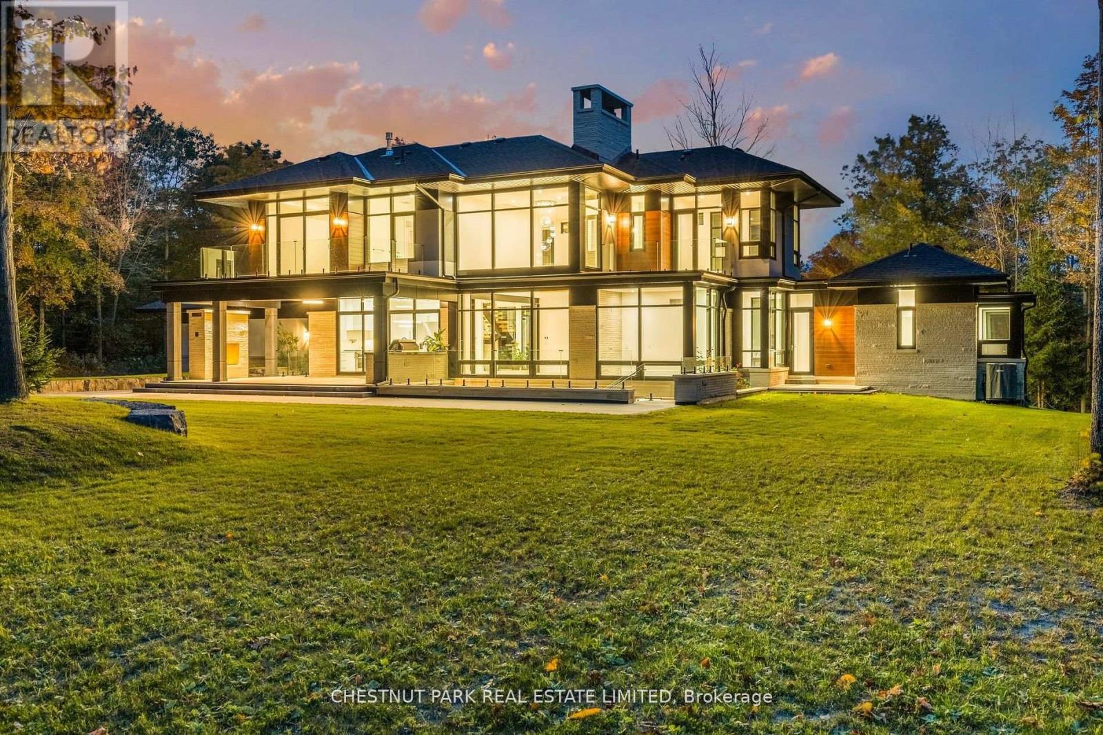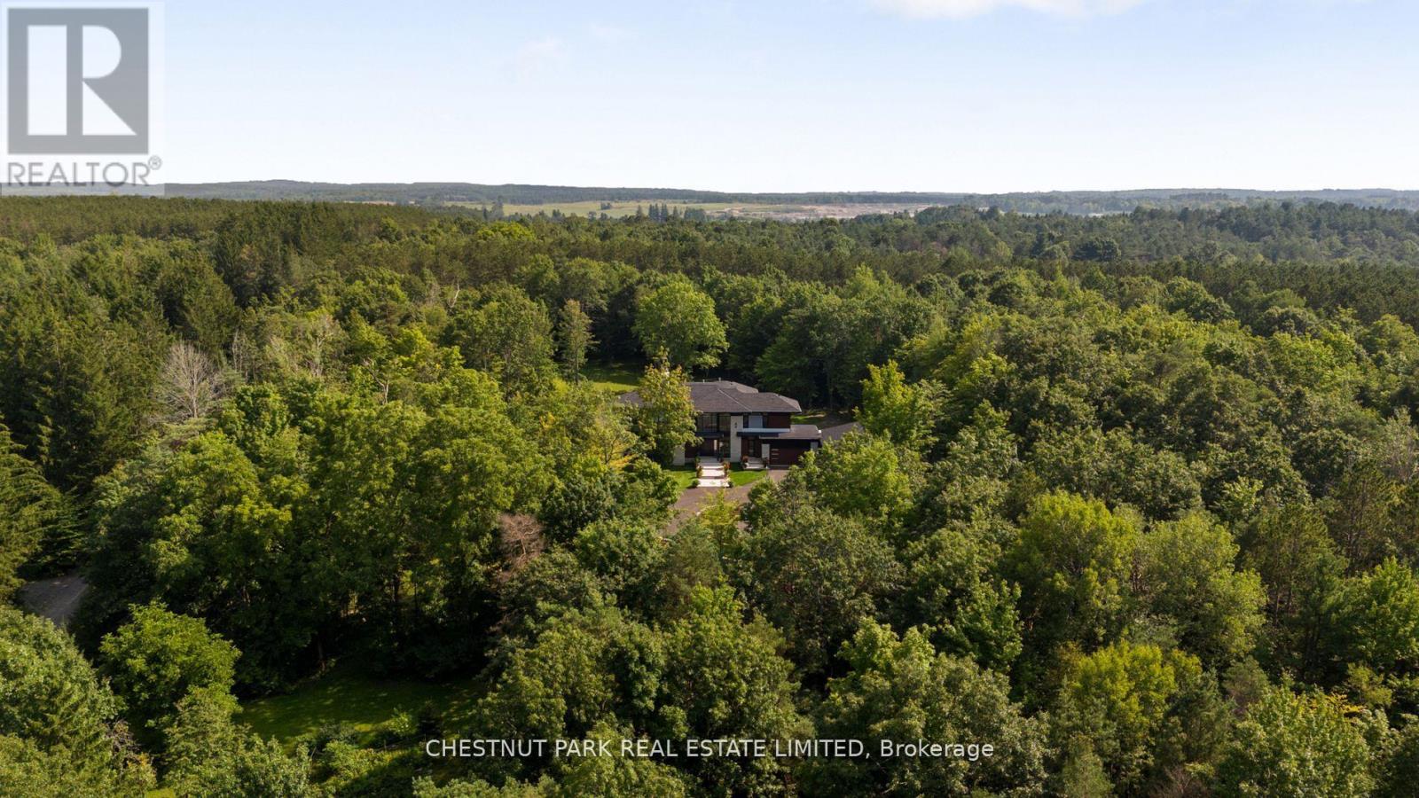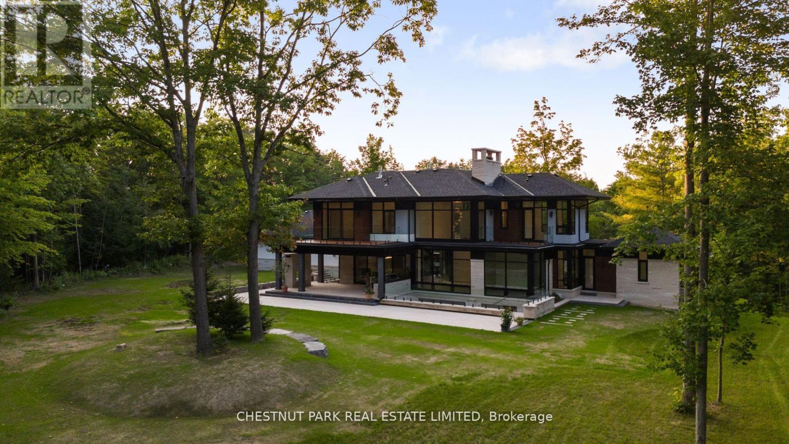 Over 11 acres - set in a premium location, on a highly coveted road in Uxbridge, this contemporary modern David Small Designs masterpiece was meticulously crafted with no expense spared. Newly constructed custom residence boasting 4+1 bedrooms & 6 bathrooms. The elegant facade features clean lines, organic textures, & expansive glass windows. Accentuated by rich wood tones & limestone detailing, this home blends beautifully into the breathtaking landscape. Upon entry, soaring ceilings & abundant natural light greet you. The gourmet kitchen & servery combine functionality with luxury. Two primary suites featuring walk-in closets, gas fireplaces, 5 piece ensuite, & private outdoor space. 3 more bedrooms, each with an ensuite & walk-out to decks. The lower level offers an unparalleled entertaining experience featuring a fully equipped second kitchen, recreation room & access to the outdoors. This premier resort-like property provides seamless indoor/outdoor living. Both an entertainer's dream & a private oasis, the outdoor space encompasses a large grassy yard & a stunning cabana, with a fireplace feature, an outdoor kitchen, & dining space. The estate promises leisure & luxury for friends, family, & party guests. The main house garage & second attached garage fit 5 cars. Only a 45 minute drive to Toronto, this residence stands as a testament to luxury living, seamlessly fusing technology, design, & comfort for an unparalleled living experience. **EXTRAS** Recreational options are boundless with cut trails throughout the entire property. The property backs onto lush conservation land and trails, enhancing its serene, countryside appeal. Minutes away, is the vibrant community of Uxbridge. (id:4555)