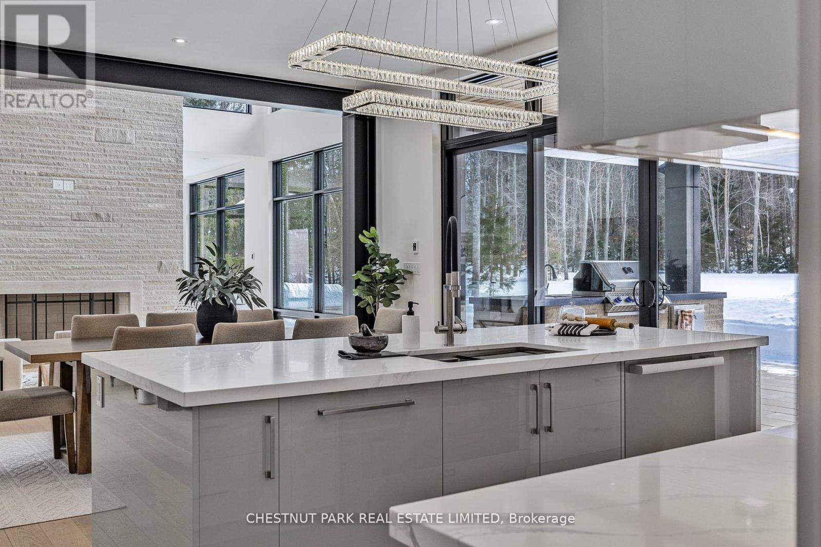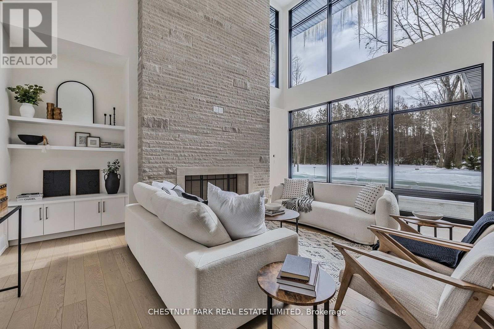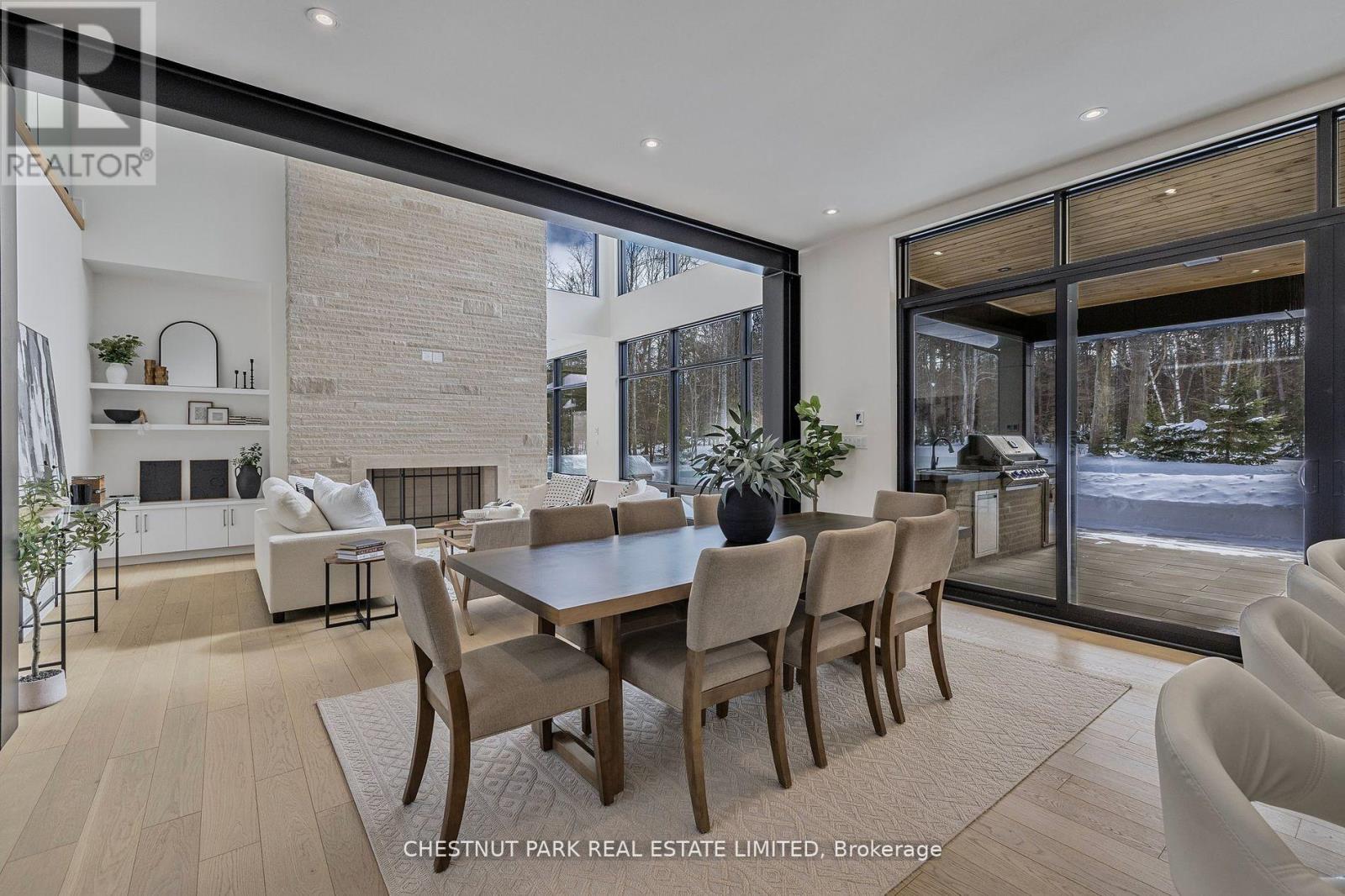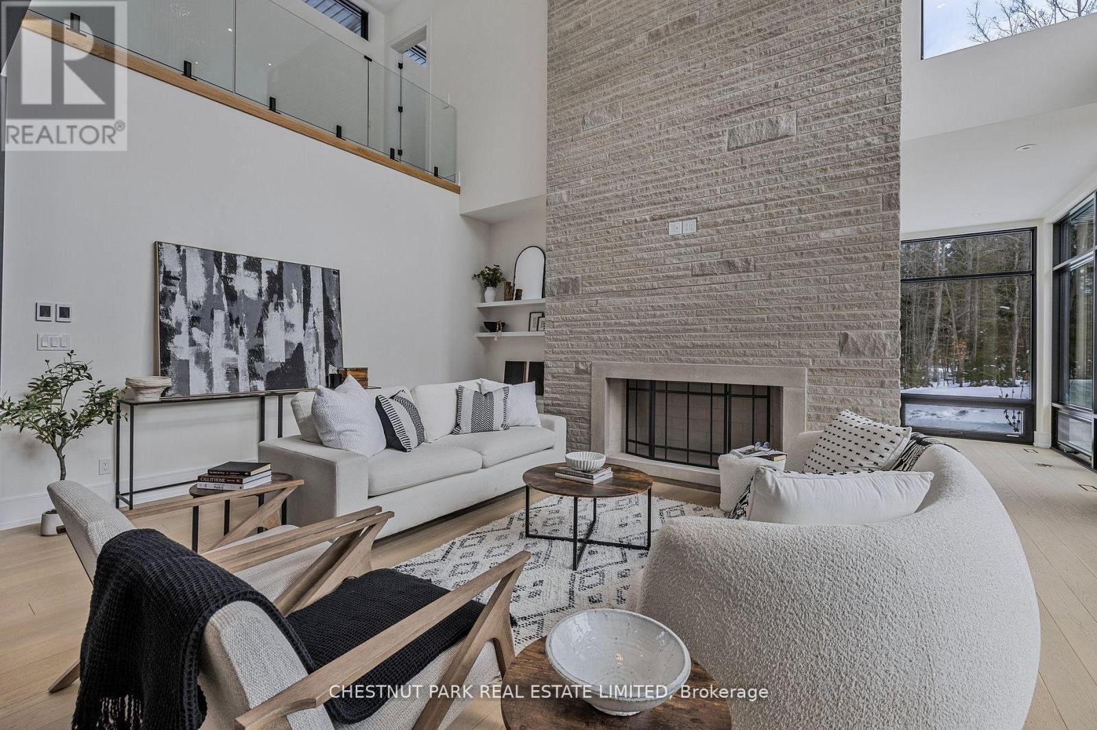 Over 11 acres - set in a premium location, on a highly coveted road in Uxbridge, this contemporary modern David Small Designs masterpiece was meticulously crafted with no expense spared. Newly constructed custom residence boasting 4+1 bedrooms & 6 bathrooms. The elegant facade features clean lines, organic textures, & expansive glass windows. Accentuated by rich wood tones & limestone detailing, this home blends beautifully into the breathtaking landscape. Upon entry, soaring ceilings & abundant natural light greet you. The gourmet kitchen & servery combine functionality with luxury. Two primary suites featuring walk-in closets, gas fireplaces, 5 piece ensuite, & private outdoor space. 3 more bedrooms, each with an ensuite & walk-out to decks. The lower level offers an unparalleled entertaining experience featuring a fully equipped second kitchen, recreation room & access to the outdoors. This premier resort-like property provides seamless indoor/outdoor living. Both an entertainer's dream & a private oasis, the outdoor space encompasses a large grassy yard & a stunning cabana, with a fireplace feature, an outdoor kitchen, & dining space. The estate promises leisure & luxury for friends, family, & party guests. The main house garage & second attached garage fit 5 cars. Only a 45 minute drive to Toronto, this residence stands as a testament to luxury living, seamlessly fusing technology, design, & comfort for an unparalleled living experience. **EXTRAS** Recreational options are boundless with cut trails throughout the entire property. The property backs onto lush conservation land and trails, enhancing its serene, countryside appeal. Minutes away, is the vibrant community of Uxbridge. (id:4555)
