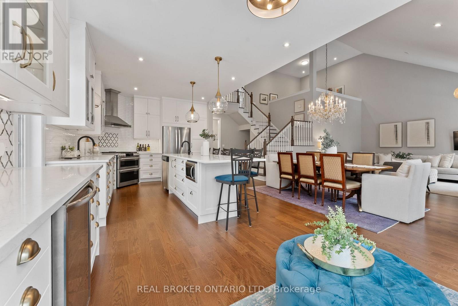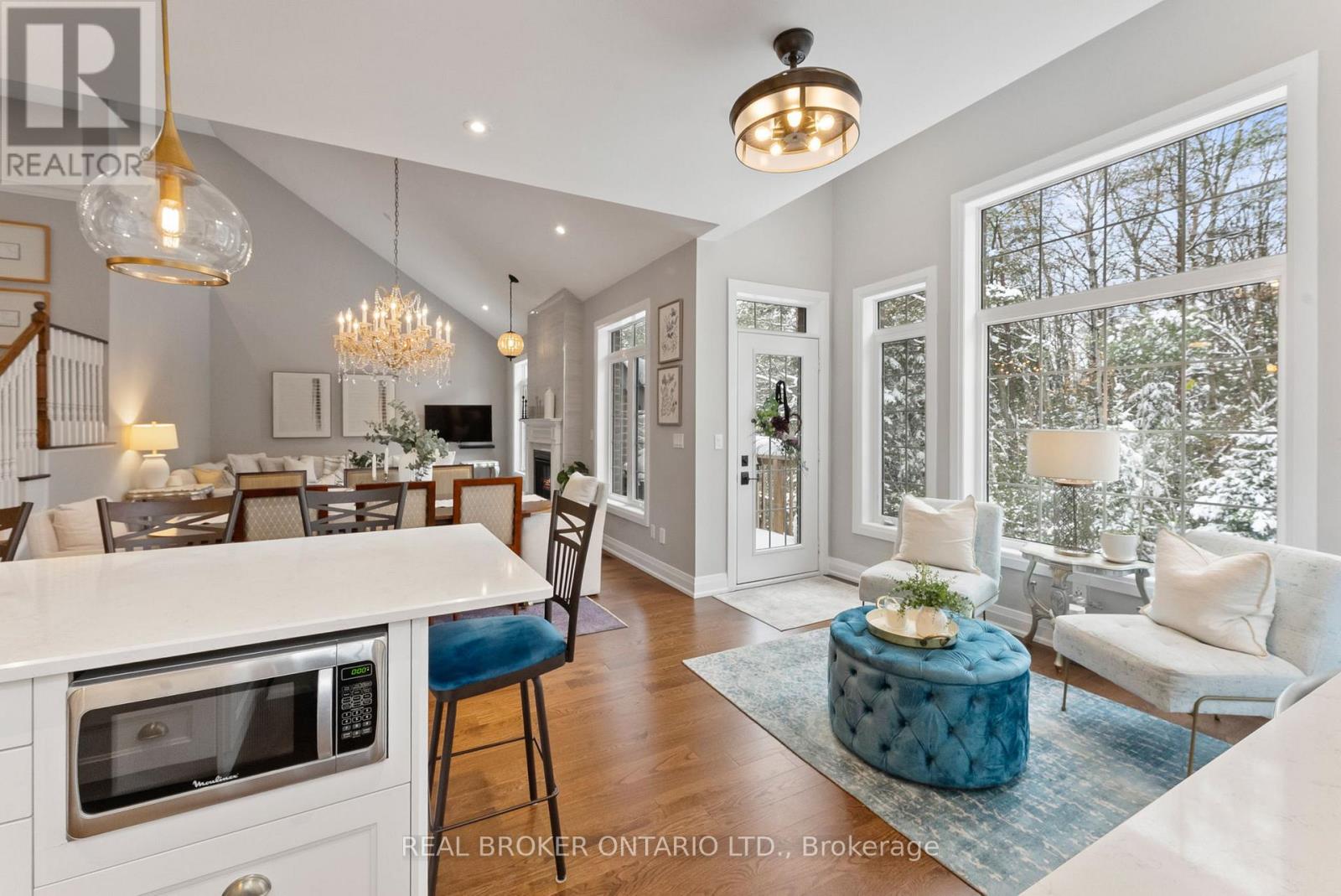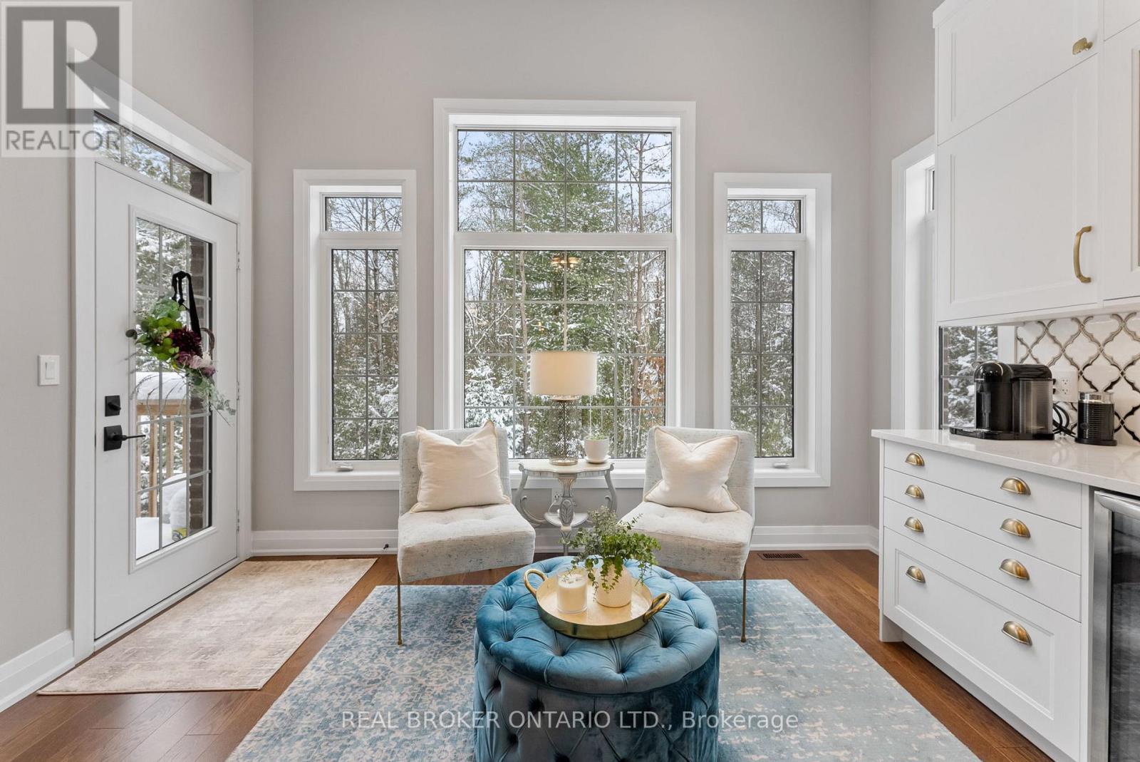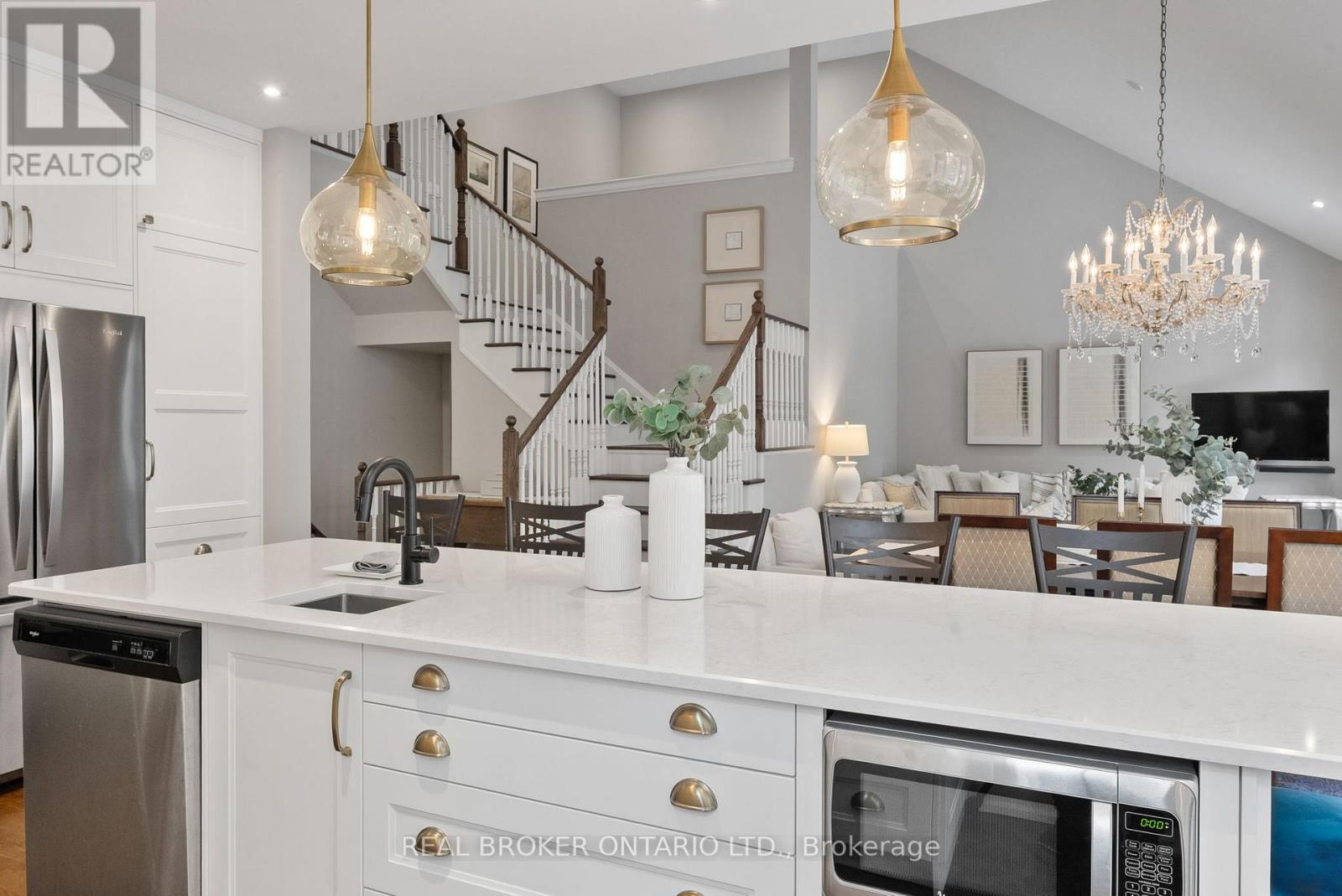 Whether you're downsizing from a larger property that's become too much to maintain, or simply searching for the perfect home in one of Uxbridge's best locations - this is the one. Welcome to Winding Trail, a highly sought-after enclave in the heart of Uxbridge where luxury and low-maintenance living meet. From the moment you step inside, you'll be impressed by the sense of space, natural light, and soaring 20-foot cathedral ceilings that create an immediate WOW factor. This home is deceiving - not only in size, but in the exceptional finishes, craftsmanship, and thoughtful design touches throughout. Completely updated and customized, this end-unit bungalow townhome is truly one-of-a-kind. The owners thoughtfully modified the original builder floorplans to create a layout unlike anything else on the street - combining elegance, function, and comfort in perfect balance. With over 3,000 sq. ft. of finished living space, this home features 9-foot ceilings, hardwood throughout, and a fully custom kitchen with a large island, coffee bar, and sitting area overlooking the ravine. The main floor primary bedroom (currently used as a sitting room/office) allows for complete main floor living. This pairs beautifully with a mudroom and main floor laundry offering direct access to the two-car garage. An incredible open loft area separates the two floors making the perfect office or sitting area. Upstairs, discover two generous bedrooms, including a second primary suite with a five-piece ensuite, and another bedroom with an office nook and three-piece bath. The fully finished walkout basement extends the living space with full-size windows and doors, a large recreation room with dry bar and games area, an additional bedroom with full-size windows and closet, a three-piece bath, and ample storage. Backing onto a peaceful ravine in the Trail Capital of Canada, and just steps from Wooden Sticks Golf Course, this property offers an unmatched blend of luxury, privacy, and convenience. (id:4555)