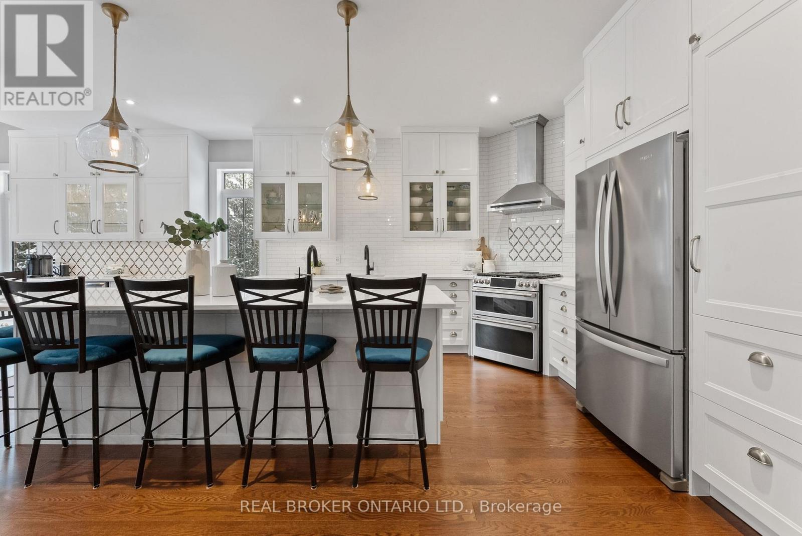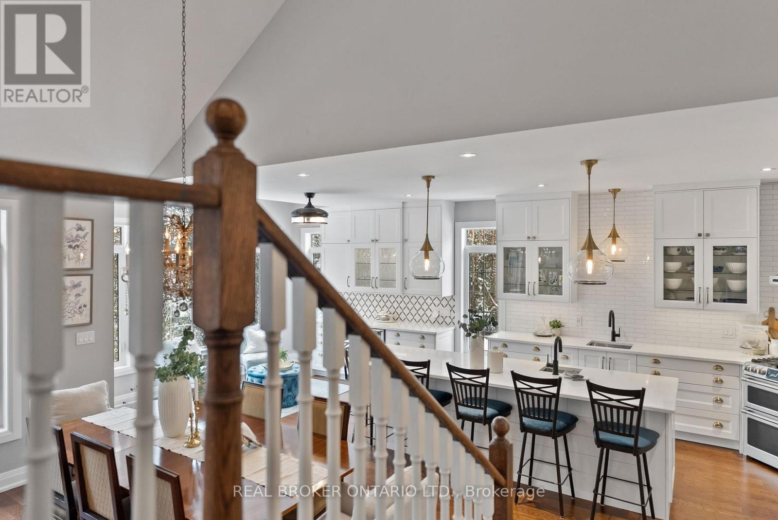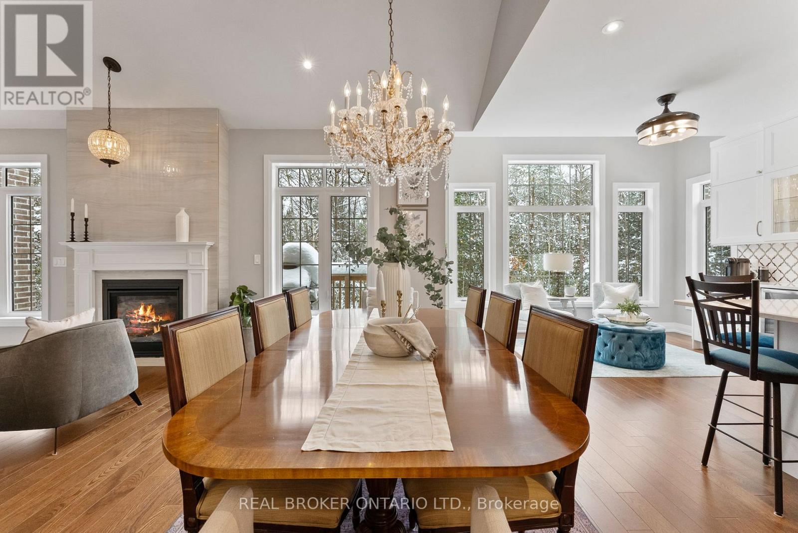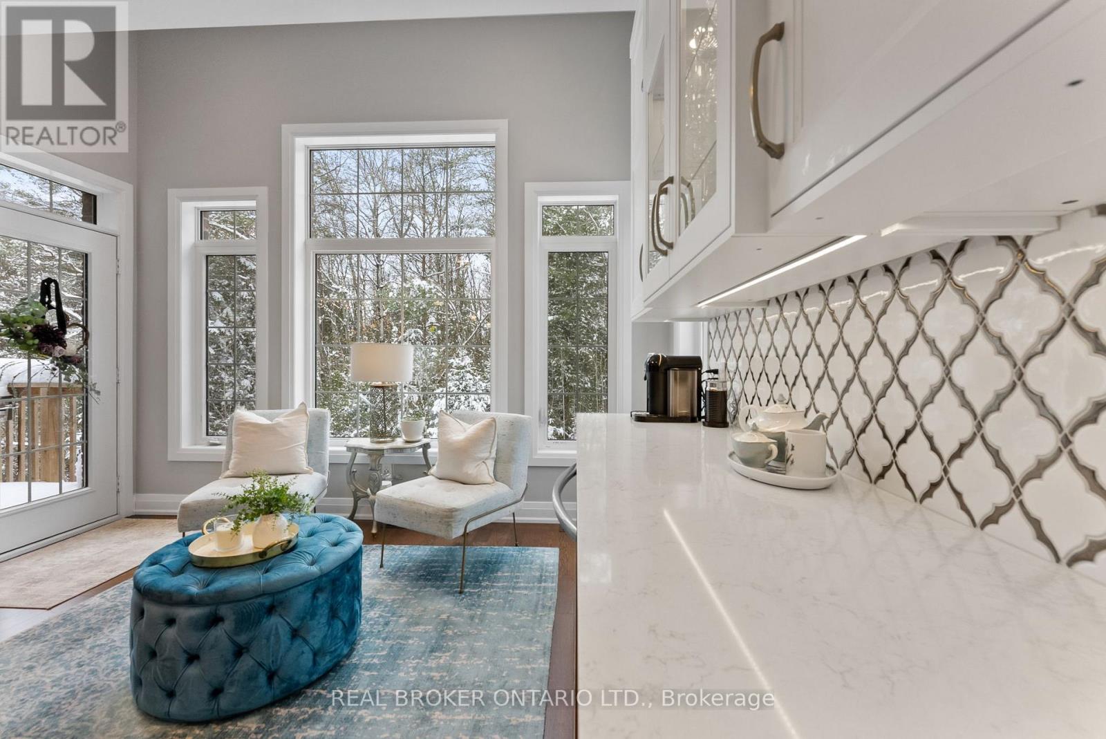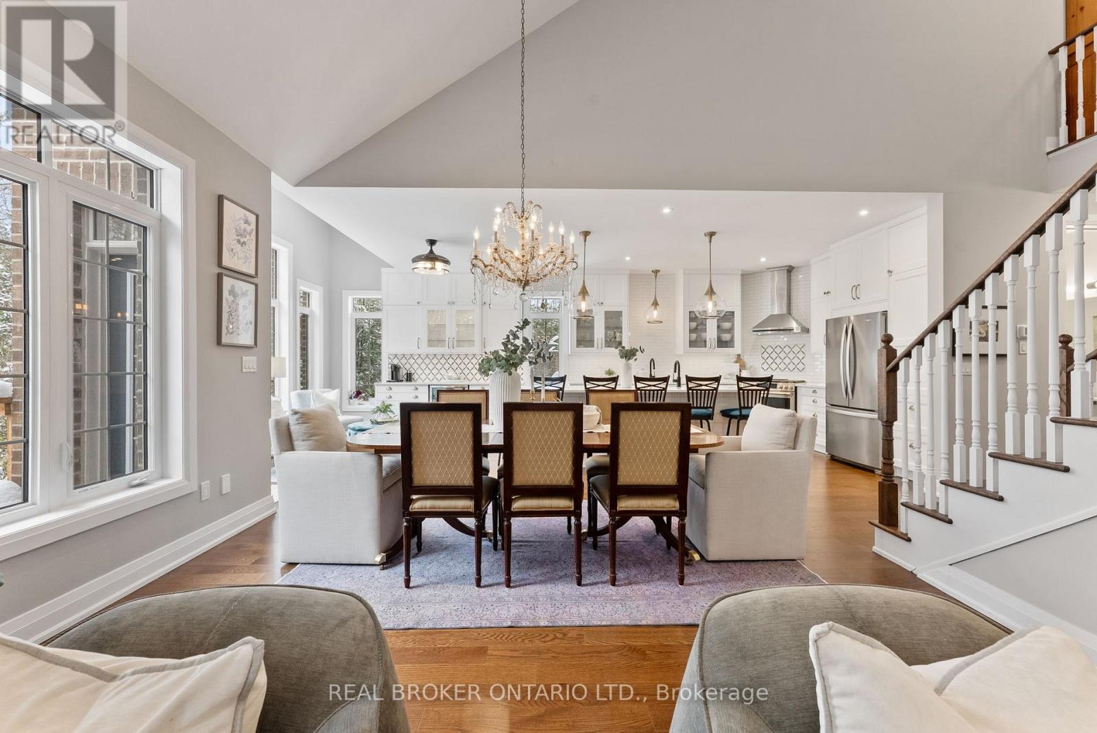 Whether you're downsizing from a larger property that's become too much to maintain, or simply searching for the perfect home in one of Uxbridge's best locations - this is the one. Welcome to Winding Trail, a highly sought-after enclave in the heart of Uxbridge where luxury and low-maintenance living meet. From the moment you step inside, you'll be impressed by the sense of space, natural light, and soaring 20-foot cathedral ceilings that create an immediate WOW factor. This home is deceiving - not only in size, but in the exceptional finishes, craftsmanship, and thoughtful design touches throughout. Completely updated and customized, this end-unit bungalow townhome is truly one-of-a-kind. The owners thoughtfully modified the original builder floorplans to create a layout unlike anything else on the street - combining elegance, function, and comfort in perfect balance. With over 3,000 sq. ft. of finished living space, this home features 9-foot ceilings, hardwood throughout, and a fully custom kitchen with a large island, coffee bar, and sitting area overlooking the ravine. The main floor primary bedroom (currently used as a sitting room/office) allows for complete main floor living. This pairs beautifully with a mudroom and main floor laundry offering direct access to the two-car garage. An incredible open loft area separates the two floors making the perfect office or sitting area. Upstairs, discover two generous bedrooms, including a second primary suite with a five-piece ensuite, and another bedroom with an office nook and three-piece bath. The fully finished walkout basement extends the living space with full-size windows and doors, a large recreation room with dry bar and games area, an additional bedroom with full-size windows and closet, a three-piece bath, and ample storage. Backing onto a peaceful ravine in the Trail Capital of Canada, and just steps from Wooden Sticks Golf Course, this property offers an unmatched blend of luxury, privacy, and convenience. (id:4555)