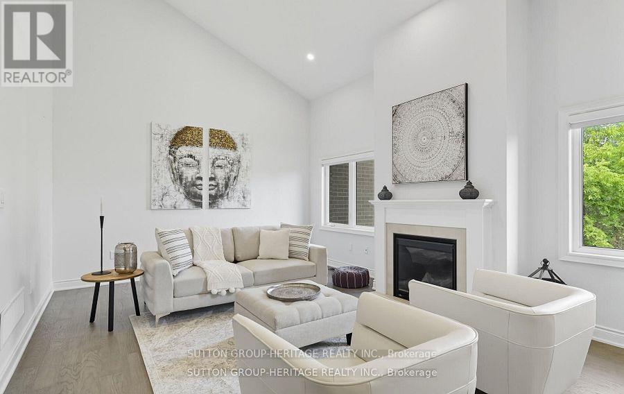 Spectacular Bungaloft Townhome Backing to Ravine in Uxbridge. Beautiful finishes with Hardwood Floors, Crown Moldings, Pot Lights, Upgraded Trim and baseboards. Main floor Primary Bedroom with large 4 Pce double sink Glass shower ensuite and Walk in Closet. Kitchen with 10' ceilings open to Great Room with Vaulted Ceilings and Gas Fireplace. Main floor Laundry with Inside access to the double Garage. Unfinished walk-out basement with 9'ceilings. Custom Power Blinds throughout. (id:4555)