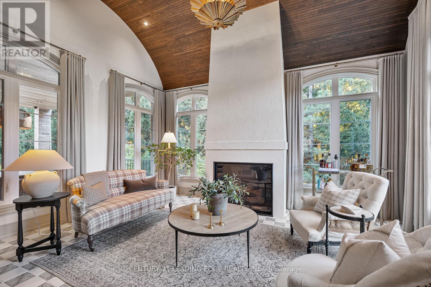 Set on nearly 1.5 acres and enveloped by untouched forest, this remarkable estate boasts more than 8,000 square feet of finished living space, including a walk-up basement, ideal for both single-family or multi-generational living. Expertly crafted and privately constructed outside of standard builder specifications, this home was professionally designed by a House & Home Top Designer. Every detail has been carefully planned and curated for both function and beauty, from premium wall finishes and distinctive tile work to dramatic beamed ceilings and statement light fixtures, just to name a few. Whole home automation provides easy controls of security, climate, cameras, Lutron lighting & automated blinds, garage doors and even media. The main floor flows effortlessly, featuring a formal conservatory wrapped in windows, a spacious dining room that opens to the terrace, a stylish office, and a highly functional mudroom. The top-of-the-line custom chef's kitchen includes professional-grade Miele appliances, a Lacanche range, a cozy breakfast area with hidden coffee bar, and a butler's pantry, all overlooking the stunning great room, ideal for entertaining. Upstairs, the luxurious primary suite offers a gas fireplace, wet bar/coffee station, spa-like ensuite, and His & Hers dressing rooms. The finished walk-up basement is equally impressive, with a large recreation room, oversized kitchenette, fifth bedroom, two bathrooms, craft and play rooms, pantry, and a dedicated golf simulator for the sports enthusiast. Outside, the home is professionally landscaped for a grand garden feel. A covered terrace with outdoor kitchen expands your living space. Three garages (one with a lift) hold four vehicles, including access to a flexible space currently used as a private gym. This one-of-a-kind home, with millions spent on custom upgrades, is ready to be appreciated for its luxury and charm. (id:4555)