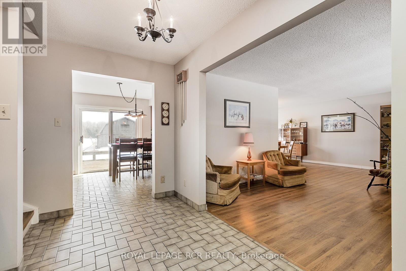 Rare Premium Private 10 Acre Parcel with Southern Exposure, Mature Trees, 2966 SQFT 5 Bedroom Home w/ 3 Car Garage + Storage Loft + Finished Basement, 3 Car 35x21 Detached Workshop + Loft, 6 Stall Barn + Hay Loft, 3 Paddocks, and Acre Pond on Desirable Feasby Road. Enter through the long tree-lined private driveway into your own country retreat. Custom built 2966 SQFT 5 Bedroom 4-Level Sidesplit offers large principal rooms, a covered front porch, a bright open-concept layout and two kitchens. Oversized Family Room with laminate flooring, wood stove and multiple walk-outs to the patio. Spacious Combined Dining/Living Room with laminate flooring. Primary Suite with walk-in closet and 3-piece ensuite. 5th Bedroom with 3 piece bathroom, kitchen and laundry room is ideal for multi-generational living. 3 Car Detached Garage/Workshop (1991) is insulated/heated with a wood stove, electric blower and propane heater as well as a storage loft. 6 Stall Barn w/ Hay Loft (1986), Tack Room, Shavings Storage Room, and Hydro. The majority of the lot is open and dry with the perimeter of the lot lined with mature trees enhancing the privacy and natural setting. Original Long-Time Owners. First Time Offered. Quiet Dead-End Section of Feasby Road Offers Privacy and Low Traffic. (id:4555)