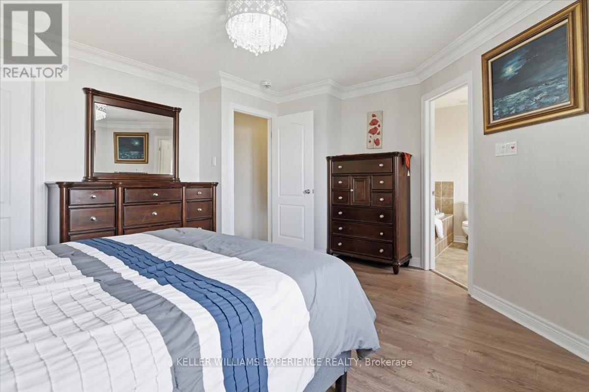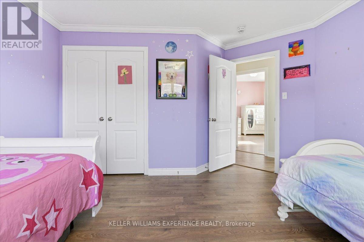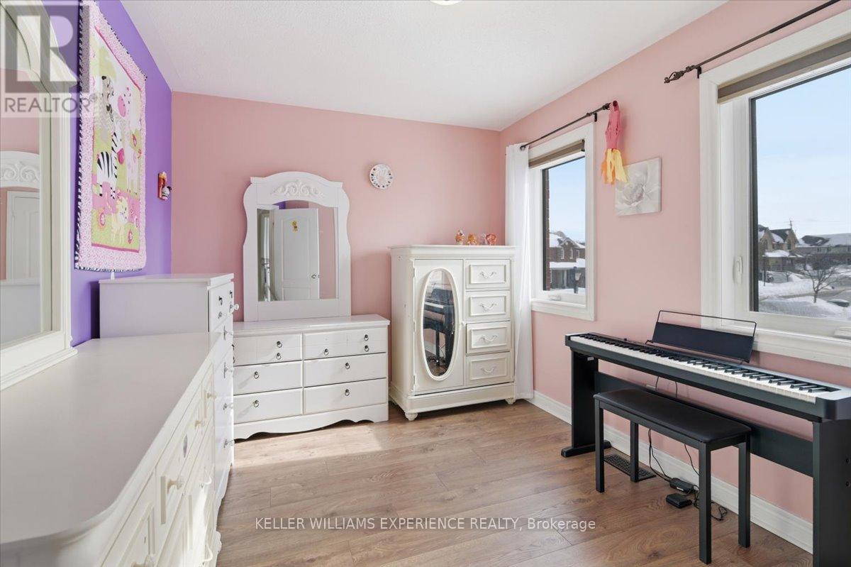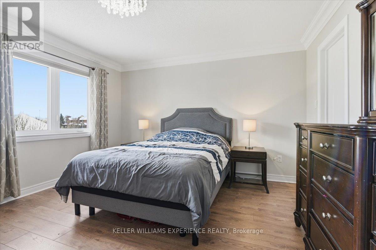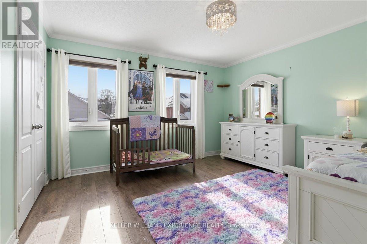 Welcome to this beautifully maintained semi-detached home offering 1,986 sq ft of bright, functional living space on a family-friendly court. Enjoy a covered front porch, classic solid brick exterior, and convenient access to parks, Bonner Fields, and schools all within walking distance. The front door and windows were updated just 3 years ago, and both front and backyard landscaping have been thoughtfully completed. Inside, the main floor features 9-foot ceilings, hardwood flooring, and large windows that flood the space with natural light. The open-concept living and dining area flows seamlessly into the kitchen and breakfast space, highlighted with pot lights, and walkout access to the backyard - perfect for everyday living and entertaining. A powder room and direct access to the single-car garage with automatic door opener add extra convenience. Upstairs, the spacious principal bedroom boasts crown molding, a walk-in closet, and a luxurious 4-piece ensuite with, soaker tub, and separate glass shower. Three additional generously sized bedrooms, each with large windows and ample closet space, share a 4-piece bathroom. A second-floor laundry room adds practical convenience. The unfinished lower level offers excellent potential, with high ceilings and a rough-in for a full bathroom - ideal for a recreation room, guest suite, or additional living space. With parking for three vehicles between the garage and driveway, modern updates, and a sought-after location, this home is ready to welcome its next family. (id:4555)