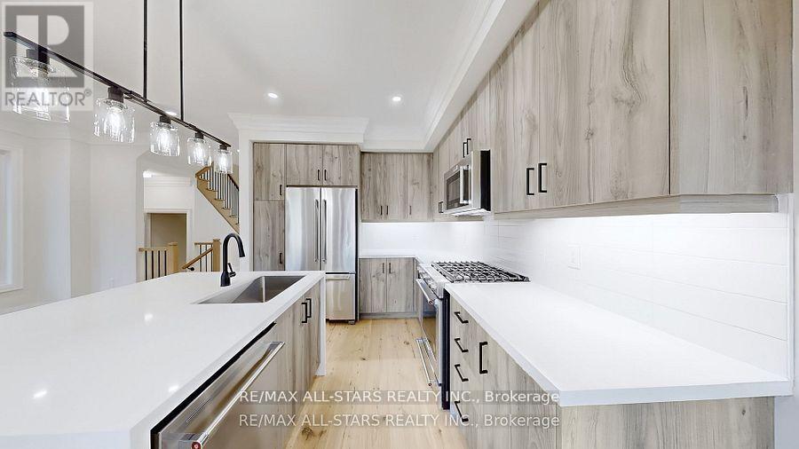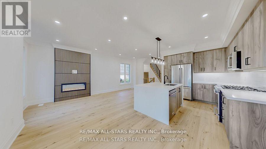 When only "brand new" will do! This custom-built "freehold" semi by top-ranked Tarion builder Coral Creek Homes offers 2,400 sq ft of thoughtfully designed living space. The fully finished basement features above-grade windows, plush carpet, a spacious rec area, 3-piece bath, and ample storage. The maintenance-free brick and stone exterior is complemented by a paved driveway, sodded yard, and 6' rear privacy fence. Step out from the kitchen to the deck with direct BBQ gas line-perfect for entertaining. Inside, 9' ceilings enhance the open, bright feel. Upgraded 7 3/4" hardwood and large porcelain tile flow throughout. Stylish trim includes 7" baseboards, 3" casings, 7' doors, and 7" crown molding on main floor, hallway, and primary bedroom. Oak stairs with black steel pickets add architectural flair. Modern black fixtures, matte hardware, and LED pot lights complete the modern aesthetic look. The family room boasts a 42" electric fireplace within a wood feature wall setting and is pre-wired for a flat screen TV. Upstairs, three bedrooms include a luxurious primary suite with hardwood floors, large windows, walk-in closet with organizer, crown molding, and sleek 5-piece ensuite. The conveniently positioned second-floor laundry offers an LG washer/dryer, quartz folding counter, cabinetry, sink, and tile floor. The bright, stylish kitchen overlooks family and dining areas with a quartz waterfall island, subway tile backsplash, valence lighting, soft-close cabinets, and KitchenAid appliances. Located within easy walking distance to Uxbridge High School, Joseph Gould Public School, parks, Uxpool, curling club, and downtown shopping, this home also includes a 7-year Tarion New Home Warranty. Call this beauty home and enjoy style, comfort, and peace of mind all in one. (id:4555)