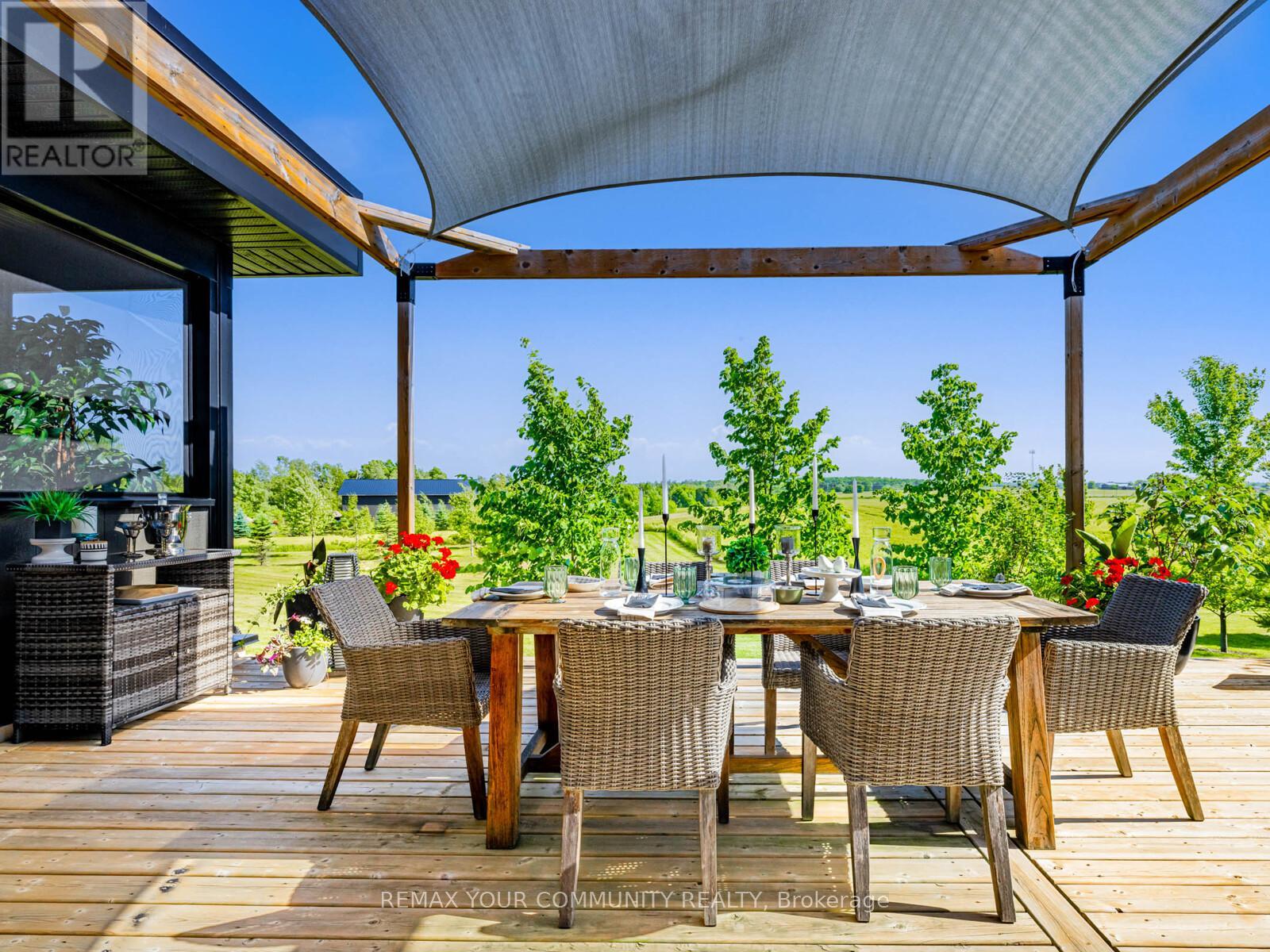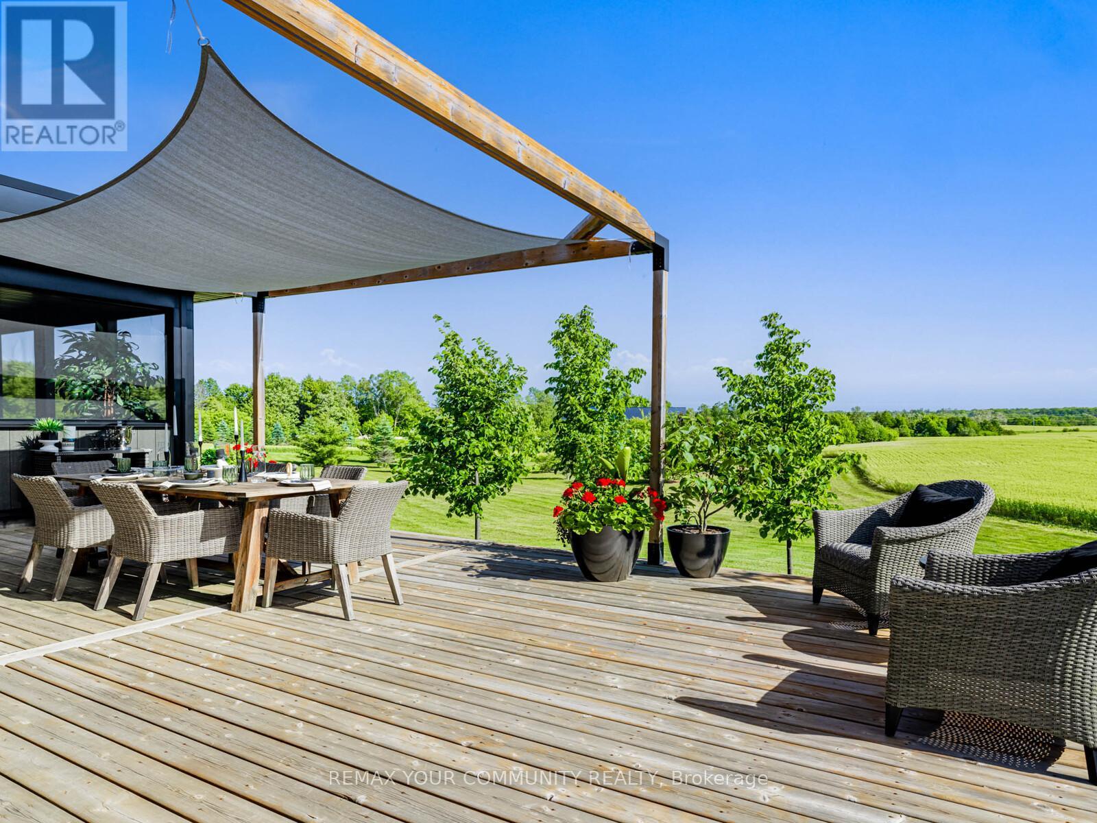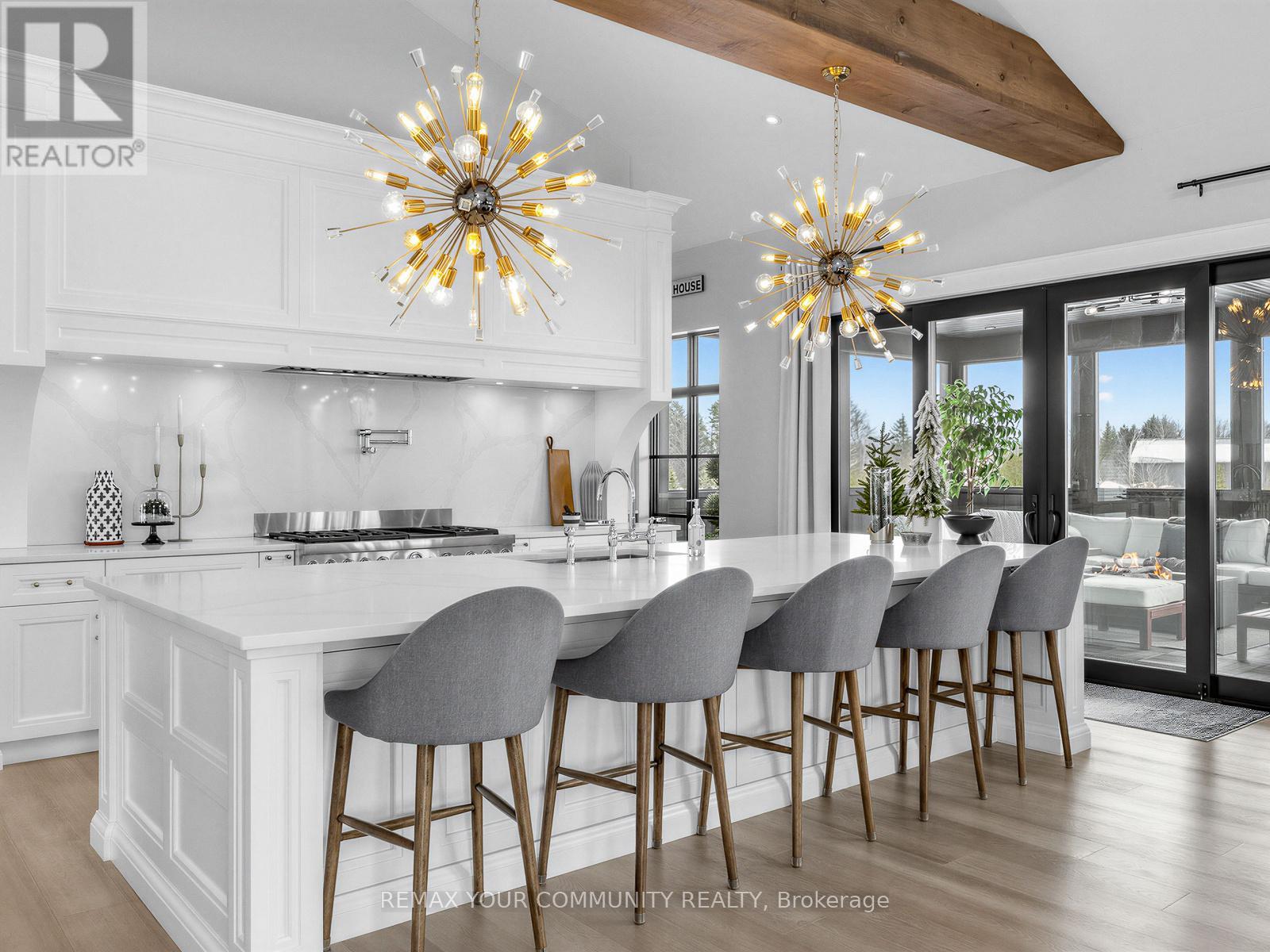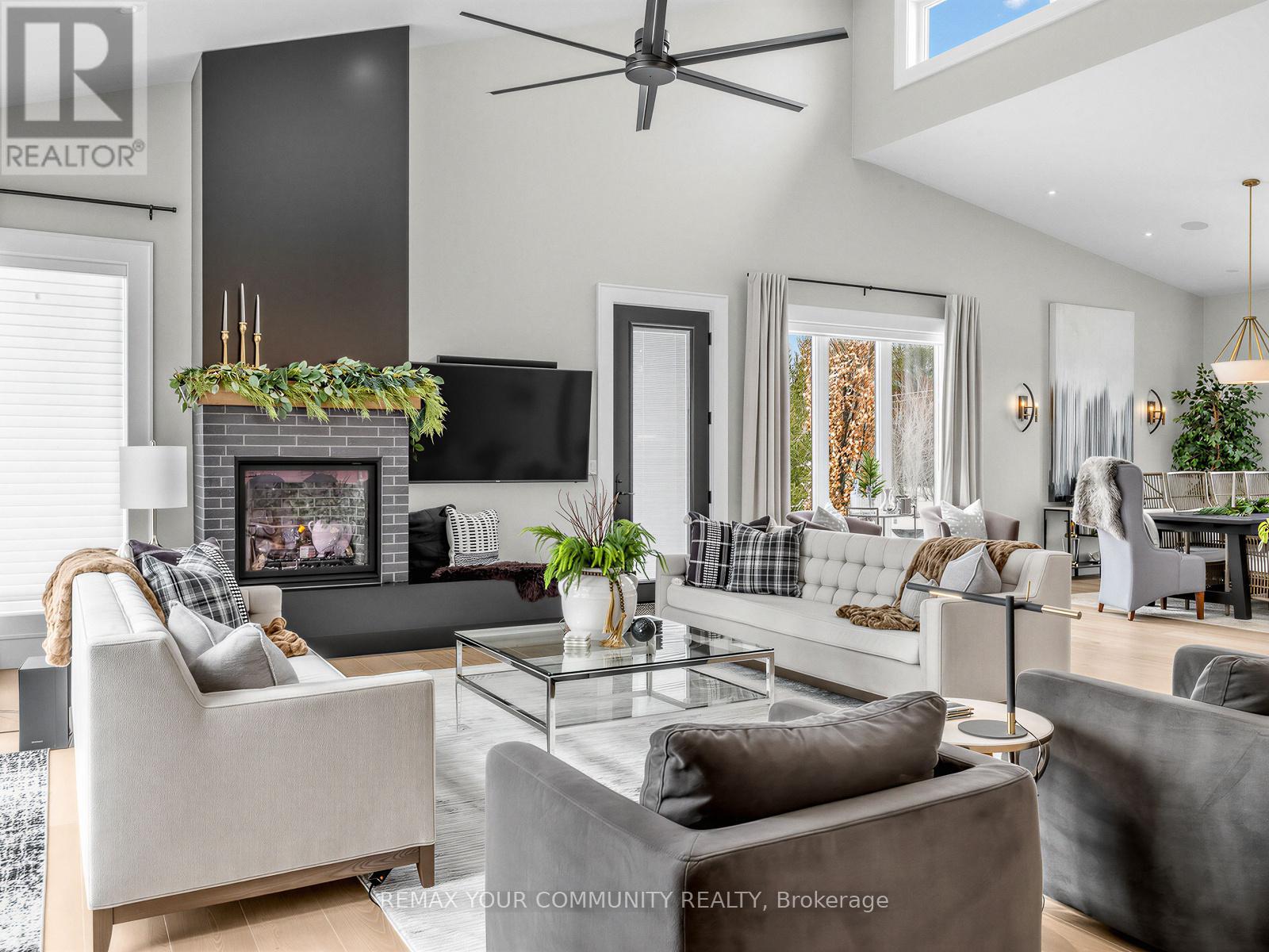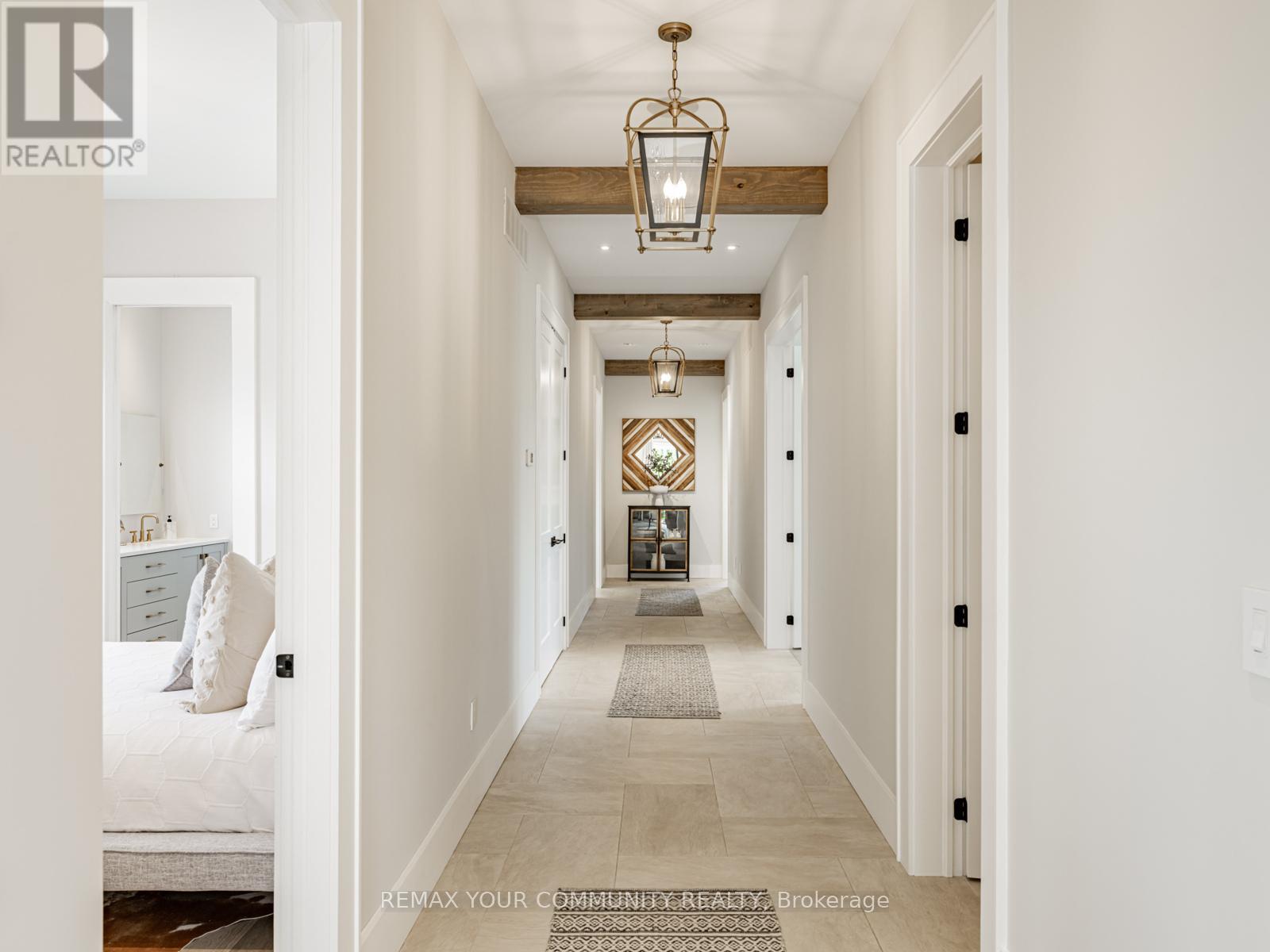 Welcome To 807 Ganton Road. Set On 9.3 Picturesque Acres Just Minutes From Town. This Custom Modern Bungalow Offers Over 7,200 Sq. Ft. Of Finished Living Space With 4+2 Bedrooms And 5+1 Bathrooms. The 18-Foot Vaulted Ceilings, White Oak Hardwood Floors, And Sweeping Countryside Views Create An Unforgettable First Impression. The Heart Of The Home Is A Kitchen Designed For Gathering, Anchored By A Striking 12.5-Foot Quartz Island With Seating For Six, Custom Adamo Cabinetry, A Built-In Thermador Fridge And Freezer, Two Jenn Air Beverage Fridges, And A Fully Equipped Butler's Pantry With Its Own Sink And Dishwasher To Make Hosting Effortless. Just Off The Kitchen, The 3-Season Sunroom Offers A Peaceful Place To Enjoy Morning Coffee Overlooking Rolling Farmland, While The Family Room Feels Both Grand And Inviting With Soaring Ceilings, A Cozy Fireplace, Automatic Window Coverings, And Three Walkouts That Blend Indoor And Outdoor Living Seamlessly. The Primary Suite Is A True Retreat Featuring Vaulted Ceilings, A Private Fireplace, Direct Access To The Deck, Two Walk-In Closets, And A Beautifully Appointed 5-Piece Ensuite Designed For Comfort. The Walkout Basement Was Built For Resort Style Living, Complete With A Full Wet Bar With Double Keg Tap, Dedicated Home Theatre, Professional Office, And Spacious Gym. Adding Even More Flexibility Is The Separate 2-Bedroom Coach House, Ideal For Extended Family, Guests, Or Potential Rental Income. A 22-Kilowatt Generac Generator Provides Year-Round Peace Of Mind, And Current Zoning Allows For Home Occupation Or Home Industry Use - Offering Privacy, Space, And Versatility In One Exceptional Property. (id:4555)