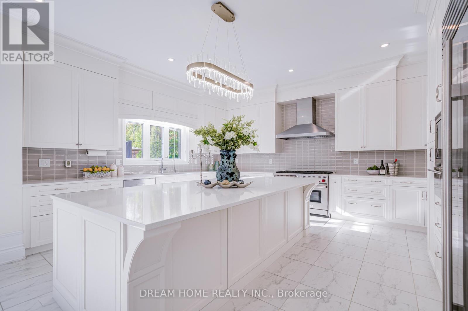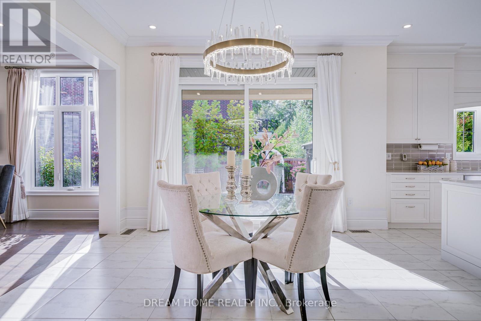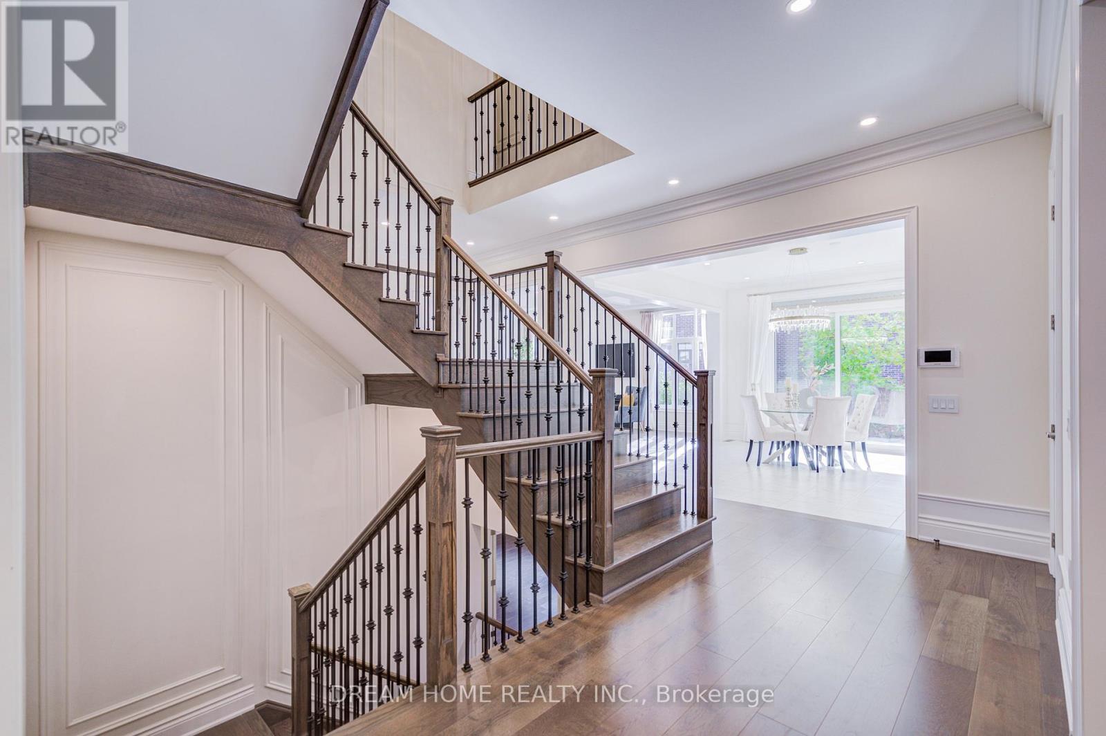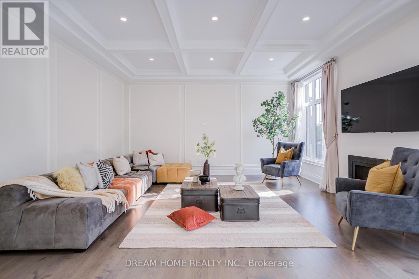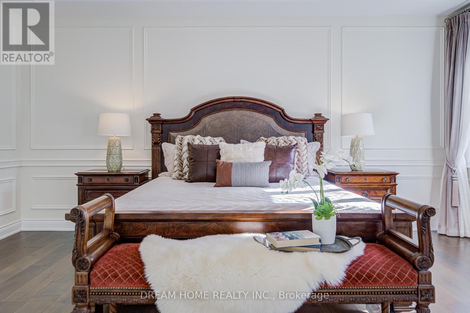 Nestled on a premiem Ravine-view lot within the distinguished Upper Thornhill Estates, this refined residence in a gated ENCLAVE captivates with its seamless open-concept design. Encompassing 6,615 square feet (excluding the finished basement), the home radiates elegance with a 19-foot ceiling in the first-floor library, 10-foot ceilings on the main and second floors, and 9-foot ceilings in the basement. Every room is thoughtfully crafted for spacious sophistication. Exquisite custom enhancements elevate both style and utility: expansive windows bathe the interior in natural light, while the gourmet kitchen features a grand central island, top-tier Sub-Zero and Wolf appliances, and ample pantry storage. Polished hardwood floors, recessed lighting, coffered ceilings, bespoke accent walls, luxurious chandeliers, and intricate French mouldings create an atmosphere of timeless grandeur. Each bedroom is appointed with walk-in closets featuring custom organizers and opulent ensuite bathrooms, including an exceptionally spacious master closet in primary bedroom. Dual furnaces provide consistent comfort year-round, and the home's striking exterior is enhanced by fully interlocked front and rear yards. The bright west-facing backyard, a tranquil retreat overlooking the serene Maple Reserve Trail forest, offers scenic ravine vistas, a custom gazebo, and meticulously landscaped grounds-ideal for quiet repose. Conveniently located near esteemed private and public schools, with easy access to Rutherford and Maple GO stations for effortless GTA commuting, 140 Lady Jessica Drive embodies refined luxury in Patterson's most coveted enclave. Your DREAM HOME awaits! (id:4555)