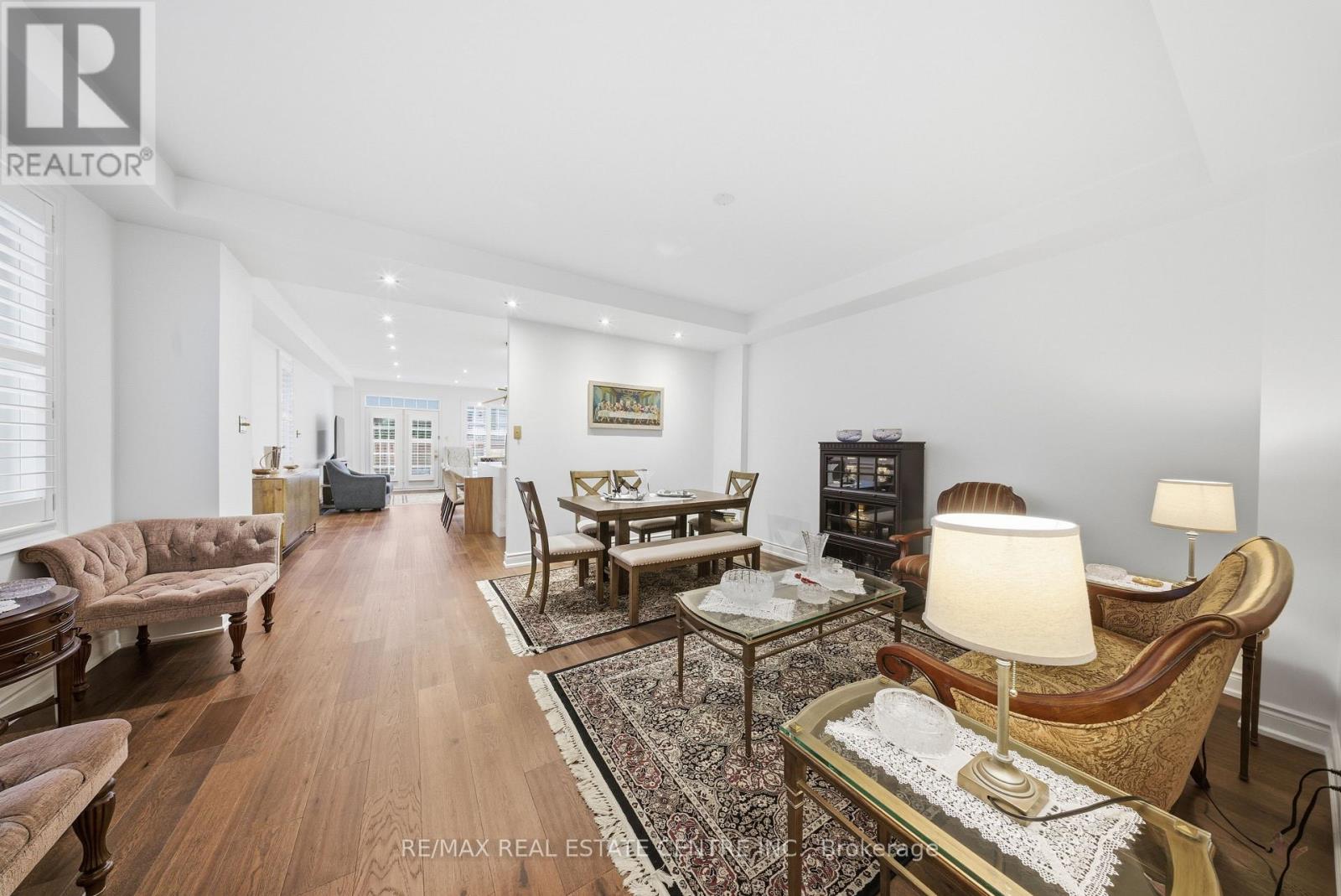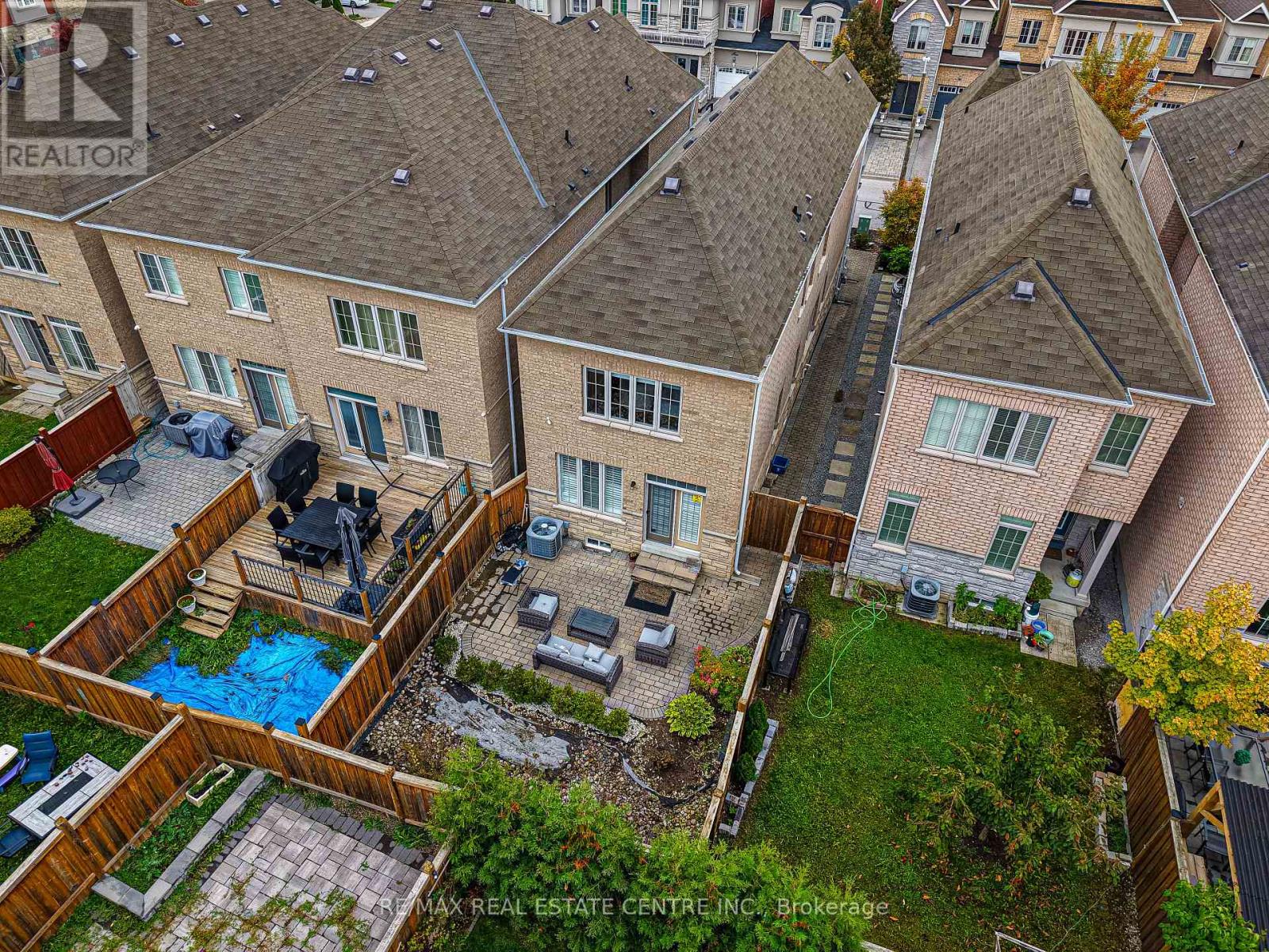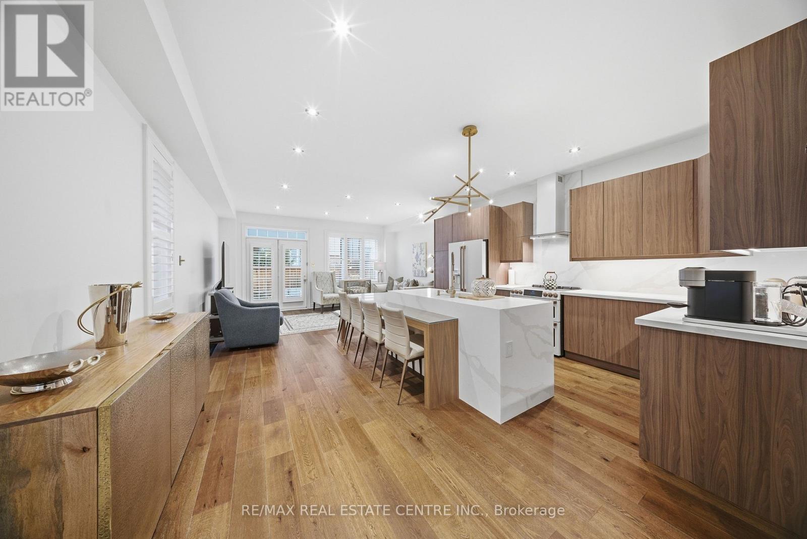 Experience the pinnacle of luxury living in the heart of Thornhill Woods with this absolutely stunning linked home (linked by garage only) spanning 2,217 sq. ft. Meticulously upgraded with up to $90k in enhancements, this residence exudes style and sophistication from its striking stone façade to the beautifully interlocked front and backyard. Step inside to discover soaring 9-foot ceilings on the main and second floors, smooth finishes, and hardwood flooring throughout, complemented by California/Max Mara shutters on the main floor and elegant blinds upstairs. The gourmet, open-concept kitchen is a chef's dream, featuring a center island with built-in glass-top breakfast table, maple cabinetry, granite countertops, stylish backsplash, high-end GE Café appliances with warranty, and an additional fridge in the basement, all illuminated by thoughtfully placed pot lights. Relax in the inviting living room or enjoy a quiet moment in the study nook. The primary suite offers a 5-piece spa-inspired ensuite and dual closets for ultimate comfort. Additional touches such as upgraded light fixtures, access from the garage, and a new hot water tank rental underscore the attention to detail and modern convenience. This home is a rare combination of elegance, functionality, and prime location, offering a lifestyle of unparalleled refinement in Thornhill Woods. (id:4555)