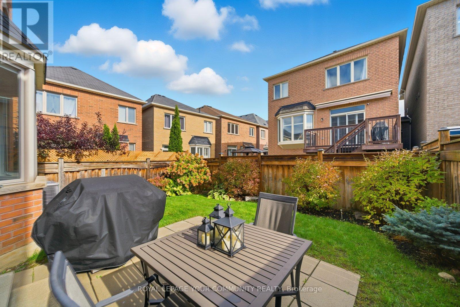 Your Search Ends Here! Don't miss this rare opportunity to own a beautiful 3-bedroom end-unit link home on a quiet crescent in sought-after Thornhill Woods! Featuring a 2-car garage and a driveway for 4 vehicles, this sun-filled home offers 9-ft ceilings, rounded corners, and dark-stained hardwood floors throughout the main level. The combination living and dining room boasts a charming bay window, while the modern kitchen includes stainless steel appliances, a pantry, and a bright eat-in area with a walkout to the extended patio and landscaped, fully fenced backyard - perfect for entertaining! Upstairs, relax in the cozy family room with gas fireplace and French doors leading to a walk-out balcony. The spacious primary suite features large windows, a large walk-in closet, and a 4-piece ensuite bathroom with jacuzzi tub and large glass shower stall. There are two additional bedrooms, a 4-piece bathroom with private toilet and tub, an upstairs laundry room with stainless steel front loading washer and dryer, and a large linen closet that completes the upper level. The unfinished lower level includes a cold cellar and rough-in plumbing- ready for your personal touch. Ideally located near top-rated schools, parks, Community Centre, library, shops, public transit, GO Station, and Hwy 407. Move-in ready and waiting for you!! (id:4555)