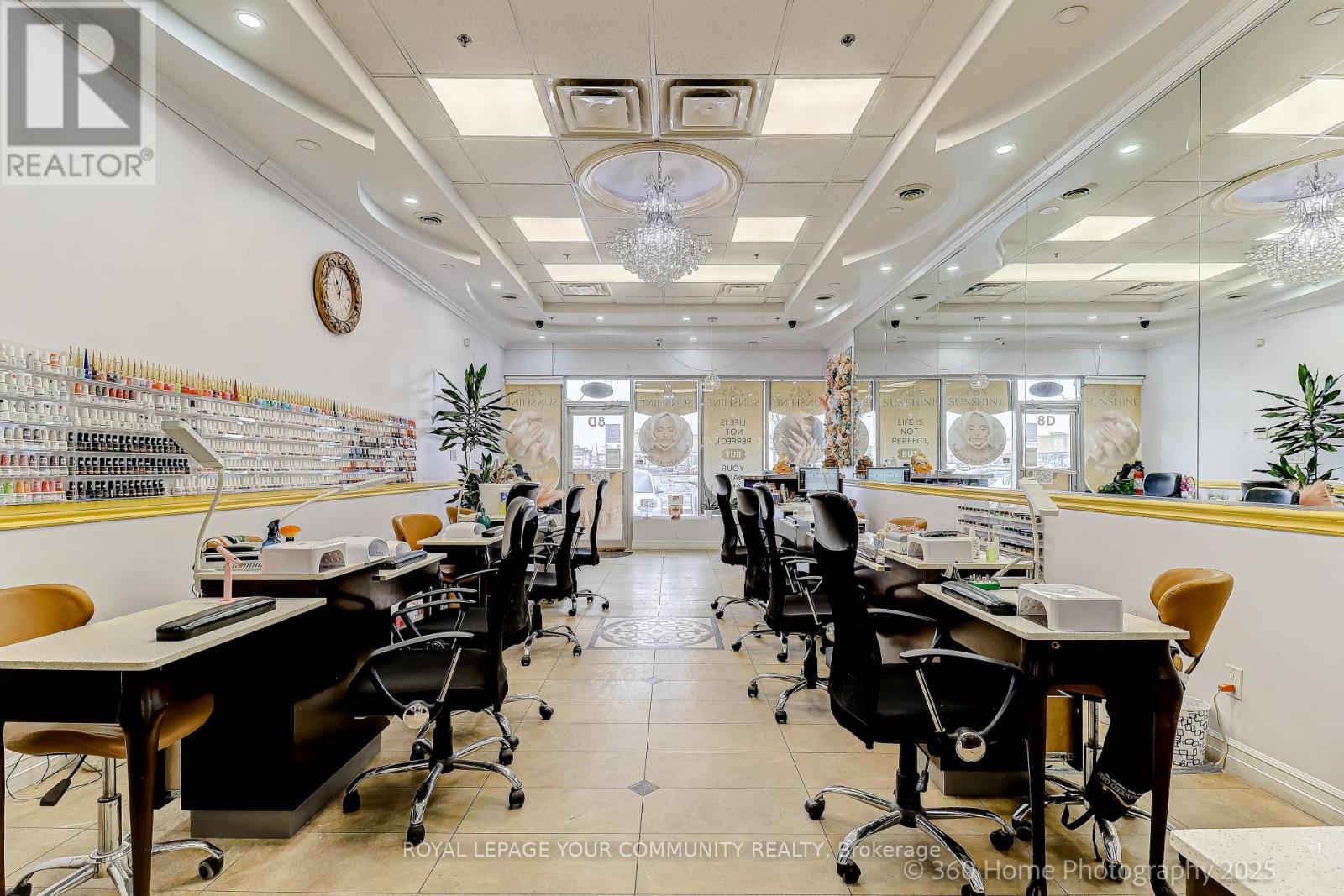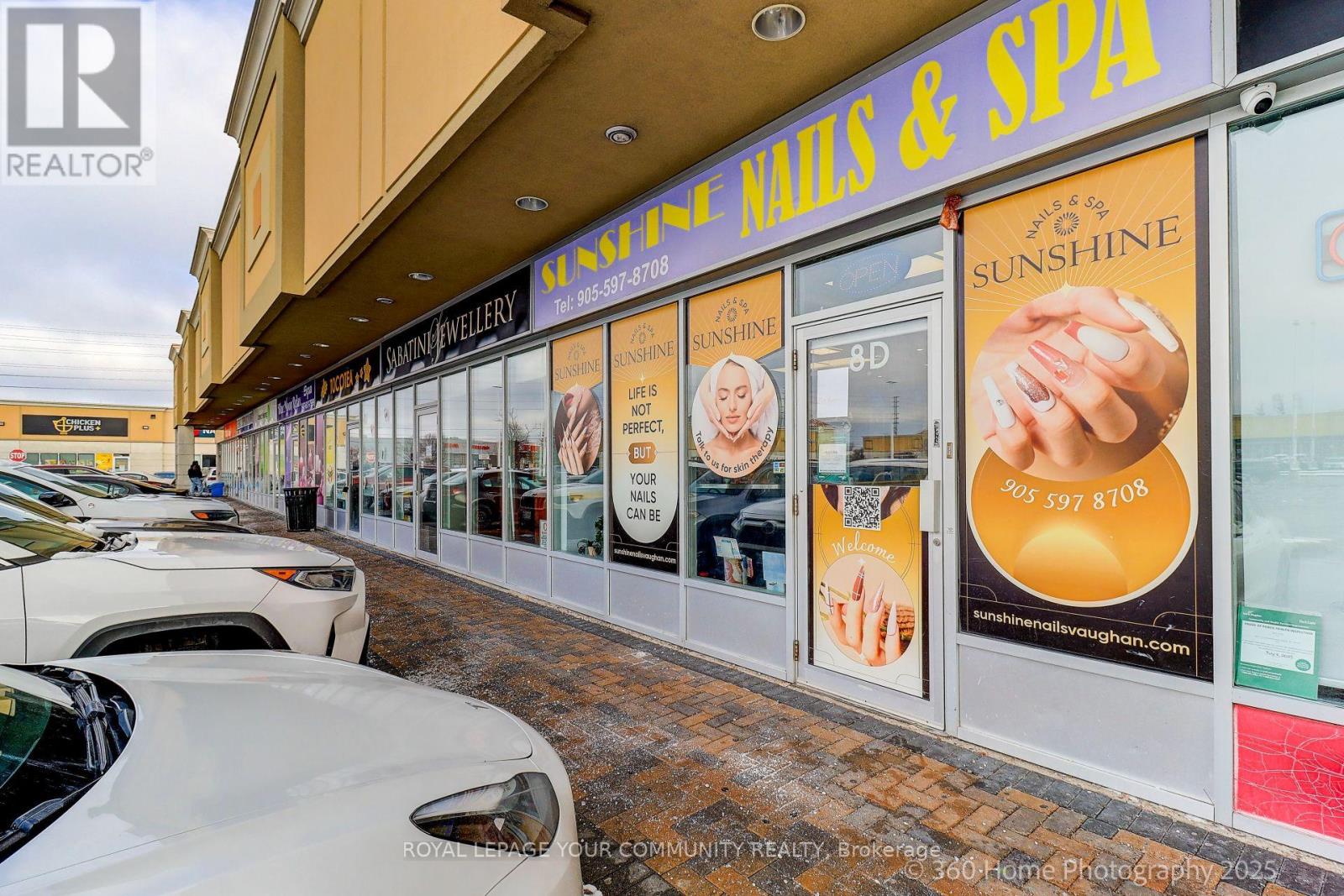 Look No Further!!! Busy Nail/Beauty Salon close to Vaughan Mills Mall. Located in High Traffic Plaza, fronting Rutherford Rd, Close to Major Highway. 1280 Sq Ft includes 9 Nail Stations, Tables, Chairs, 7 Foot Spas/Lounges and Chairs, 3 Private Rooms for Aesthetics, Waxing, Massages, etc etc etc. Washer/Dryer, Fridge, Linens, All Products and Equipment Supplies. Established Business with an established list of Clientele. Open 7 days a week. Parking Outdoors. A Must See!!! Bring an Offer!! (id:4555)