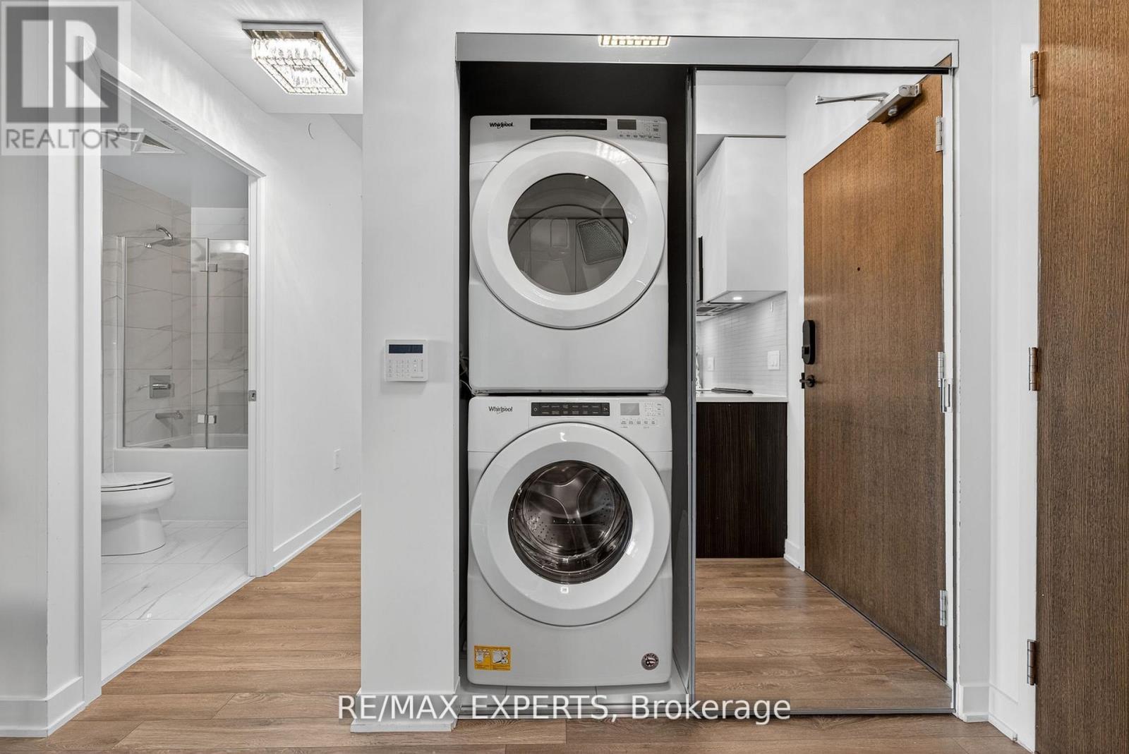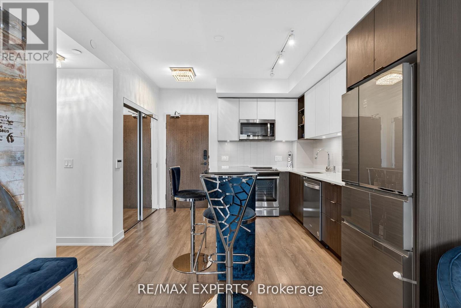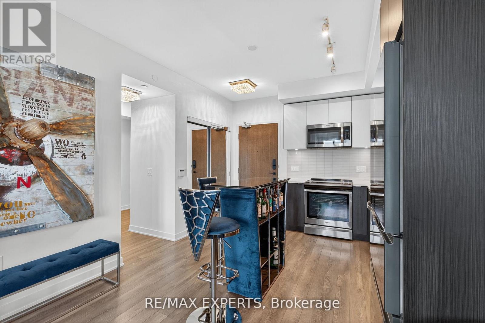 Welcome to this beautifully upgraded 1 bedroom + den, 1 bathroom suite in a boutique 12-storey building located in the heart of Maple, just steps from Maple GO Station. This meticulously maintained 595 sq ft north-facing unit offers unobstructed park views and a large private terrace. Features over $10,000 in upgrades, including custom window coverings, upgraded light fixtures, contemporary cabinetry, stone countertops, mirrored closet doors, and an enhanced bathroom with modem finishes. Building amenities include 24/7 concierge, guest suite, party room, rooftop terrace, fitness centre, and visitor parking. 1 parking & 1 locker included. Option to lease designer furnishings is available. Prime location close to Maple GO Transit, shops, restaurants, Walmart, RONA, Eagles Nest Golf Club, and quick access to Hwy 400 & 407. (id:4555)
