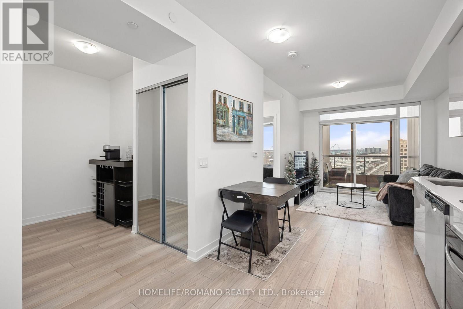 This is your Opportunity to Lease this bright and beautifully designed 1 + 1 bedroom suite at Abeja District 3, offering 550 sq ft of modern open concept living with 9ft ceilings and a stunning, unobstructed north-facing view. The open-concept kitchen features contemporary cabinetry, stone countertops, brand new stainless steel appliances, and a functional dining area. The spacious living room walks out to a private balcony where you can enjoy peaceful skyline views all day long! The den provides the perfect space for a home office, reading nook, or a second bedroom for guests. The bedroom includes a large window and generous closet space. Smooth ceilings, wide-plank flooring, in-suite laundry, and modern finishes throughout create a clean, and inviting atmosphere. Located in Vaughan's growing Jane & Rutherford hub, you are steps from Vaughan Mills Malls, parks, top-rated restaurants, and minutes to Vaughan Bus Terminal, Vaughan Metropolitan Centre Subway, Smart Centre, Smart VMC Bus Terminal, Highway 400/407., IKEA, Walmart, YMCA, Canada Wonderland, Cortellucci Vaughan Hospital, Rutherford GO Station, and so much more. Exceptional building amenities include a fitness centre, yoga room, concierge, co-working lounge, party room, and beautifully landscaped outdoor space. (id:4555)
