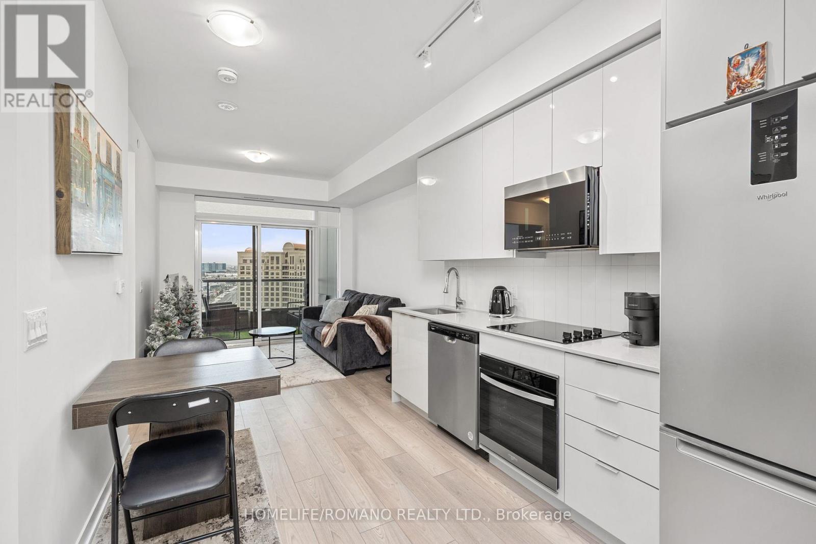 Welcome to this Brand New Bright and Beautifully designed 1 + 1 bedroom suite at Abeja District 3, offering 550 sq ft of modern open concept living with 9ft ceilings and a stunning, unobstructed north-facing view. The open-concept kitchen features contemporary cabinetry, stone countertops, brand new stainless steel appliances, and a functional dining area. The spacious living room walks out to a private balcony where you can enjoy peaceful skyline views all day long! The den provides the perfect space for a home office, reading nook, or a second bedroom for guests. The bedroom includes a large window and generous closet space. Smooth ceilings, wide-plank flooring, in-suite laundry, and modern finishes throughout create a clean, and inviting atmosphere. Located in Vaughan's growing Jane & Rutherford hub, you are steps from Vaughan Mills Malls, parks, top-rated restaurants, and minutes to Vaughan Bus Terminal, Vaughan Metropolitan Centre Subway, Smart Centre, Smart VMC Bus Terminal, Highway 400/407., IKEA, Walmart, YMCA, Canada Wonderland, Cortellucci Vaughan Hospital, Rutherford GO Station, and so much more. Exceptional building amenities include a fitness centre, yoga room, concierge, co-working lounge, party room, and beautifully landscaped outdoor space. (id:4555)