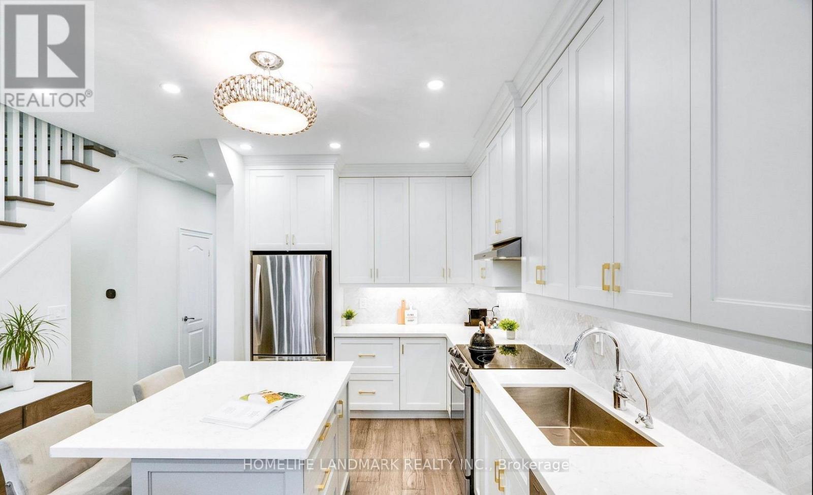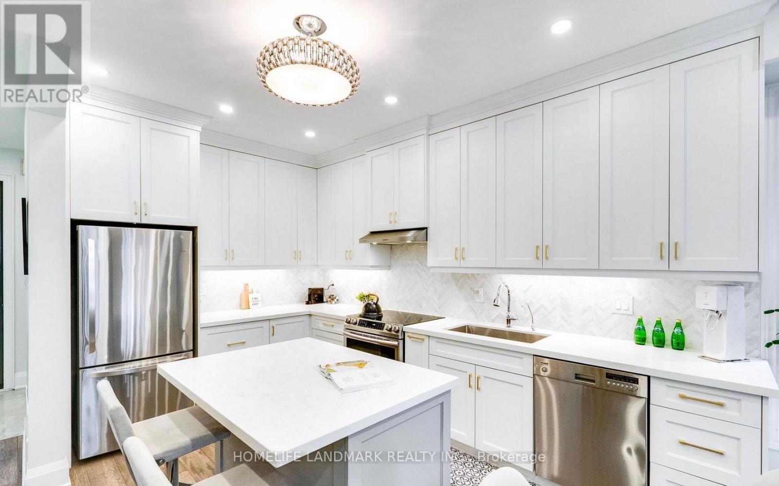Exquisitely upgraded freehold townhome in prime Thornhill Woods! Move-in ready with over $30K in recent upgrades. Features a high-end kitchen with quartz countertops, large centre island, new water filtration system (2024) and kitchen faucet (2025). Enjoy a stunning new backyard oasis (2024) with interlocking stone, aluminum railings, and built-in garden. Primary bedroom offers his & hers closets and 3-pc ensuite; two bedrooms include custom Closets-by-Design organizers. Renovated laundry room (2024), smart Ring alarm, furnace (2023), roof (2020). Extra-wide parking. Steps to plaza with restaurants, bank, doctor's office, community centre, schools, transit and Hwy 407. No maintenance or POTL fees! (id:4555)