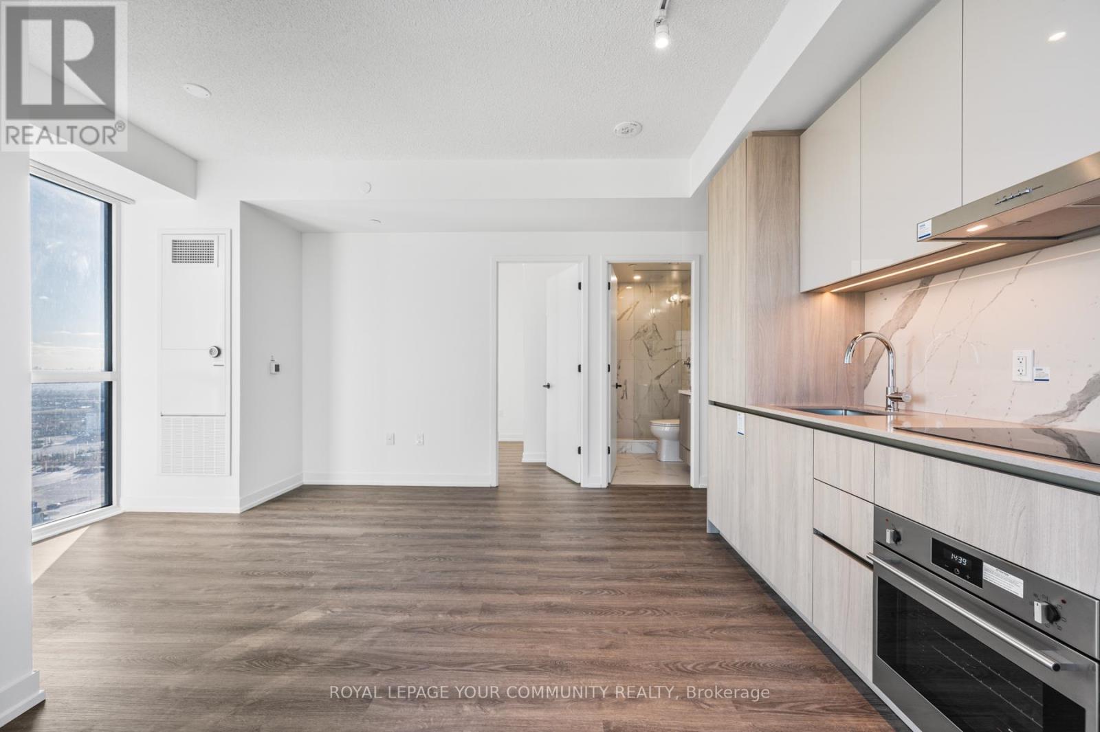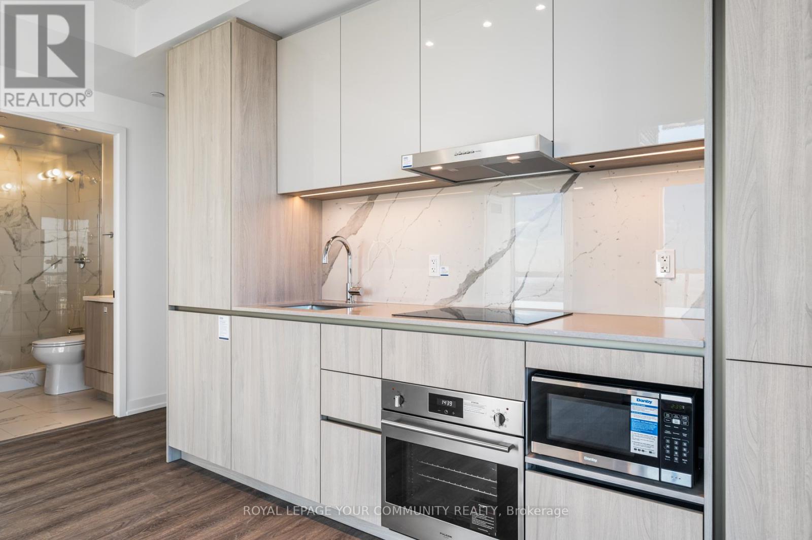 Welcome to Festival Condos! Enjoy the modern, convenient life-style in this stunning brand-new 2-bedroom condo just step away from Vaughan Metropolitan Centre. Featuring an open-concept layout, the living area is bathed in natural sunlight with expansive floor-to-ceiling windows that frame the panoramic view of the city, and provide access to a private south-east facing balcony. The space flows into a stunning modern kitchen, a centrepiece of design featuring sleek, two-tone cabinetry with light wood-grain lower cabinets and glossy white upper. Beautiful quartz countertop and matching backsplash provide a polished backdrop for a full suite of integrated stainless steel appliances, including a built-in oven, microwave, and electric cooktop. This thoughtful layout includes a split two bedroom layout, each bedroom with it's own ensuite bathroom access and closet. One parking spot and one storage locker are included! Perfect for young couples or small families! Convenient location just steps to VMC subway, transit, shops, restaurants! Easy access to Hwy 400/407. (id:4555)