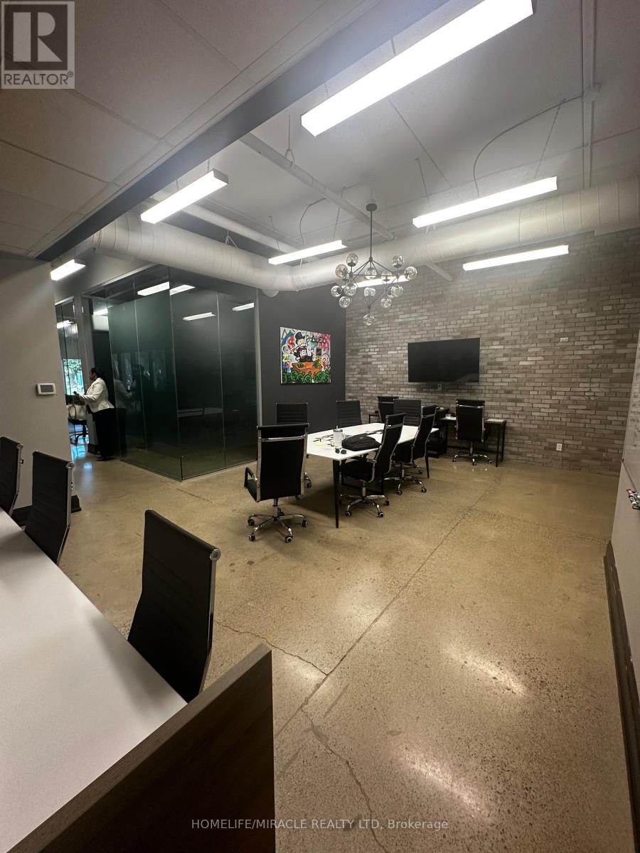 Exceptional ground-floor office space in a modern, recently built commercial plaza. Features prominent street exposure with excellent signage opportunities and convenient access to Highways 407, 427, 27, and 7. The thoughtfully designed layout includes private executive offices and boardroom with sleek glass partitions, a bright open-concept workspace, and a contemporary kitchenette. Additional features include a washroom, storage room with drive-in door access, and ample parking with double-row configuration plus reserved front-unit spaces. Ideal for professional users seeking a high-end image and outstanding visibility. (id:4555)