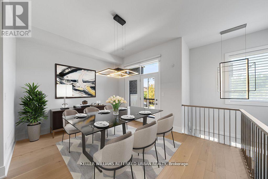Dream home in Patterson - with income-generating, TWO-STORY LOWER LEVEL APARTMENT WITH SEPARATE ENTRANCE. Set on a rare 33' X 94" ravine lot with a walk-out basement and an extra-wide 21' interior, this end-unit townhome is unlike anything else in Patterson. Envisioned by a renowned interior designer, every detail has been thoughtfully curated to surpass model home standards. Step inside to soaring 10' ceilings on the main floor and 9' on the second, smooth ceilings throughout, and rich 5" hardwood paired with 7" modern baseboards and 8' shaker doors. The kitchen is a true showpiece, anchored by a 10' island with dual waterfall edges, quartz counter, walk-in pantry, under-cabinet lighting, and a window seat that captures ravine views. The primary suite offers a retreat-like feel with a custom walk-in closet and spa ensuite featuring a standalone tub, quartz niches, sleek skirted one-piece toilets, and upgraded fixtures. The two-storey basement apartment, complete with laundry, offers versatility - perfect for multi-generational living or as a rental suite generating approximately $2,700/month. Outdoors, professional landscaping, interlock walkways, private side patio with backyard access, extended deck, multiple patios, and vinyl fencing create a private oasis. Added conveniences include dual laundry rooms, CATS5 wiring, BBQ gas line, and extra parking. This is more than a home - it's a statement of style, function, and luxury living. (id:4555)