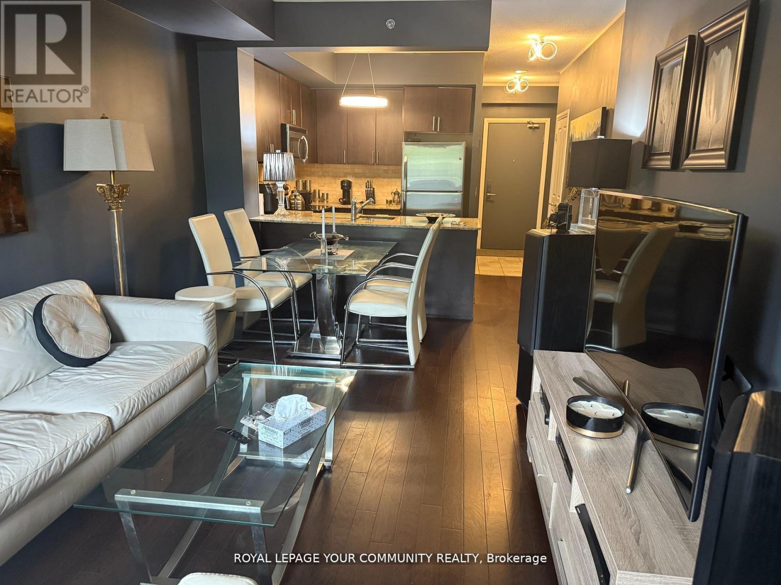 Stylish 1 + den (Den is big enough to be used as 2nd bedroom) condo with 2 full baths, thoughtfully designed open concept,9' ceiling, south facing with natural light and walk-out to large "108 Sq Ft Terrace with a drain" to enjoy when the weather allows. "Upgraded engineered hardwood floor throughout" by the builder. Located steps from TTC, top-rated schools, Promenade Mall, Center Point Mall & other amenities. This home offers comfort with exceptional convenience, maintenance fee includes water, heat. Includes premium amenities such as fully equipped gym, party rm, 24hr security on the weekends, billiard rm, TV room, library & guest room. Unit is tastefully painted (modern) with modern light fixtures. Extra large, private locker & very convenient parking spot in P1, close to the elevator. The unit offers style, comfort & convenience. Offers anytime, Latifian.home@gmail.com (id:4555)
