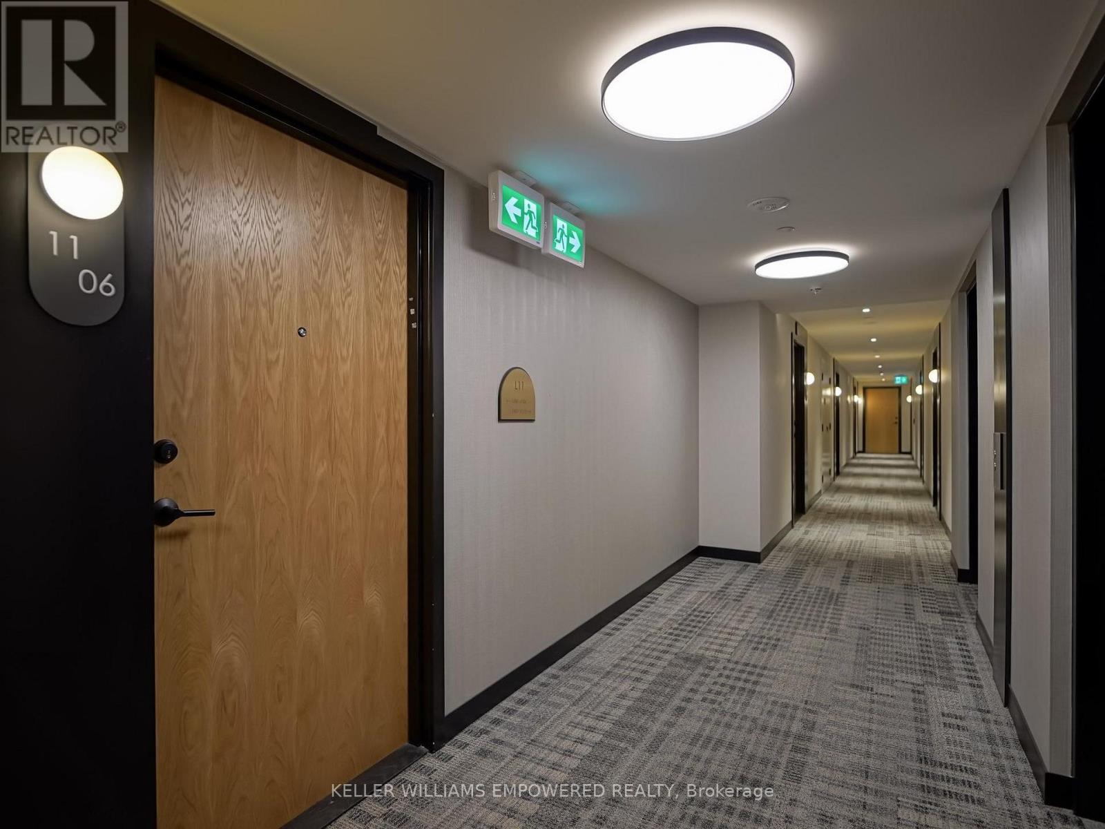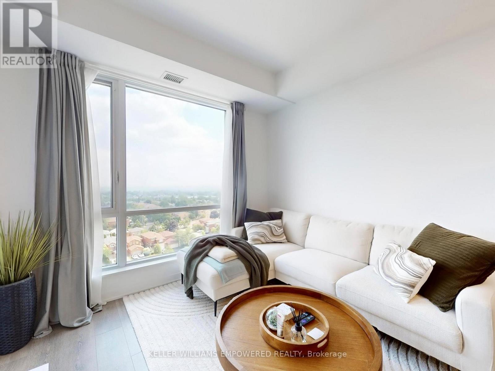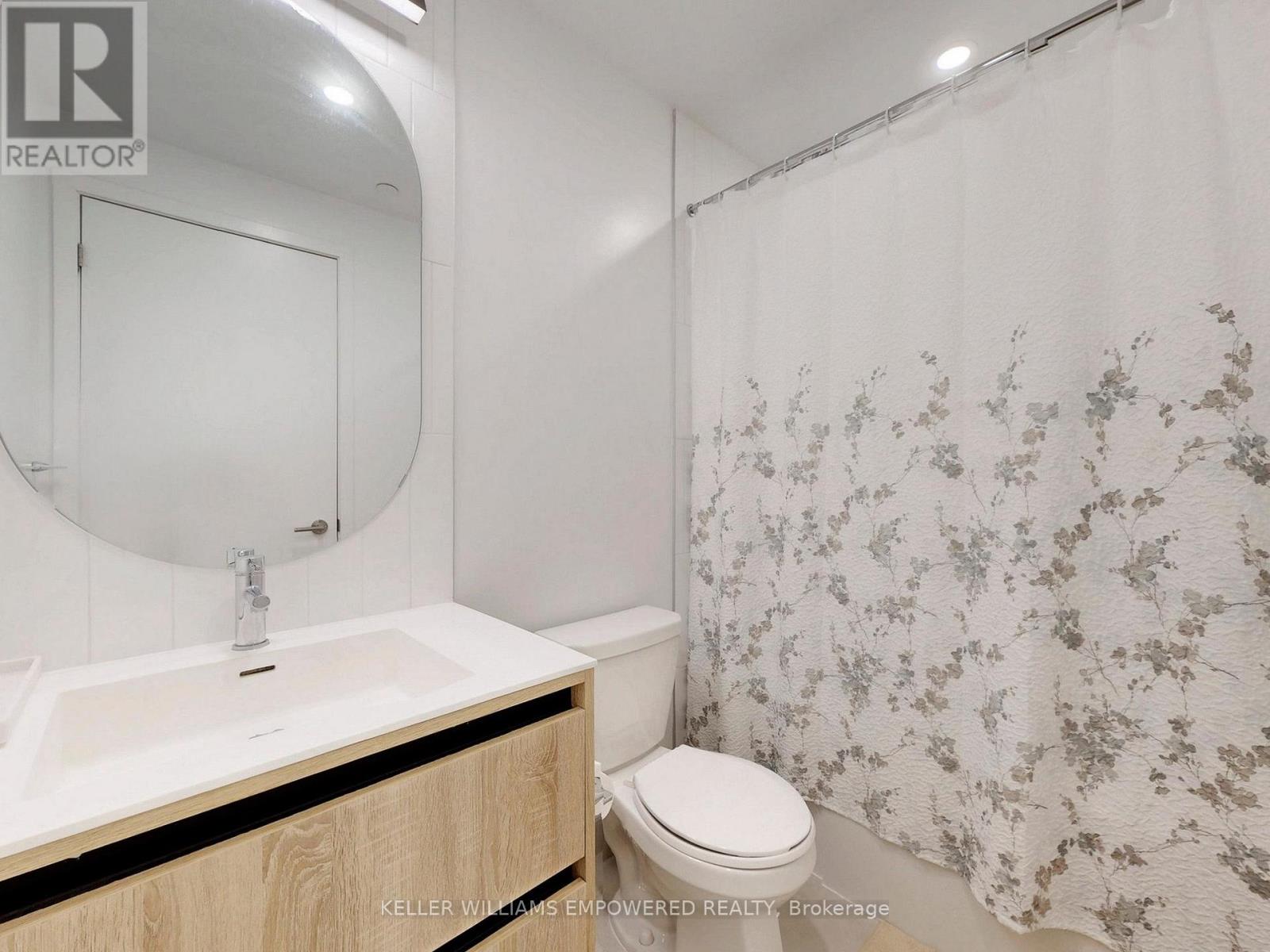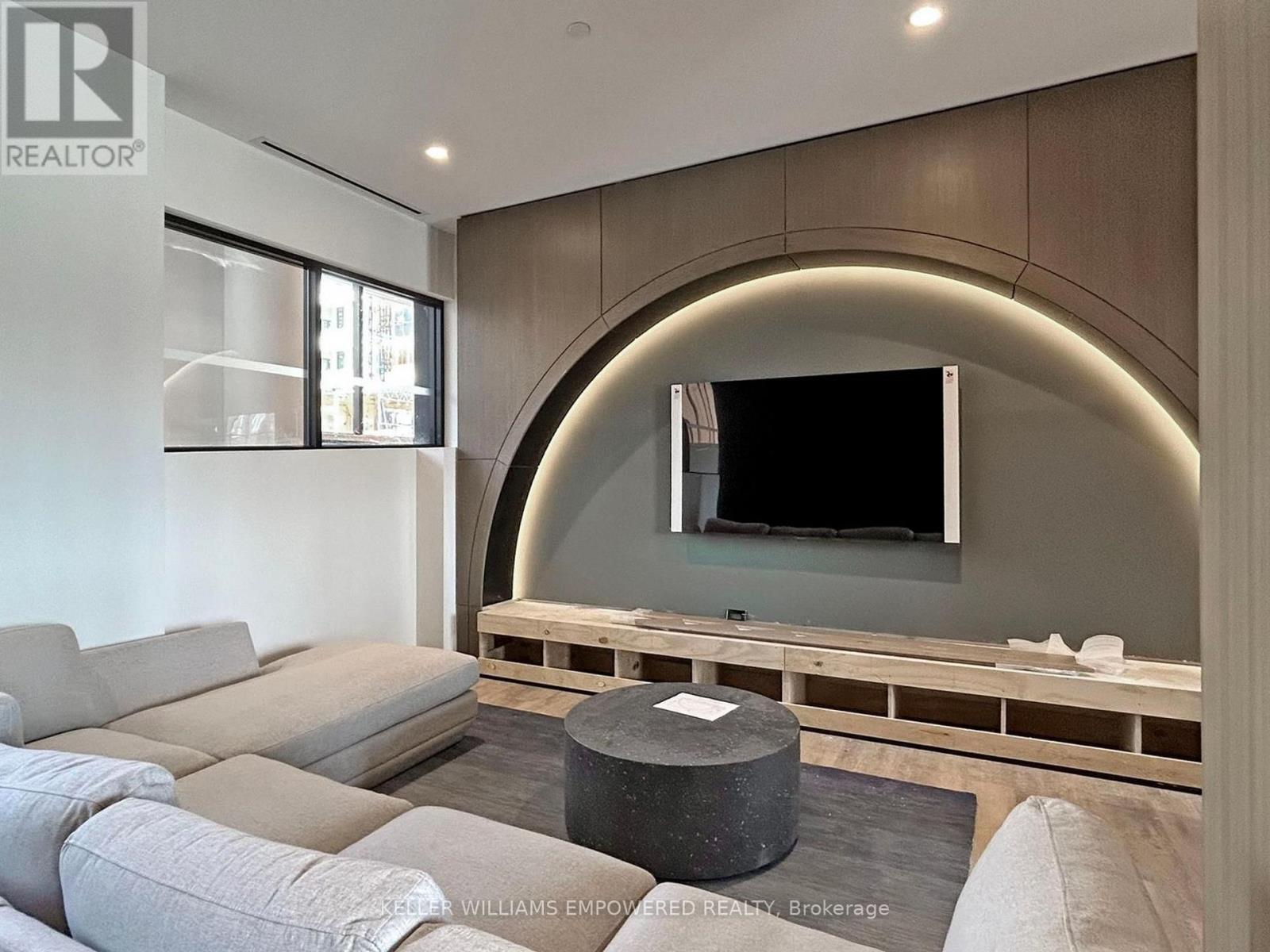 Surrounded by the quaint comforts of South Thornhill, this property combines stylish design, functional living, and access to an outstanding community. Residents will enjoy everyday conveniences with shops, cafés, restaurants, schools, lush parks, local transit, commuter highway networks such as Highway 407 and Highway 7, and The Promenade Mall all just moments away. Inside, the suite offers a bright and functional 1-bedroom plus den layout. The open-concept kitchen is finished with quartz countertops, premium appliances, ceramic tile backsplash, soft-close cabinetry, and a central island with dining space. The kitchen flows into the living area, where floor-to-ceiling east-facing windows bring in natural light and provide a walk-out to the private balcony. The primary bedroom features a large window wall and a walk-in closet with built-in organizers and lighting. The 4-piece bathroom is beautifully appointed with porcelain tile flooring, an integrated vanity sink with storage, frameless mirror with sconce lighting, and a deep soaker tub with full tile surround. A semi-open den offers flexibility as a home office or reading nook, while in-suite laundry with stacked washer and dryer ensures day-to-day convenience. Residents of this community have access to an exceptional collection of amenities including a fitness centre with yoga studio, multi-sport gymnasium with basketball court, co-working and meeting rooms, family and party spaces, and a seventh-floor terrace with BBQs, lounge areas, and a play zone for children. Outdoor living is enhanced by a landscaped community courtyard, fully fenced dog run, pet wash station, and 24/7 concierge. This property also includes one owned parking space and one locker for added convenience. (id:4555)