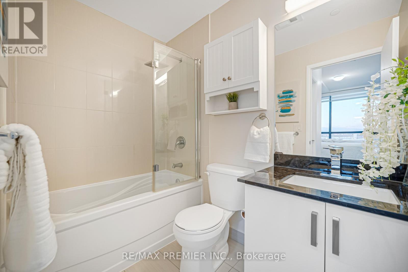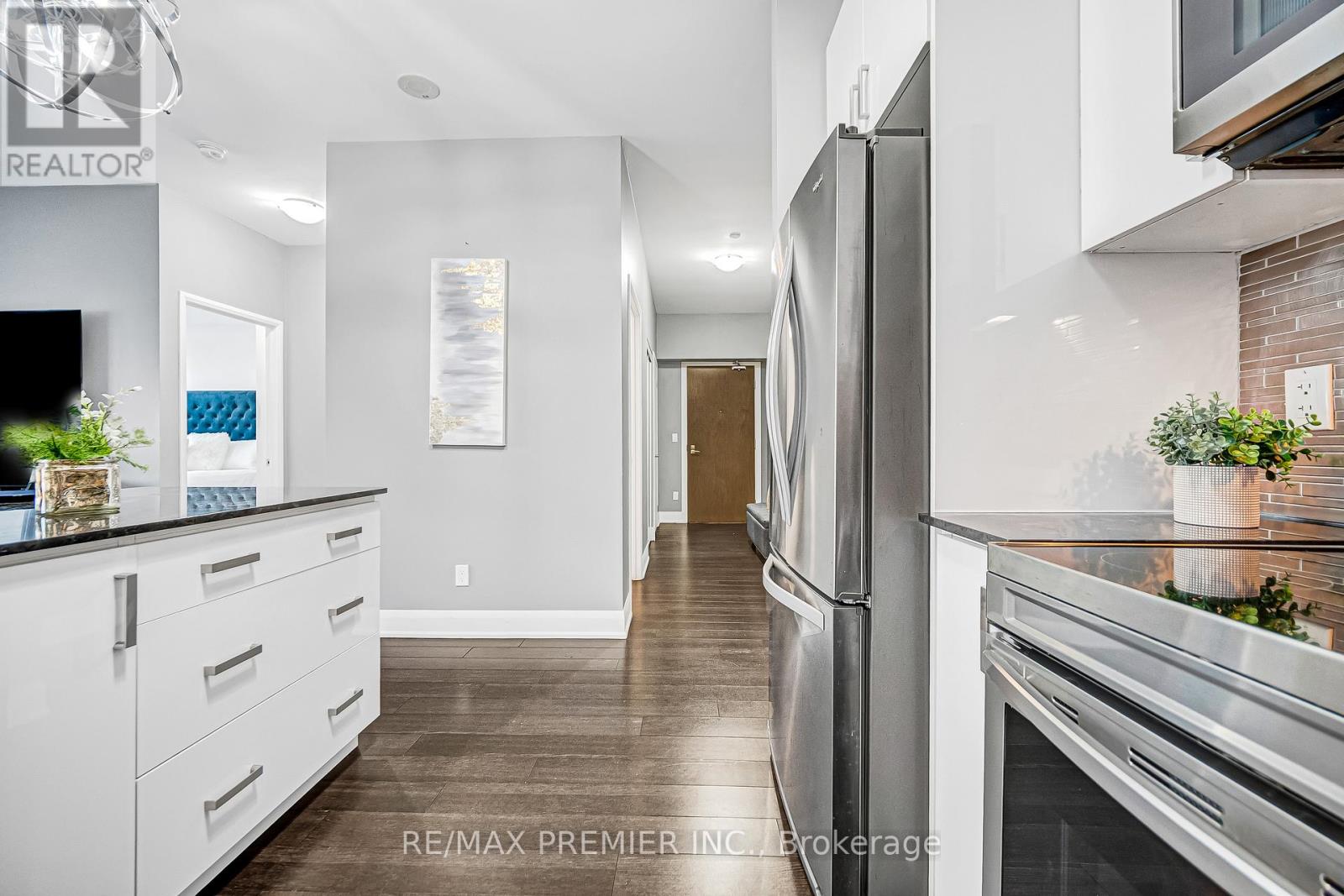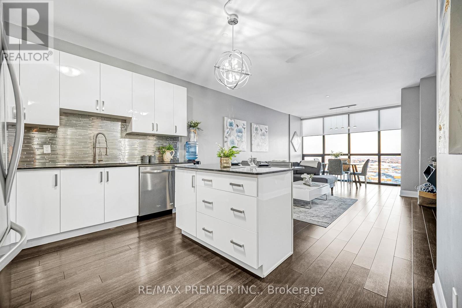 Welcome to this stunning open-concept 1-bedroom suite with 2 washrooms, offering luxurious living in the heart of Vaughan. Just steps to the Vaughan Metropolitan Centre Subway and minutes to Vaughan Mills Mall. Featuring 9-foot ceilings, floor-to-ceiling windows with breathtaking unobstructed city views, laminate flooring throughout, and a beautifully upgraded kitchen with granite countertops and newer stainless steel appliances. The spacious living and dining area is perfect for entertaining and everyday comfort. Includes parking an a locker. An exceptional opportunity in a prime location, with quick access to Hwy 400, transit, shopping, dining, and all urban conveniences. 24hrs Security/Concierge, Gym, Games Room, Indoor Pool, & Rooftop Patio. (id:4555)