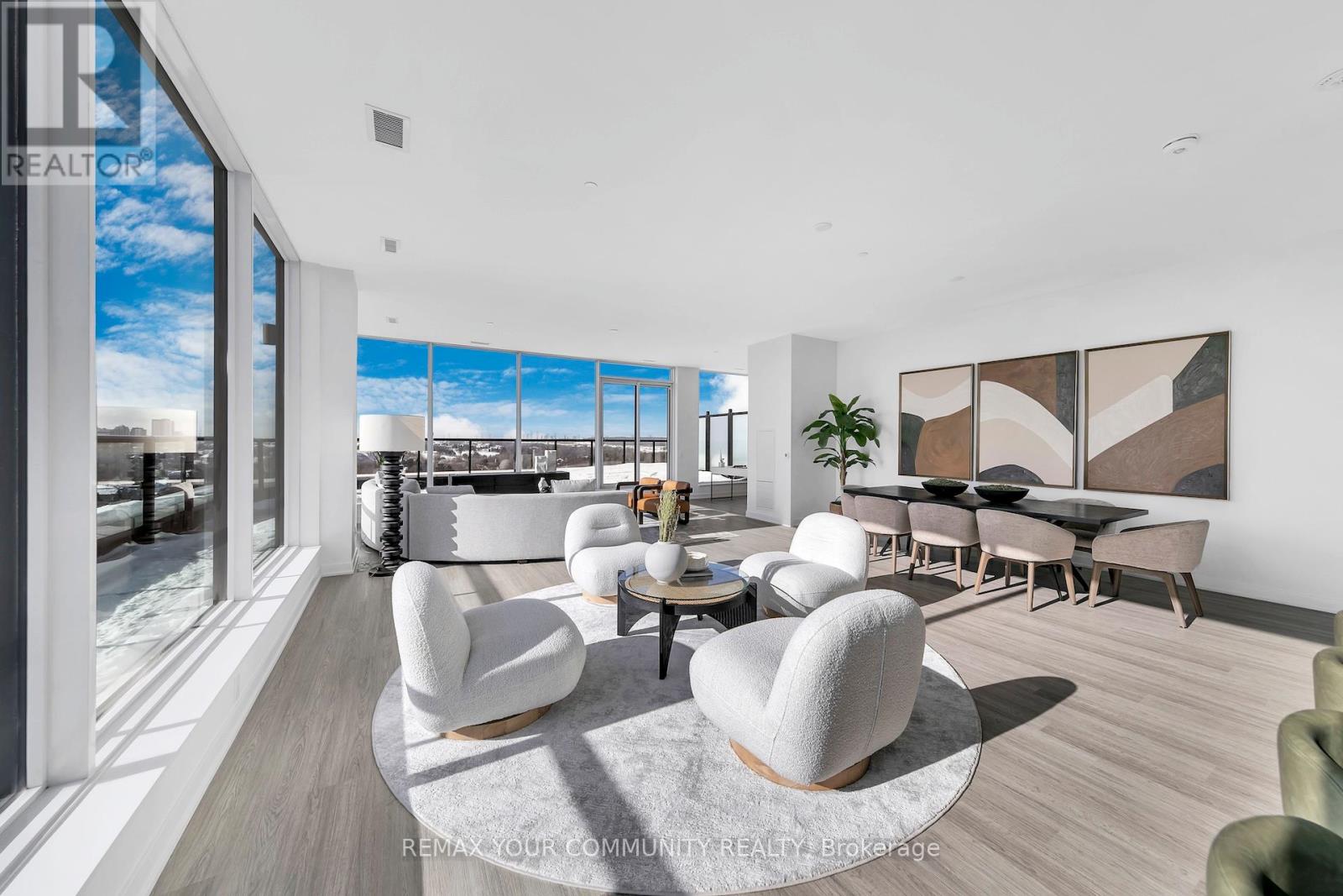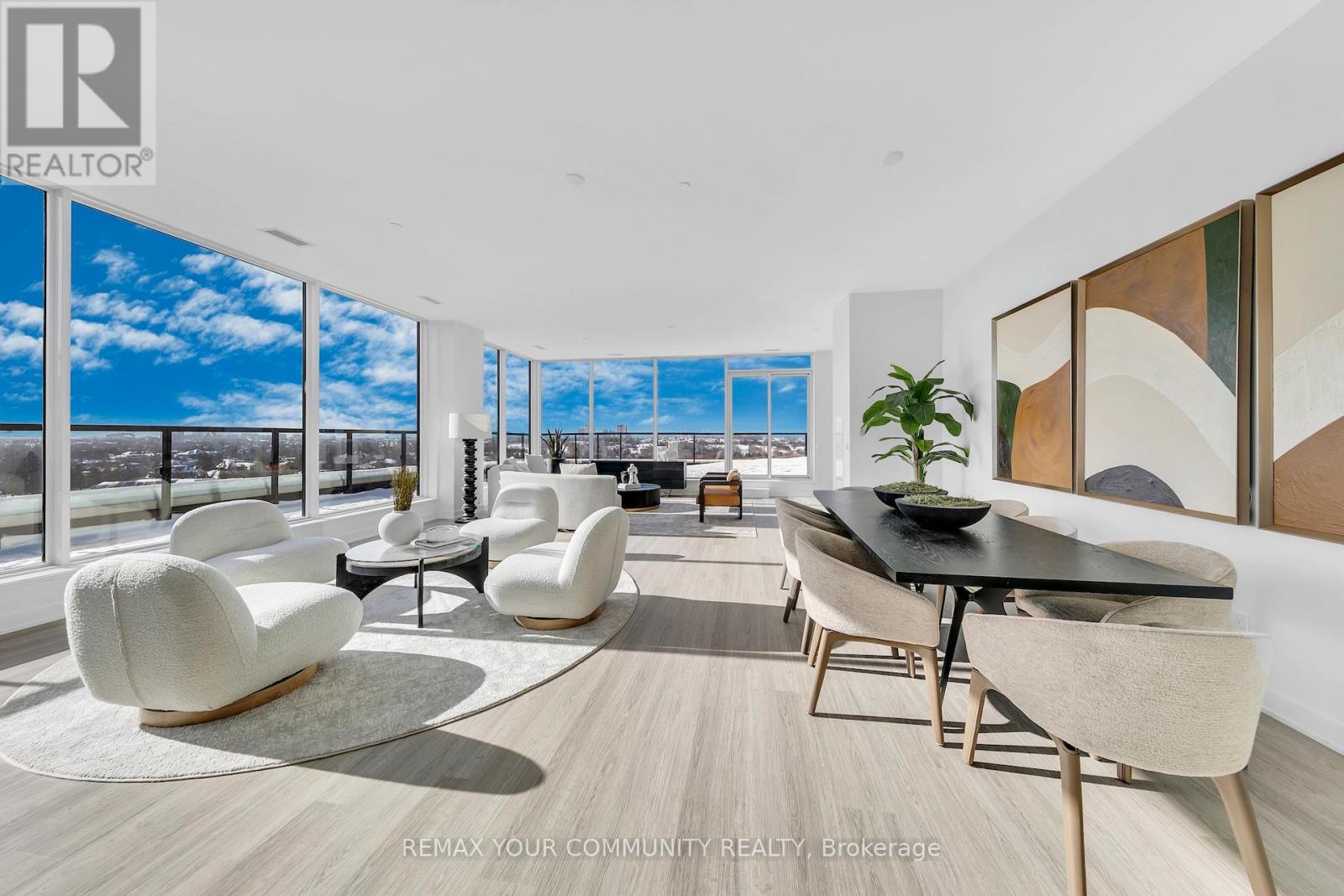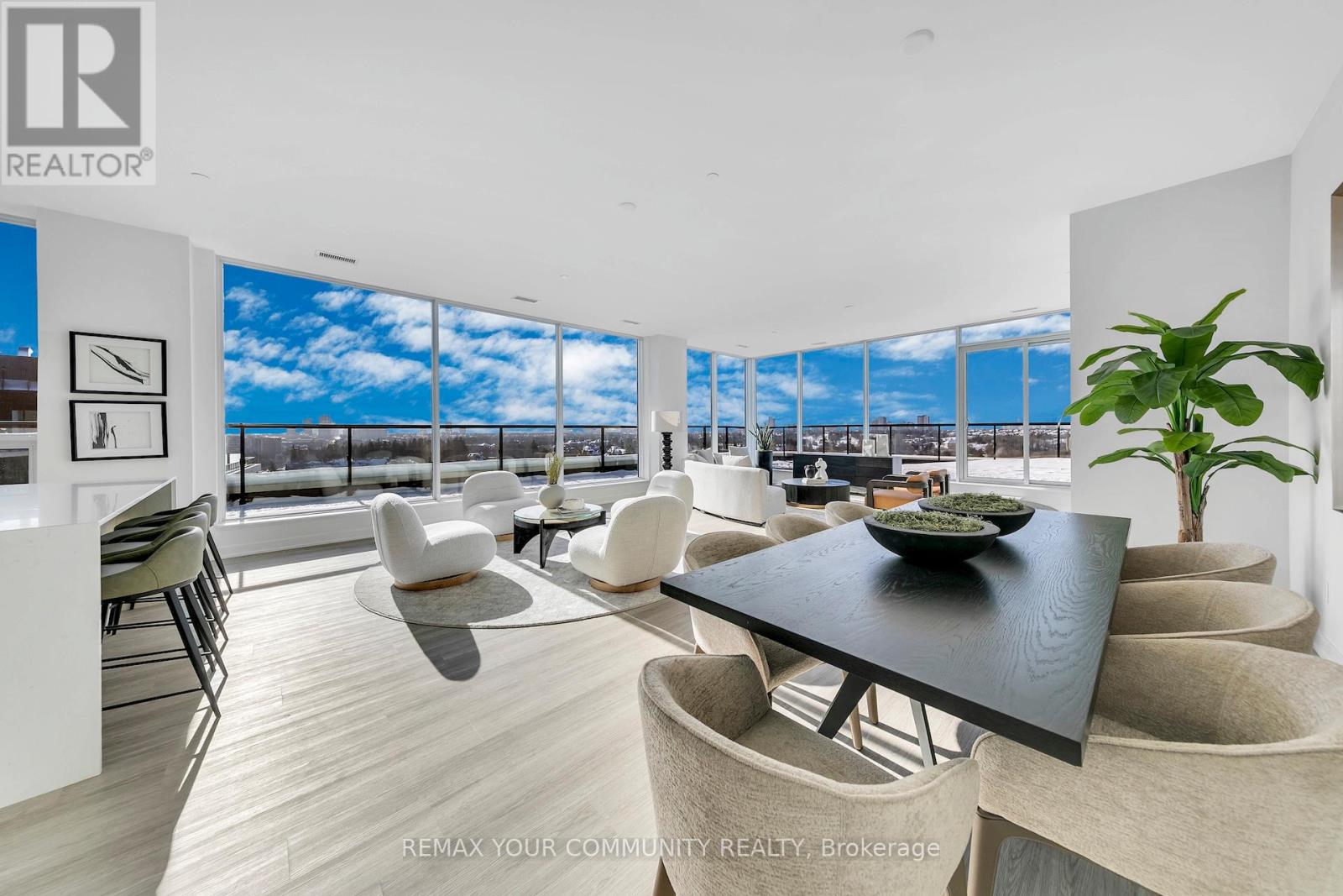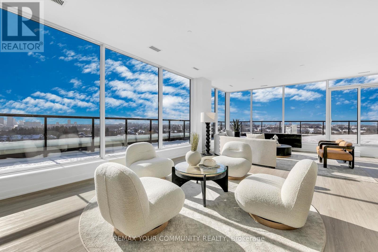 Exceptional penthouse residence at 8188 Yonge Street, perfectly positioned at the prestigious Yonge &Uplands intersection in one of Thornhill's most desirable neighbourhoods. Offering an impressive total of4,202 sq ft. of living space, including 2,290 sq ft of refined interior living plus a remarkable 1,912 sq ft private rooftop terrace. This rare corner suite features floor-to-ceiling windows, abundant natural light, and expansive panoramic views. Thoughtfully designed with 3 bedrooms plus den, including two primary suites with private ensuites, a third bedroom, and 3 full bathrooms. Finished with a modern kitchen featuring premium Miele appliances and in-suite laundry. A truly one-of-a-kind offering combining luxury, privacy, and an elite location. Unmatched convenience with the future Yonge subway extension at your doorstep, providing seamless access throughout the GTA. Steps to parks, trails, and the renowned Uplands Ski Centre, offering year-round recreation in a rare, nature-rich urban setting (id:4555)