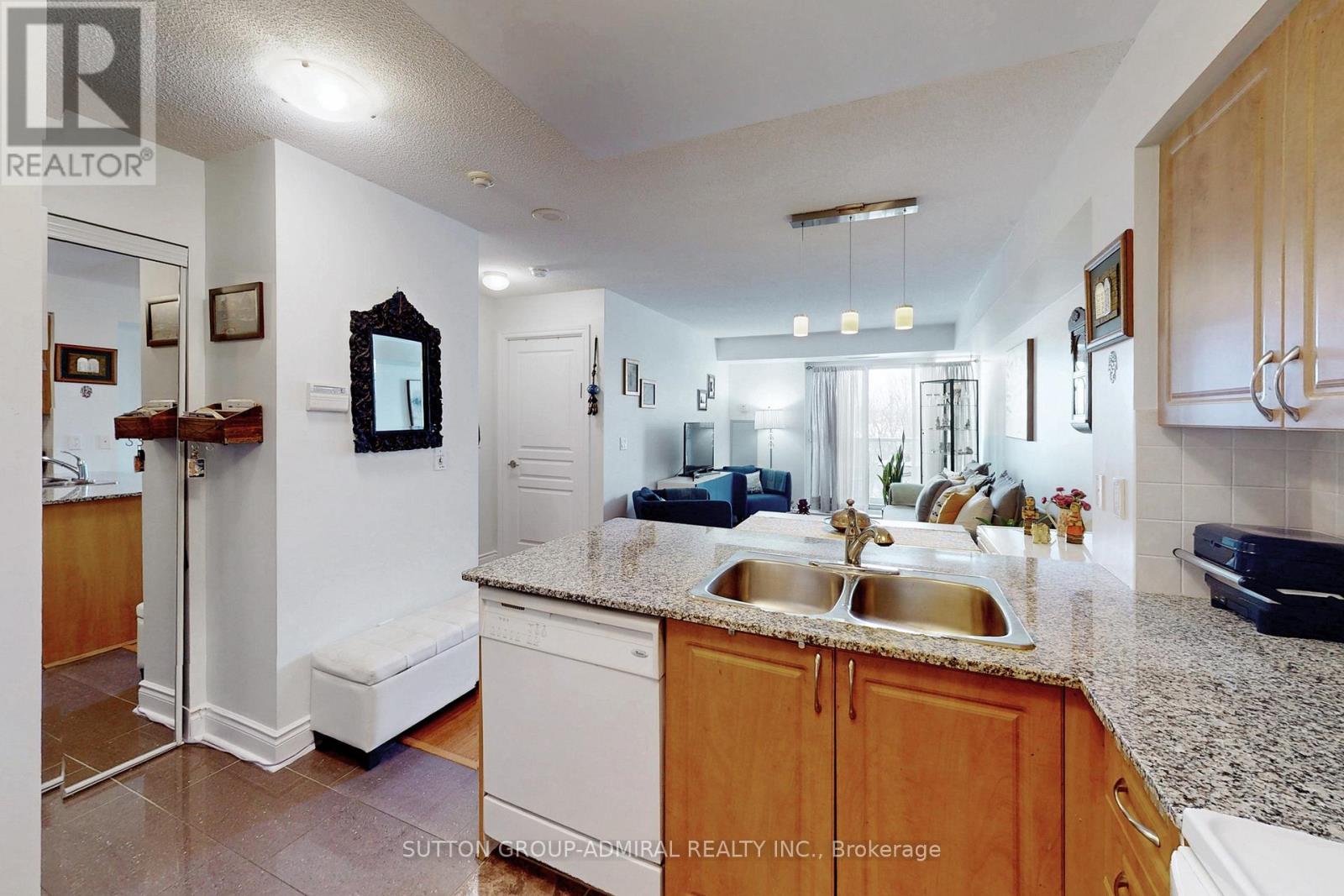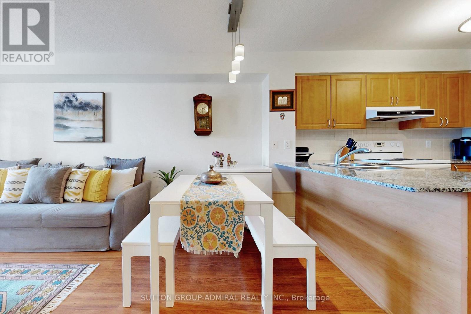 Beautifully maintained one-bedroom suite in the sought-after Vista at Thornhill Centre. Features a full bathroom, open-concept layout, and private balcony. The kitchen offers ample storage and a breakfast bar, while the bright bedroom includes a double closet and a park view. Also includes underground parking. Walking distance to Walmart, Winners/HomeSense, Promenade Mall, T&T grocery, restaurants, cafes, and services. Close to Hwy 7, Hwy 407 and transit. Pet friendly building allows for 1 pet under 25 lbs. Indoor pool, gym, party room, 24-hr security included. (id:4555)