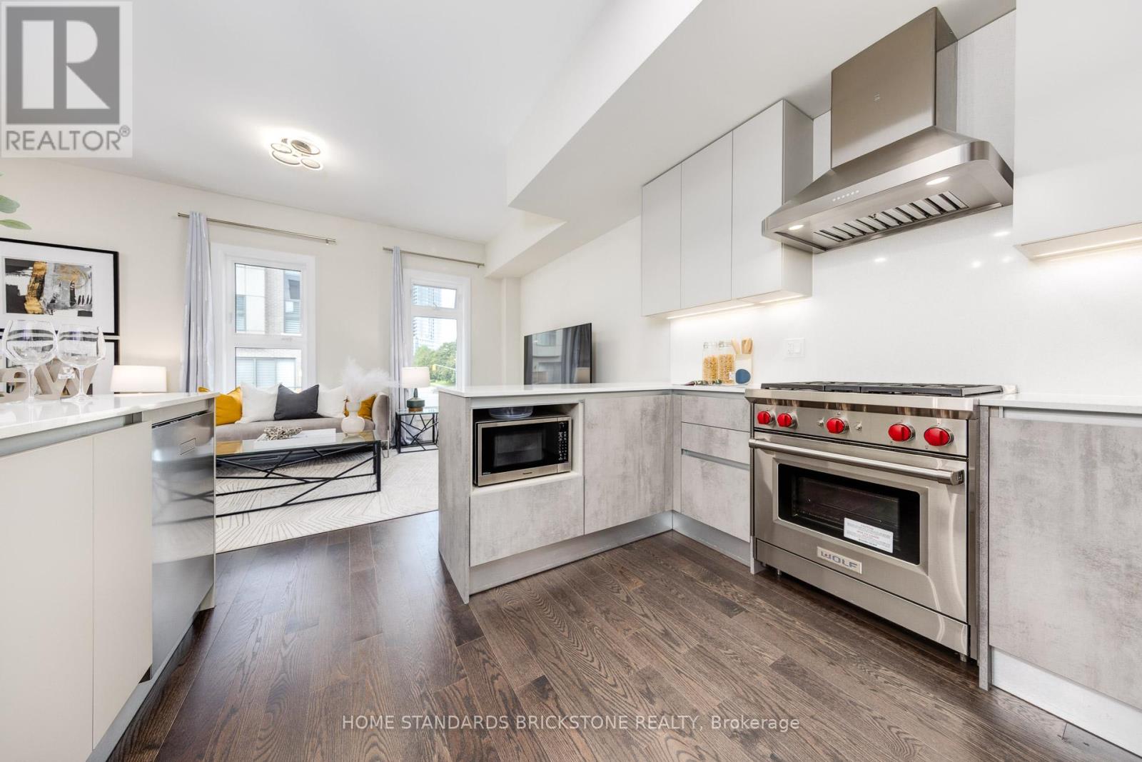 Welcome to this extraordinary luxury townhome offering nearly 3,000 sq. ft. of meticulously designed living space, crafted by the renowned Wycliffe Homes. This move-in ready residence showcases superior finishes, thoughtful upgrades, and a coveted location that blends convenience with elegance. Step inside to an impressive open-concept layout featuring a custom Scavolini kitchen with professional-grade stainless steel appliances, including a Wolf range, bar fridge, and premium fixtures. Sleek quartz countertops, designer cabinetry, and high-end plumbing details create a modern yet timeless cooking and entertaining experience. The spacious living room flows seamlessly into the dining area and eat-in kitchen, with direct walkout access to the backyard perfect for hosting family and friends. Soaring 10-ft ceilings on the main floor and 9-ft ceilings on the second and third levels add volume and light throughout. Hardwood flooring extends across the top levels with no carpet anywhere, ensuring a clean and sophisticated look. The luxurious primary suite offers a spa- inspired 5-piece ensuite and a generous walk-in closet, providing the ultimate retreat. A rare and valuable feature is the private residential elevator, offering effortless access from the third floor down to the finished basement. With an upgraded circuit board sourced from Chicago, this elevator offers unmatched convenience compared to others in the area. Additional highlights include a 2-car garage and a finished lower level, adding flexible living space for work, recreation. Ideally situated just steps from Promenade Mall, places of worship, parks, and the public library, with top-rated schools nearby, this exceptional home offers the perfect blend of lifestyle and location. (id:4555)
