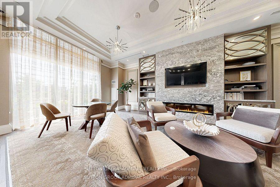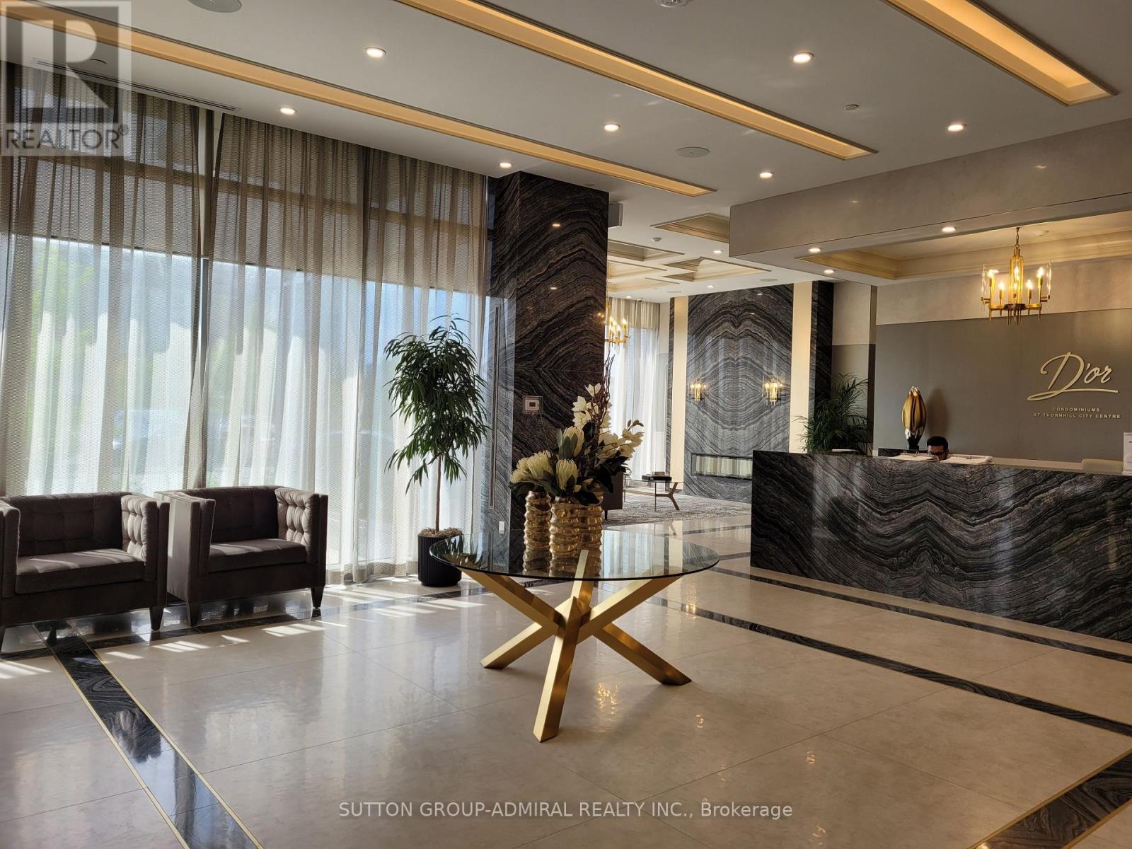 Welcome to the fabulous D'or Condos in the heart of Thornhill! This bright and spacious 1 bedroom plus den, 2-bathroom suite boasts an ideal 709 sq ft layout with lofty 9 ft ceilings, modern finishes, floor-to-ceiling windows, and no wasted space. The open-concept living area easily accommodates a sectional and dining table, while the generous primary bedroom comfortably fits a king-size bed. The modern kitchen features stylish white shaker cabinets, granite countertops, and stainless steel appliances. Enjoy two walkouts to your private balcony with a sunny, south-facing exposure and unobstructed views. The den works perfectly as a home office. This unit includes underground parking, a storage locker, and VIP access to resort-style amenities, including an indoor/outdoor pool, fitness centre, yoga studio, party room with chef's kitchen, lounge, theatre, sun deck with gazebos, hot tub, sauna, guest suites, dog spa, and 24-hour concierge. Conveniently located near Promenade Mall, transit, shopping, dining, Hwy 7/407, parks, trails, and so much more. Book your tour today. (id:4555)
