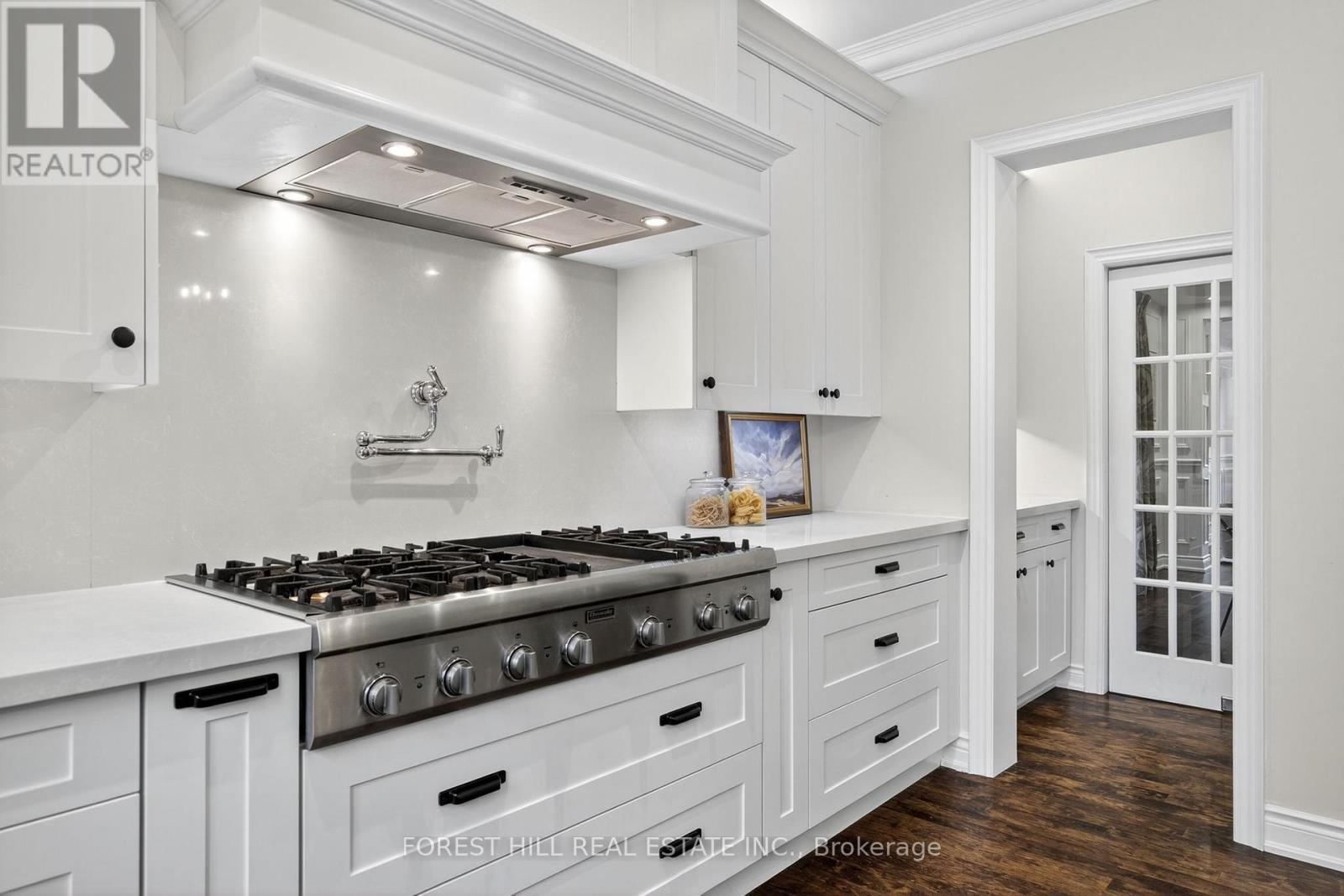 Welcome to 110 Cook Mill Crescent an extraordinary residence nestled on the most sought-after street in the entire Valleys of Thornhill, one of Vaughan's most prestigious neighbourhoods. This stunning home offers a rare 60-foot frontage overlooking a tranquil pond, delivering total privacy and unmatched curb appeal in a truly elite setting. Boasting 4+2 bedrooms and 6.5 bathrooms, the home features complete customization and designer finishes throughout. A spectacular custom kitchen, completed in 2023, is equipped with top-of-the-line stainless steel appliances, a large island, and a stylish butlers pantry perfect for both everyday living and entertaining. All bathrooms have also been recently renovated with luxurious, high-end finishes. The main floor showcases rich hardwood floors, coffered ceilings, crown mouldings, wainscoting, and intricate custom millwork. The formal living and dining areas include a custom bar, while the spacious family room highlighted by a fireplace and custom media unit opens directly to your own private backyard oasis. Step outside to a resort-style retreat featuring a saltwater pool with a spillover hot tub, composite deck, beautifully landscaped gardens, a heated cabana, and mature trees offering complete privacy and tranquility. Upstairs, the oversized primary suite offers a luxurious ensuite and a spacious walk-in closet that can easily be converted into a fifth bedroom. The finished basement is a dream recreation space for families, including a custom wood and stone wet bar, a large rec room, two additional bedrooms, and an incredible sports and gaming playroom where kids can enjoy endless fun. The heated three-car tandem garage also features a private staircase with direct access to the basement, adding convenience and versatility.110 Cook Mill Crescent is a true masterpiece offering the perfect blend of luxury, privacy, and modern living in Vaughan's most coveted community. (id:4555)