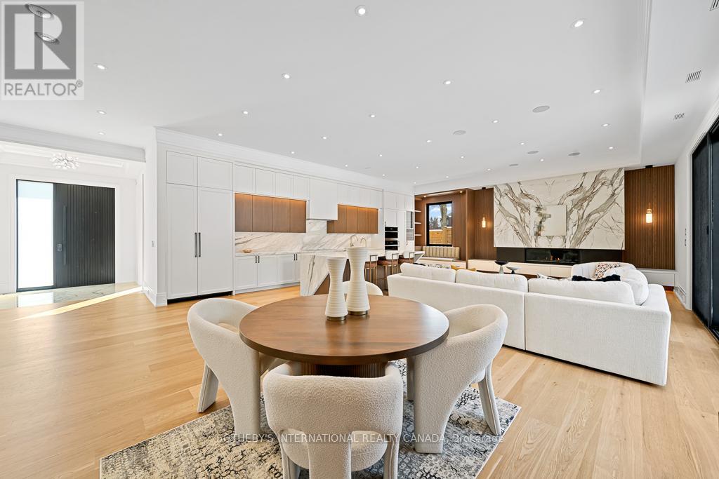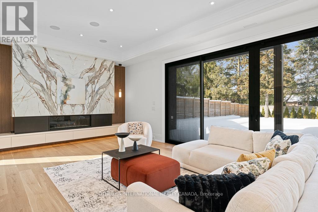 An exceptional custom residence nestled in one of Kleinburg's most coveted enclaves, where refined design meets an unparalleled lifestyle. Just minutes from the iconic McMichael Canadian Art Collection and the charming boutiques, cafés, and restaurants of Kleinburg Village, this home offers a rare blend of cultural richness, natural beauty, and modern luxury.The striking exterior showcases a tall mahogany front entry door, natural stone porch, professionally designed landscape lighting, and composite decking with all-glass railings. The private backyard is an entertainer's dream, featuring a fiberglass inground swimming pool, irrigation system, covered outdoor seating area, and an outdoor gas fireplace, seamlessly extending your living space into the outdoors. Inside, the home is defined by thoughtful craftsmanship and elevated finishes. The main level boasts 11-foot ceilings, engineered hardwood flooring, extra-tall solid wood interior doors, and expansive aluminum windows with integrated screens that flood the home with natural light and offer picturesque views from every room. A stunning interior gas fireplace anchors the living space, while radiant heated floors enhance comfort throughout the main living areas and basement.The chef's kitchen is a true showpiece, appointed with custom cabinetry featuring birch plywood interiors, marble countertops, centre island and backsplash, and premium appliances including a perfect for both everyday living and elegant entertaining. The fully finished walk-out basement offers a versatile layout ideal for entertaining, extended family living, or a private retreat, all while maintaining seamless indoor-outdoor connectivity.Located within walking distance to scenic trails and the heart of Kleinburg Village, and close to excellent public, French, Catholic, Montessori, and private schools, this home delivers an extraordinary lifestyle in a truly timeless setting. (id:4555)