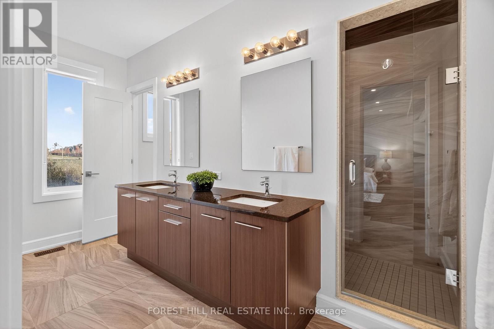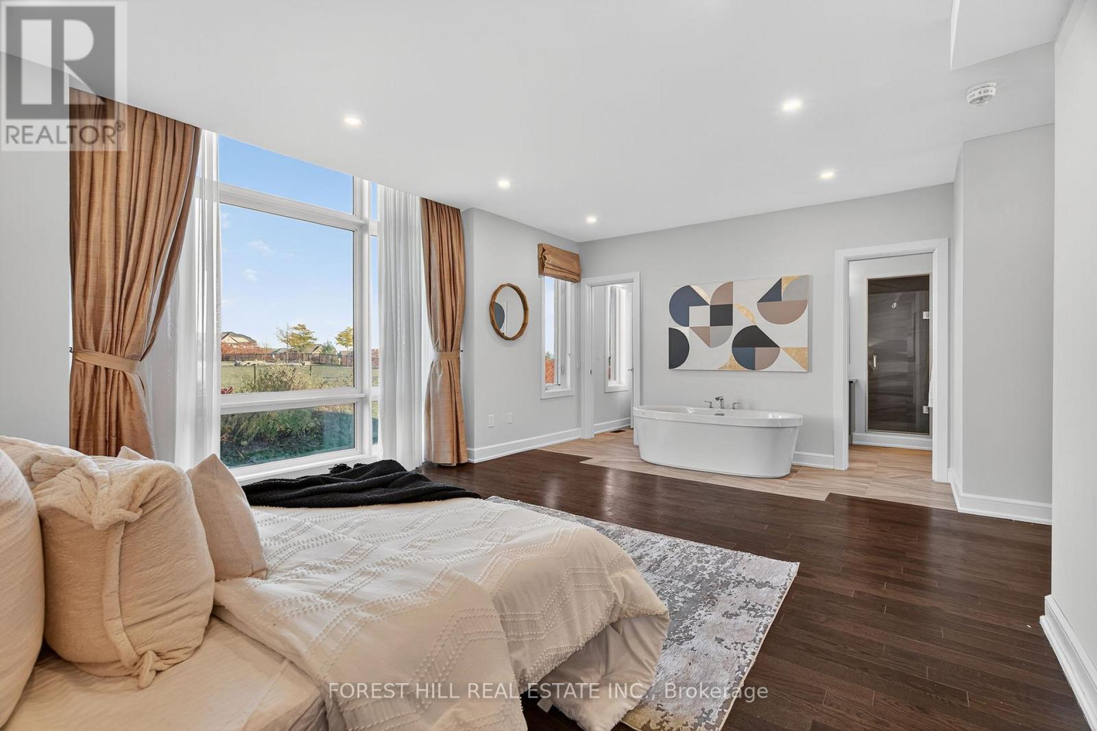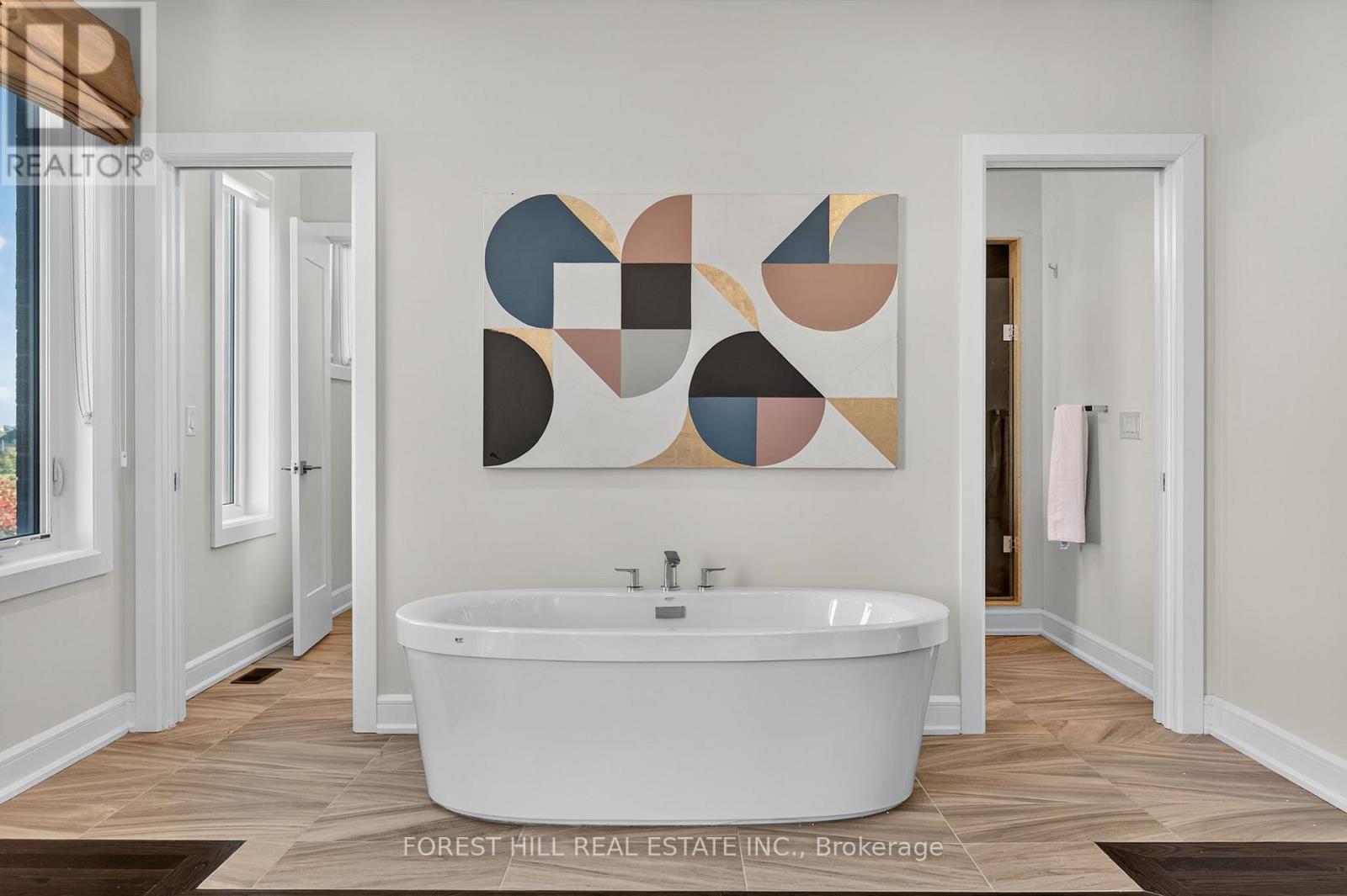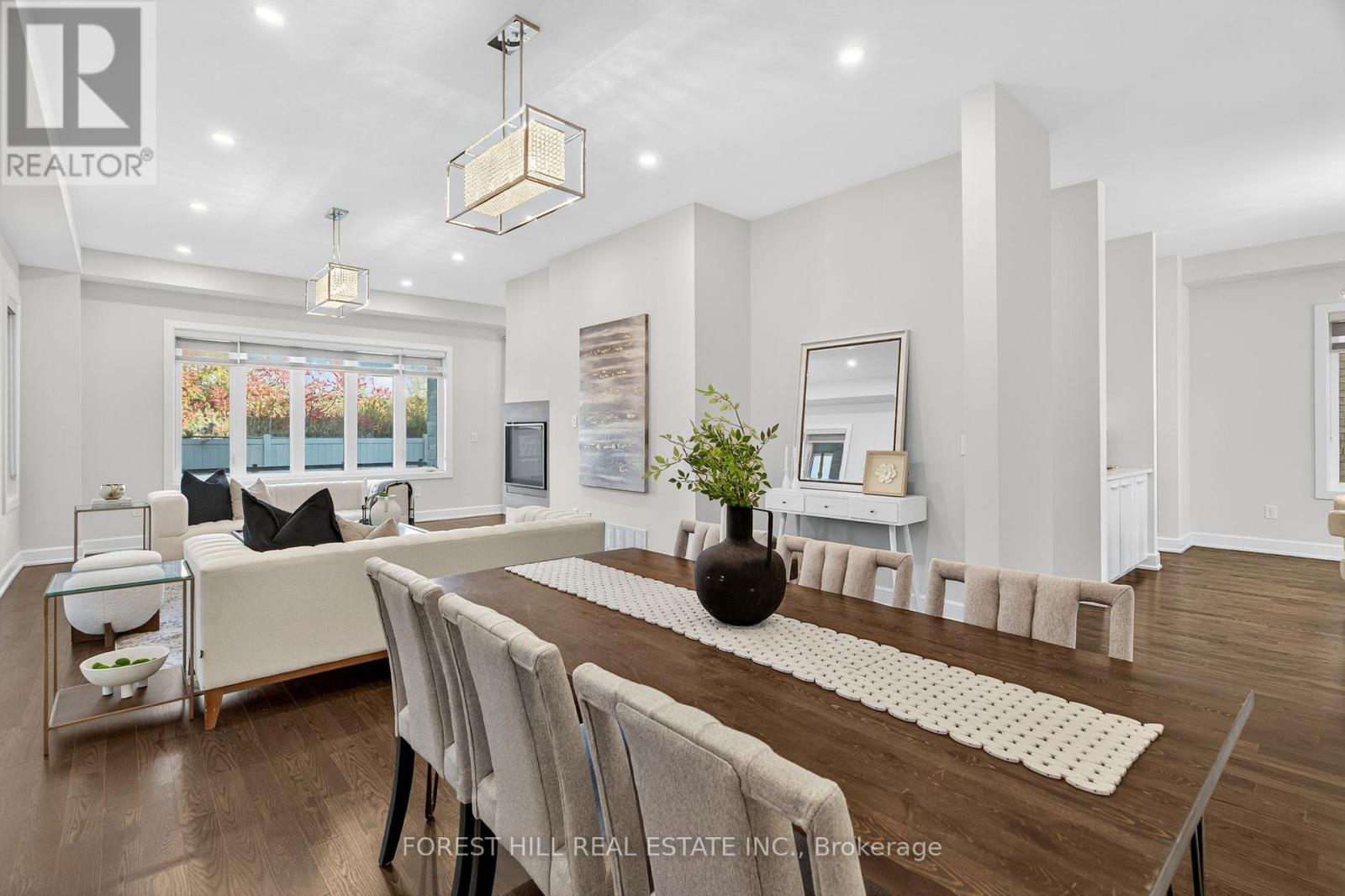 Welcome to 392 Farrell Road, a modern, open-concept three-story dream home in the highly coveted Upper Thornhill Estates community. This stunning 4+1 bedroom, 5-bathroom residence offers approximately 4,254 sq. ft. above grade, featuring soaring 10-foot ceilings on the main floor and 9-foot ceilings on the second, with designer finishes and craftsmanship throughout. The main floor boasts a bright, open-concept layout with spacious principal rooms, a custom designer kitchen complete with high-end stainless steel appliances, large centre island, granite countertops, custom cabinetry, and walkout to a private backyard. The elegant living and dining room combination features a double-sided fireplace open to the family room, creating a seamless flow for entertaining and everyday living. A large mudroom with built-in storage offers direct access to the two-car garage. The second floor includes an office nook/media area ideal for working or studying, and four large bedrooms, each with its own ensuite bathroom and generous closet space. The primary suite impresses with soaring ceilings, floor-to-ceiling windows, a spa-like five-piece ensuite, and a massive walk-in closet. The third-floor loft provides additional living space with a full bathroom and a walkout to a private rooftop terrace featuring composite decking and glass railing-perfect for relaxing or entertaining under the stars. The partially finished basement includes a laundry room with front-loading washer and dryer, a large sink, and an unfinished area with high ceilings and a walk-up to the backyard. Ideally located in Upper Thornhill Estates, this exceptional home is steps from top-rated schools, serene nature trails, parks, and all of Vaughan's best amenities. Combining contemporary elegance, thoughtful design, and a prime location, this property offers the ultimate in luxurious family living. (id:4555)