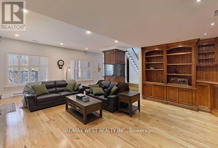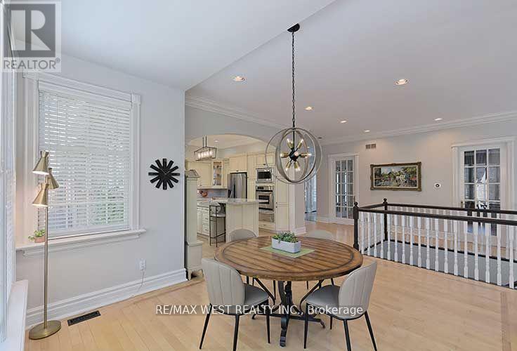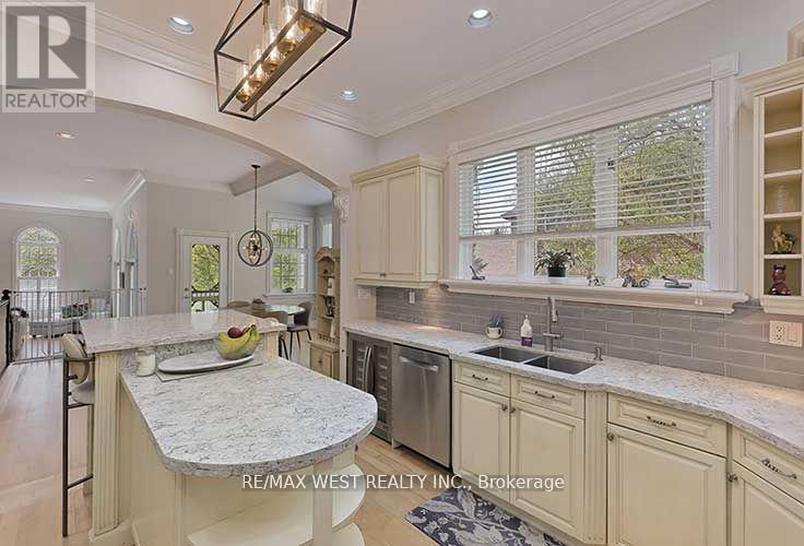 Luxurious Bungalow with 7,352+ sq ft of total living space, on sought after street. Open concept bright 4+1 bedroom, 5+1 bath with several w/o's. Kitchen with dual ovens, wine fridge, centre island, sep. breakfast area, w/o to porch. Enclosed dining room with french doors, overlooking front garden. Huge open concept family room on main floor, with sunny cathedral windows, gas fireplace and w/o to covered patio. See mature trees from every window! Spacious basement offers 10'3" ceilings, custom built solid wood bookcases, wood burning fireplace, and separate entrance and driveway. Private 750 sq ft apartment above garage with new stainless appliances. Heated extra large garage. Multiple expansive entertaining spaces indoors & out. Fully landscaped with mature trees in an exclusive enclave of unique homes. Many walking trails, parks close by. Minutes to Hwy 427,407, & Pearson Airport. (id:4555)
