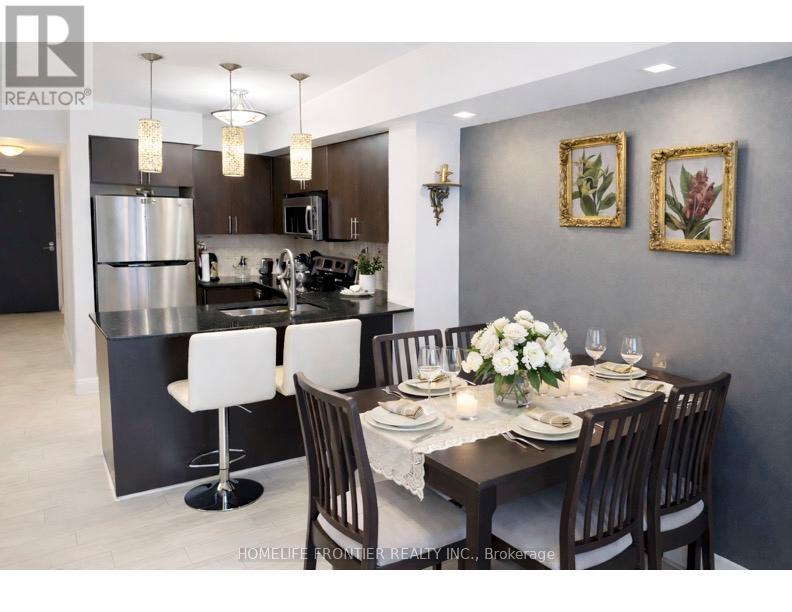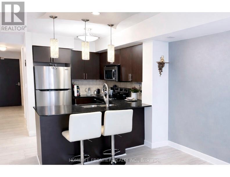 Welcome to this luxurious condo suite in the highly sought-after, family-friendly Beverley Glen community. Offering 780 sqft of thoughtfully designed living space + an oversized private balcony, this stunning residence blends modern elegance w/ everyday functionality. This beautifully laid-out suite features 1 spacious bedroom, a versatile den & 2 well-appointed baths. The den offers exceptional flexibility - ideal as a home office, nursery, guest space or potential 2nd bedroom. The open-concept layout seamlessly connects the living, dining & kitchen areas, creating an inviting space perfect for entertaining & comfortable daily living. Large SW-facing windows flood the unit w/ natural light, while the walk-out to the expansive balcony showcases breathtaking panoramic city skyline views - the perfect setting for morning coffee or evening relaxation. The modern kitchen is a standout, designed w/ both style & function in mind. It features granite countertops, a breakfast bar, stainless steel appliances, stylish backsplash & modern cabinetry for optimal storage. Whether hosting guests or preparing everyday meals, this kitchen delivers sophistication & practicality. The primary bedroom offers a generous W/I closet & private 4-pc ensuite, creating a peaceful retreat. An additional 2-pc bath adds convenience for guests. Condo fees include 1 parking space, 1 locker, heat, water, CAC & visitor parking, plus access to premium amenities: indoor pool, gym, sauna, party/meeting rooms & rooftop deck/garden. Unbeatable location - steps to Promenade Mall, Walmart, cafes, synagogues, parks, transit, excellent schools & restaurants. Quick access to Hwy 7 & Hwy 407 ensures seamless commuting throughout the GTA. (id:4555)