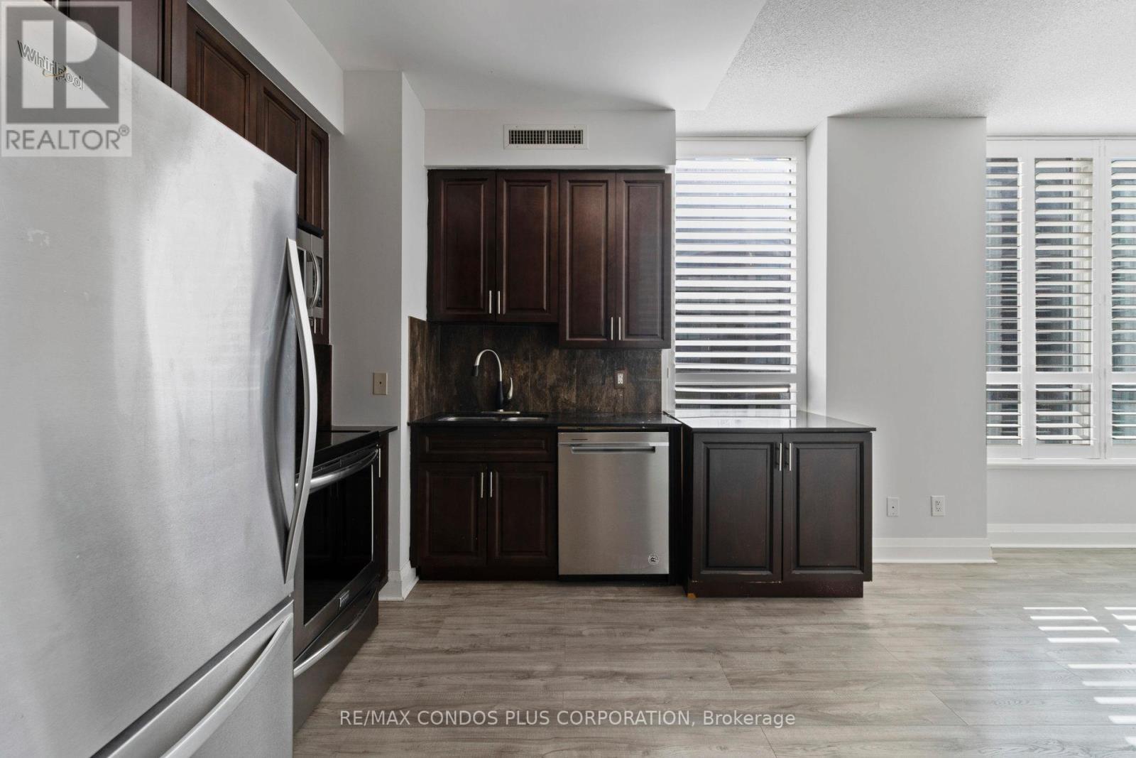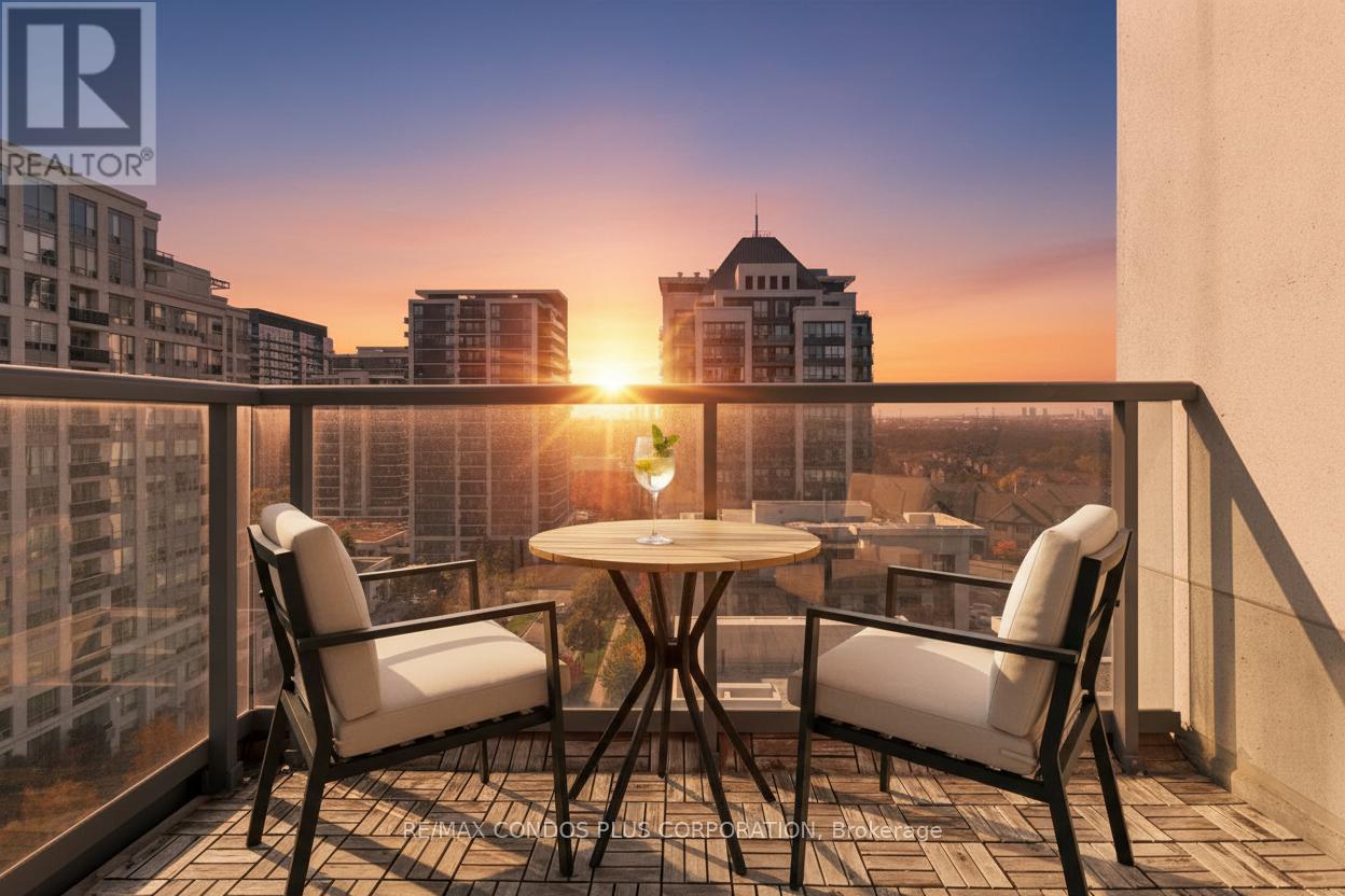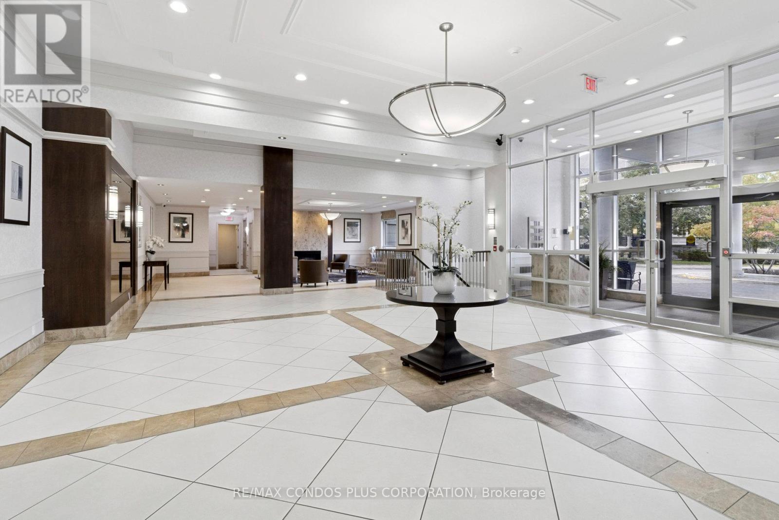 This spacious and stylish split-bedroom corner suite featuring 9 ft ceilings, offers over 889 sq ft of luxury living space, two full bathrooms, two large proper bedrooms, and a versatile den. The open-concept living room and kitchen provide plenty of space to relax and entertain. Unwind on your private balcony with unobstructed southwest views. The suite is adorned with upgraded flooring and elegant California shutters throughout. Experience a strong sense of community with full amenities, including a 24/7 concierge, indoor pool, gym, party room, and rooftop deck, among others. Enjoy a prime location in the heart of Thornhill, just steps away from Promenade Mall, Viva Terminal, multiple grocery stores, Walmart, parks, places of worship, and top-rated schools. Everything you need is within walking distance! (id:4555)