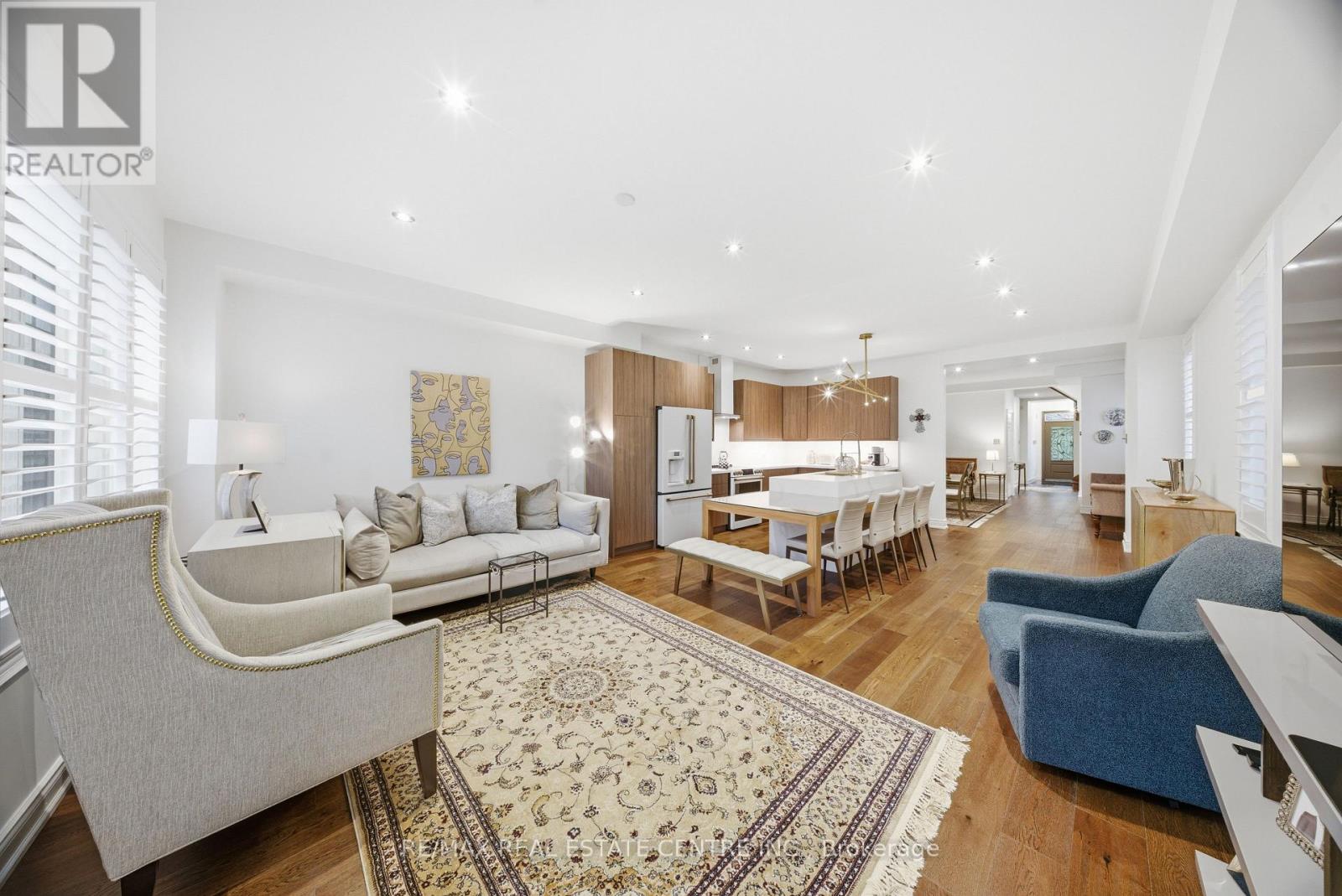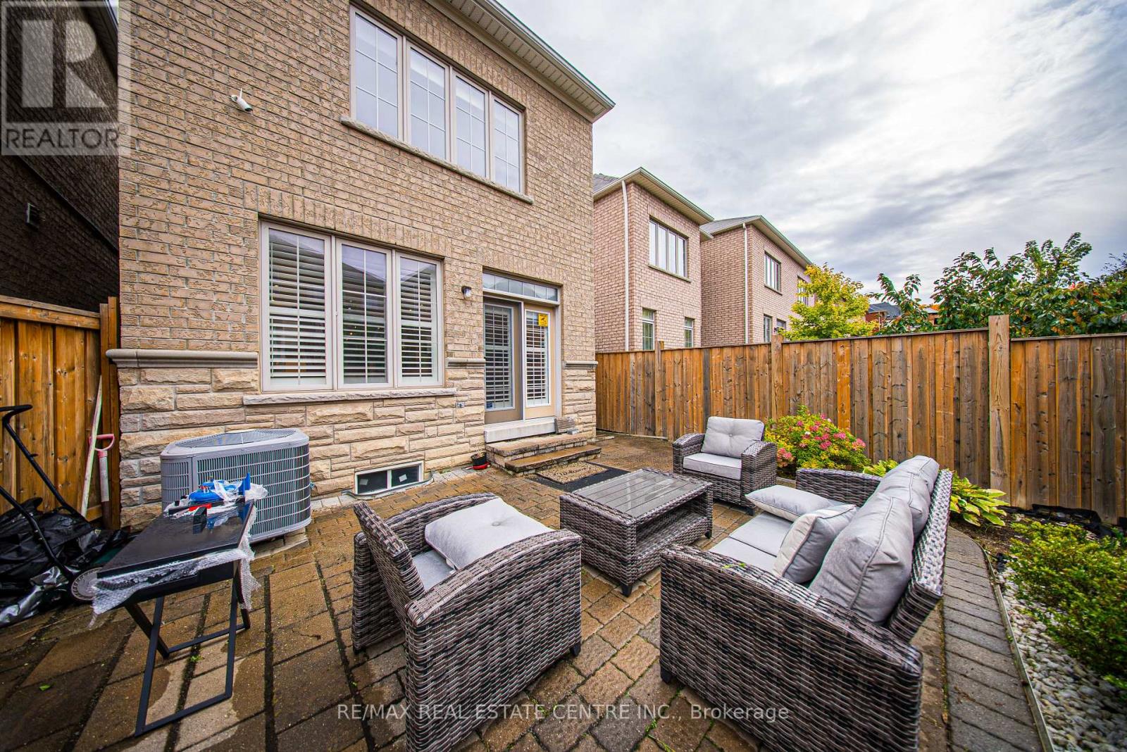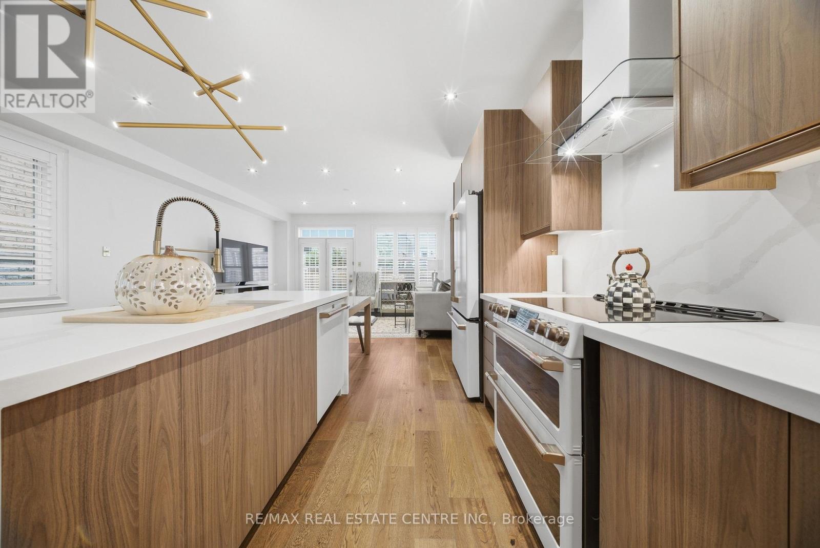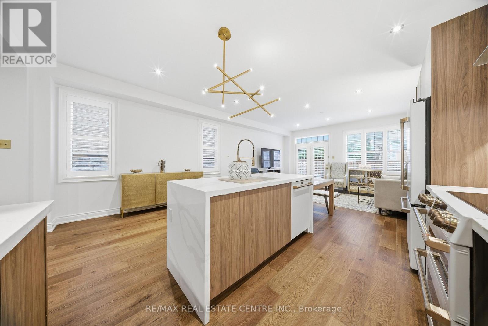 Experience the pinnacle of luxury living in the heart of Thornhill Woods with this absolutely stunning linked home (linked by garage only) spanning 2,217 sq. ft. Meticulously upgraded with up to $90k in enhancements, this residence exudes style and sophistication from its striking stone facade to the beautifully interlocked front and backyard. Step inside to discover soaring 9-foot ceilings on the main and second floors, smooth finishes, and hardwood flooring throughout, complemented by California/Max Mara shutters on the main floor and elegant blinds upstairs. The gourmet, open-concept kitchen is a chef's dream, featuring a center island with built-in glass-top breakfast table, maple cabinetry, granite countertops, stylish backsplash, high-end GE Cafe appliances with warranty, and an additional fridge in the basement, all illuminated by thoughtfully placed pot lights. Relax in the inviting living room or enjoy a quiet moment in the study nook. The primary suite offers a 5-piece spa-inspired ensuite and dual closets for ultimate comfort. Additional touches such as upgraded light fixtures, access from the garage, and a new hot water tank rental underscore the attention to detail and modern convenience. This home is a rare combination of elegance, functionality, and prime location, offering a lifestyle of unparalleled refinement in Thornhill Woods. (id:4555)