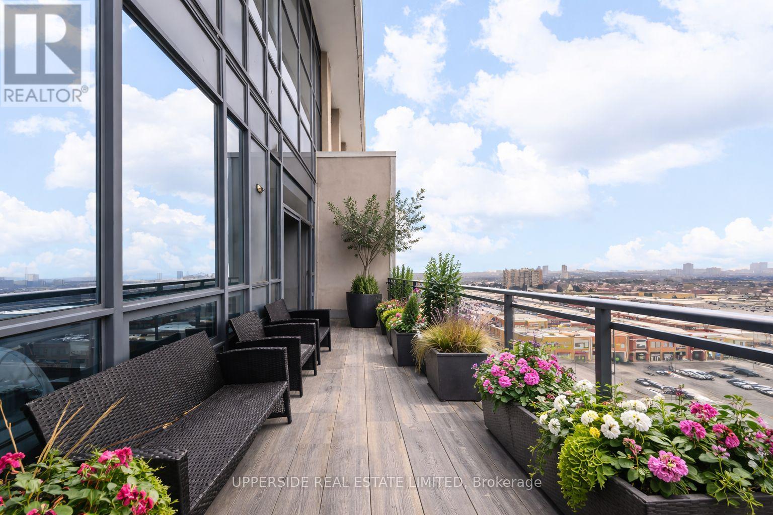 Experience elevated living in this stunning penthouse suite at 85 North Park Rd. Thoughtfully upgraded and exceptionally spacious, this residence features one of the building's most sought-after side-split layouts, offering functionality, style, and privacy. The home showcases a brand-new custom kitchen with premium cabinetry, a center island, and ample storage, creating a modern and functional space for cooking and entertaining. It also boasts a welcoming entryway, two fully upgraded bathrooms, and two spacious bedrooms, including a primary retreat with a luxurious ensuite and a walk-in closet. The open dining area flows seamlessly into an inviting living room with floor-to-ceiling tinted windows, providing abundant natural light and enhanced privacy. Soaring 9-foot ceilings and custom blinds throughout create a serene ambiance, while upgraded light fixtures add a touch of elegance. Step outside to your private 100 sq. ft. terrace with views of the downtown Toronto skyline-the perfect extension of your living space for relaxing or hosting. The building offers an impressive selection of amenities, including an elegant party room, games room, conference room, pool area with hot tub and sauna, fully equipped gym, and a dedicated yoga/Pilates studio. Ideally situated in the vibrant Thornhill community, this condo offers unparalleled convenience with close proximity to places of worship, highly regarded schools, shopping, dining, healthcare and wellness facilities, parks, and everyday essentials. Public transit is just steps away, including the Promenade Transit Hub, with the subway only a short distance away. Major highways are also easily accessible, making this an ideal location for both work and leisure. The neighborhood attracts both young professionals and families, making it a compelling lifestyle and investment opportunity. A rare penthouse offering that perfectly combines exceptional location, privacy, luxury, space, and premium upgrades. (id:4555)