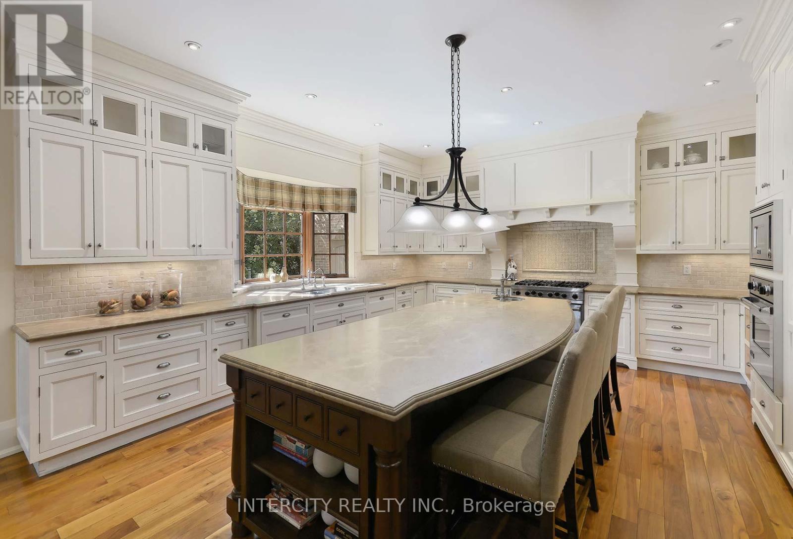 Welcome to 139 Orr Avenue, where over 13,000 Sq. Ft. of custom built luxury awaits in one of the GTAs most prestigious neighbourhoods. The striking Indiana limestone, solid brick and DuRock stucco exterior accented by copper roofing and low E, argon filled wood clad windows sets the tone for the handcrafted details within. Step through custom walnut and stained glass doors into a marble foyer and you will discover solid poplar and cherry doors, hand stained maple stairs, walnut and oak floors, plus hand painted Bloomsbury maple and cherry cabinetry throughout. Radiant in floor heating on every level (with solar ready hookups), high velocity A/C, HRV exchangers and steam humidifiers ensure comfort year round. The main floor flows effortlessly from formal dining and music rooms to a sunken family room anchored by a stone faced fireplace. The chefs kitchen features Viking appliances, a spacious island, plenty of counter space, and a bakers kitchen for seamless entertaining. Upstairs, seven generous bedrooms each offer custom closets, private ensuites and built in study nooks, while the loft provides versatile lounge or play space. Downstairs, the fully finished basement is your ultimate retreat with a second kitchen, entertainment area with built-in 5.1 Grohe speakers and stone accents, gym, wine cellar, and spacious laundry room with laundry chute plus direct walk up access to the backyard. Outside, flagstone porches, landscape lighting, mature trees and an integrated sprinkler system complete this truly exceptional estate. The heated four car garage with workshop provides ample space for parking and storage. Located just minutes from top schools, parks, Vaughan Mills, Rutherford GO Station, VMC subway station, Canadas Wonderland and highways 400, 407 and 7. (id:4555)