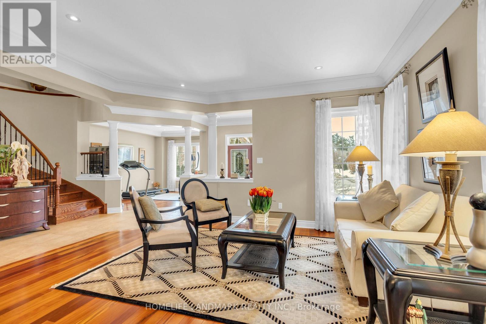 Welcome to 7 Via Campanile. Situated in the prestigious heart of Woodbridge, this former model home offers over 4,100 square feet of refined living space, perfectly positioned among lush parks, elite schools, and estate residences. The main floor is a masterclass in architectural detail, featuring soaring 9 ft coffered ceilings, decorative columns, and rich hardwood floors. A signature spiral oak staircase with contemporary metal spindles serves as a striking focal point, while upgraded crown molding and designer pot lighting throughout the first floor add a layer of modern sophistication. Even the family room has been elevated with a special upgraded fireplace mantle, creating a truly grand atmosphere for relaxation. A Gourmet Chef's Sanctuary. The heart of the home is the expansive kitchen, designed for both high-end entertaining and daily functionality. Stunning granite countertops with plenty of counter space for meal prep. Extra-height cabinets that maximize storage and vertical scale. Integrated under-cabinet lighting to highlight the workspace , along with a kitchen pantry. The elegance continues to the upper level, which features crown molding throughout for a polished finish. All four generous bedrooms boast ensuite access, but the primary sanctuary is the true showpiece. It features a romantic 2 way fireplace and a spa-inspired ensuite complete with a glass shower stall and a bidet. For added versatility, the open-concept loft offers the perfect footprint for a private media lounge. Limitless Potential, With a massive 2,000 sq. ft. unfinished basement featuring a separate service entrance, the potential for a custom guest suite or high-end rental is limitless. Located minutes from top-rated golf courses, shops, and major highways, 7 Via Campanile offers prestige, privacy, and unparalleled convenience. This is a true turn-key luxury home in one of Vaughan's premier neighborhoods. Updates: Roof (2026), A/C (2021), Hot Water Heater (2020) and Furnace (2019) (id:4555)