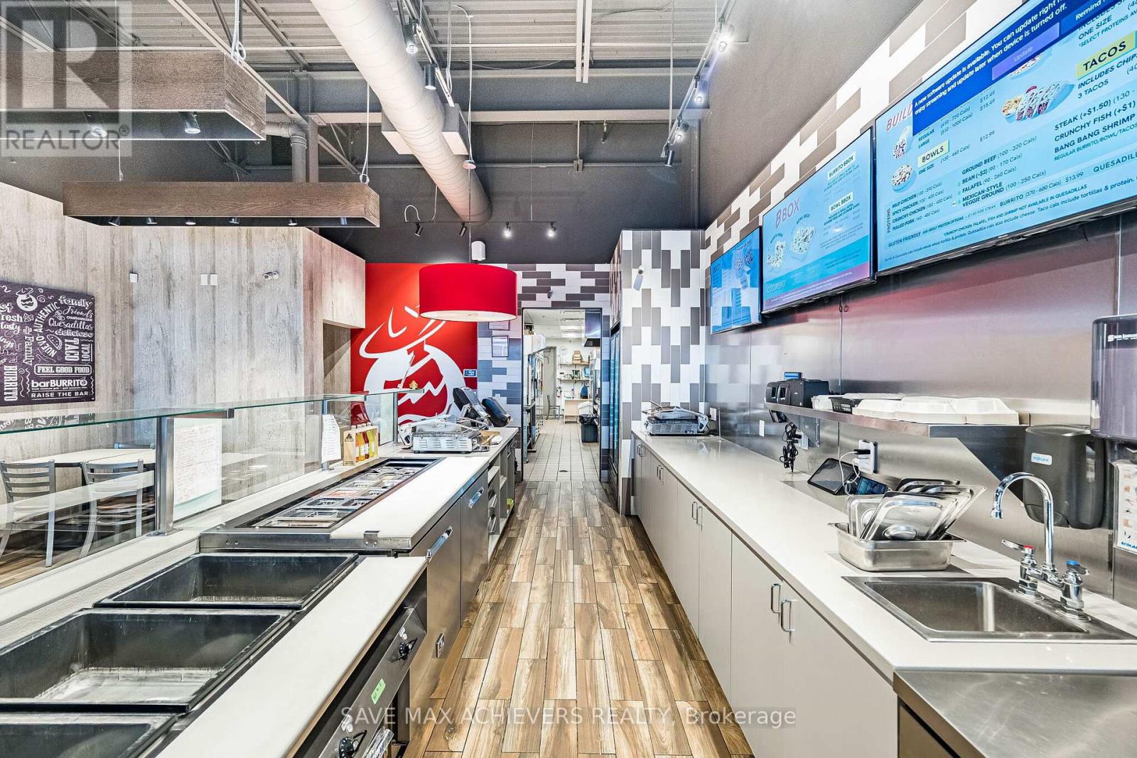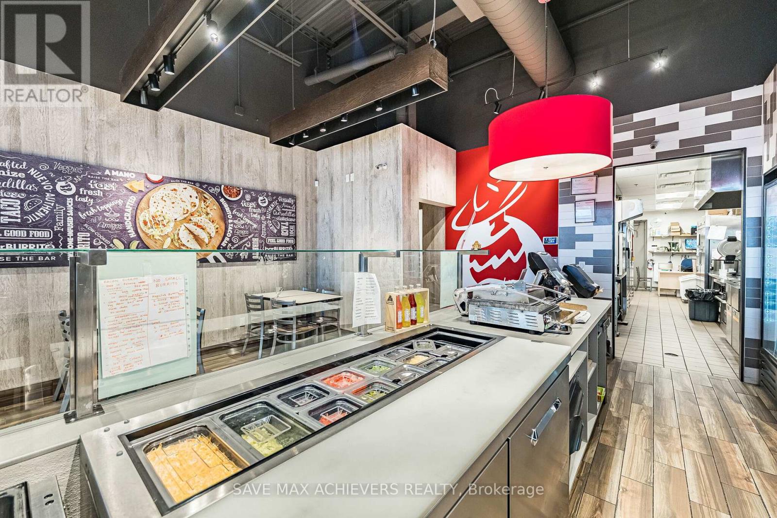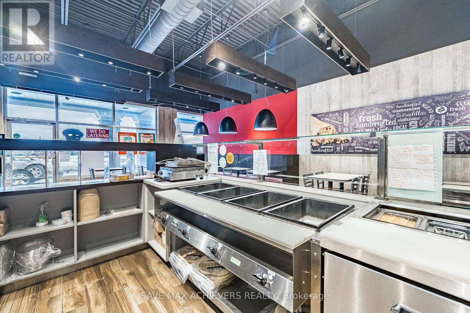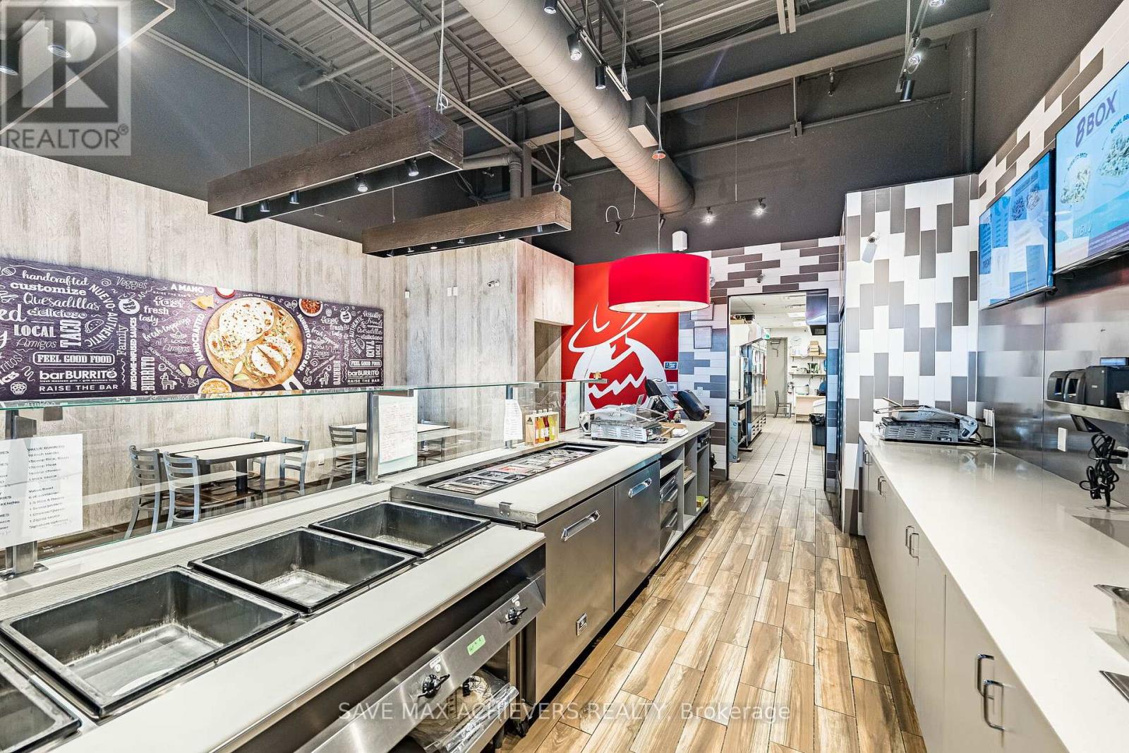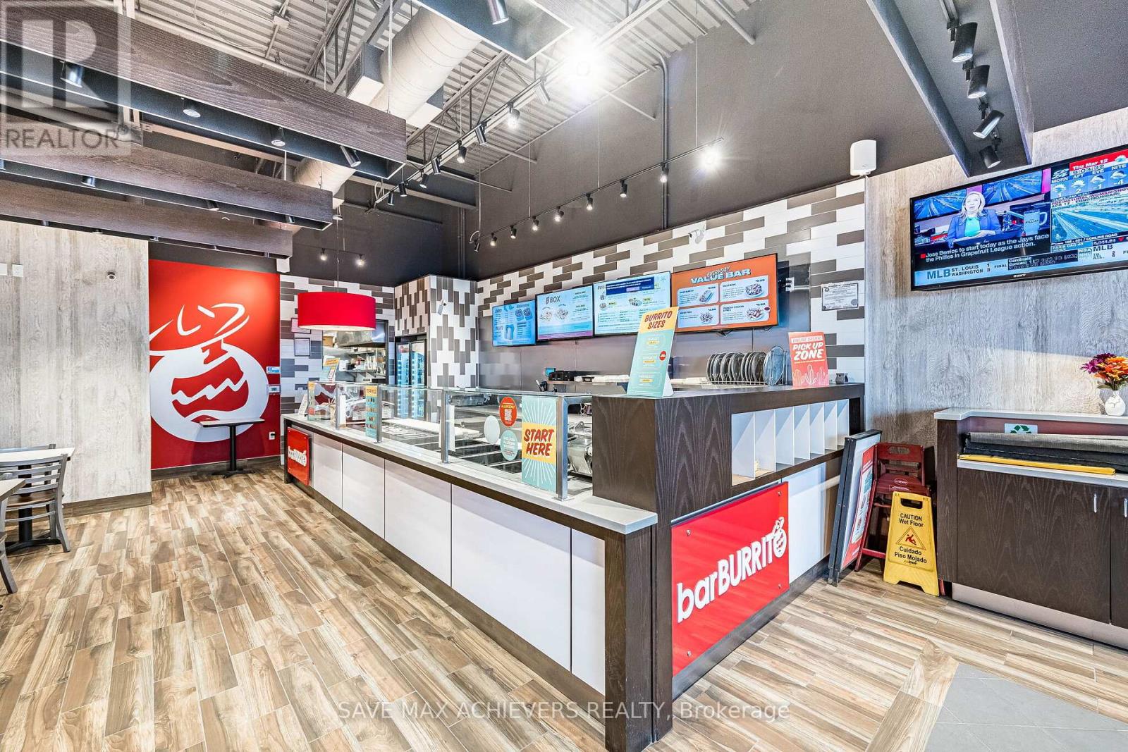 Excellent Turnkey Franchised Business Opportunity - Bar Burrito located in a high-traffic plaza at the busy intersection of Islington Ave. & Rutherford Rd., in Vaughan (Woodbridge). Surrounded by a mature residential neighborhood with anchor tenants such as Food Basics, McDonald's, Tim Hortons, and Pizza Pizza. Proximity to schools, Highway 400, and numerous residential developments provides steady walk-in traffic and potential for growth. This well-established fast-casual restaurant boasts high monthly sales of approximately $33,000-$35,000 with low monthly rent of$5,708 (Incl. TMI & HST). Utility costs are approximately. $1,000-$1,200/month. Franchise fees include 6.0% royalty and 1.25%advertising. Long-term lease in place with two 5-year renewal options available. Store size approx. 1,500 sq.ft. with a seating capacity of 24- 28 people. Well-maintained, fully equipped kitchen and dining area with a strong customer base and opportunity to increase revenue through catering, delivery platforms, and community engagement. Perfect for owner-operators or investors seeking a stable, branded food business in a premium location. (id:4555)