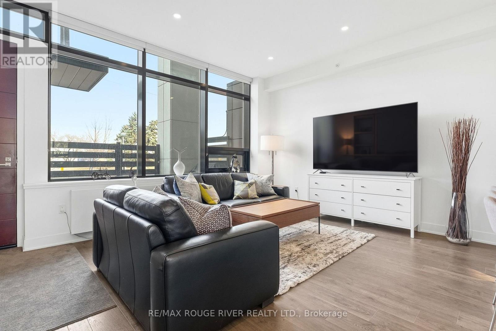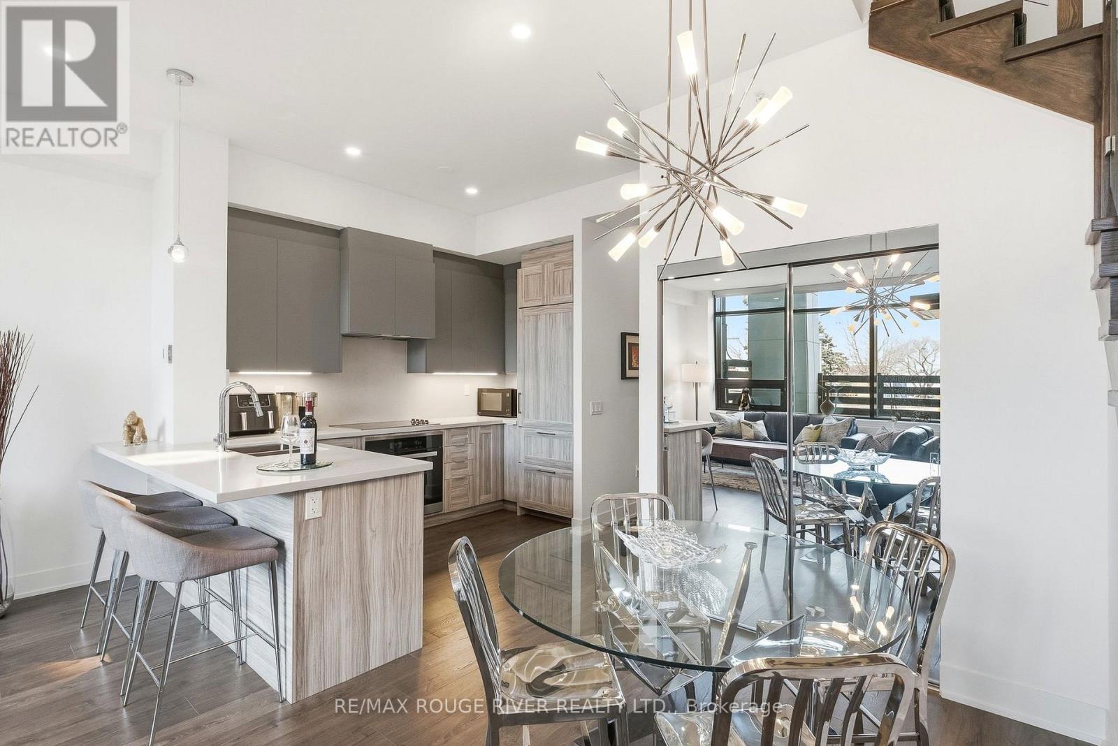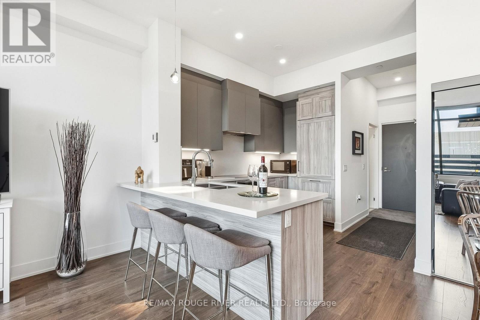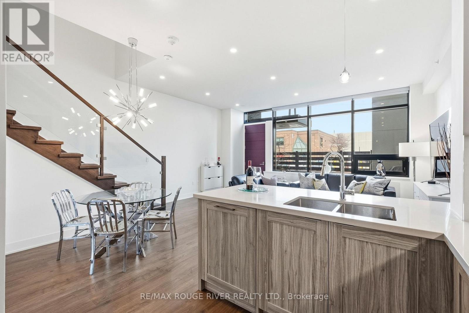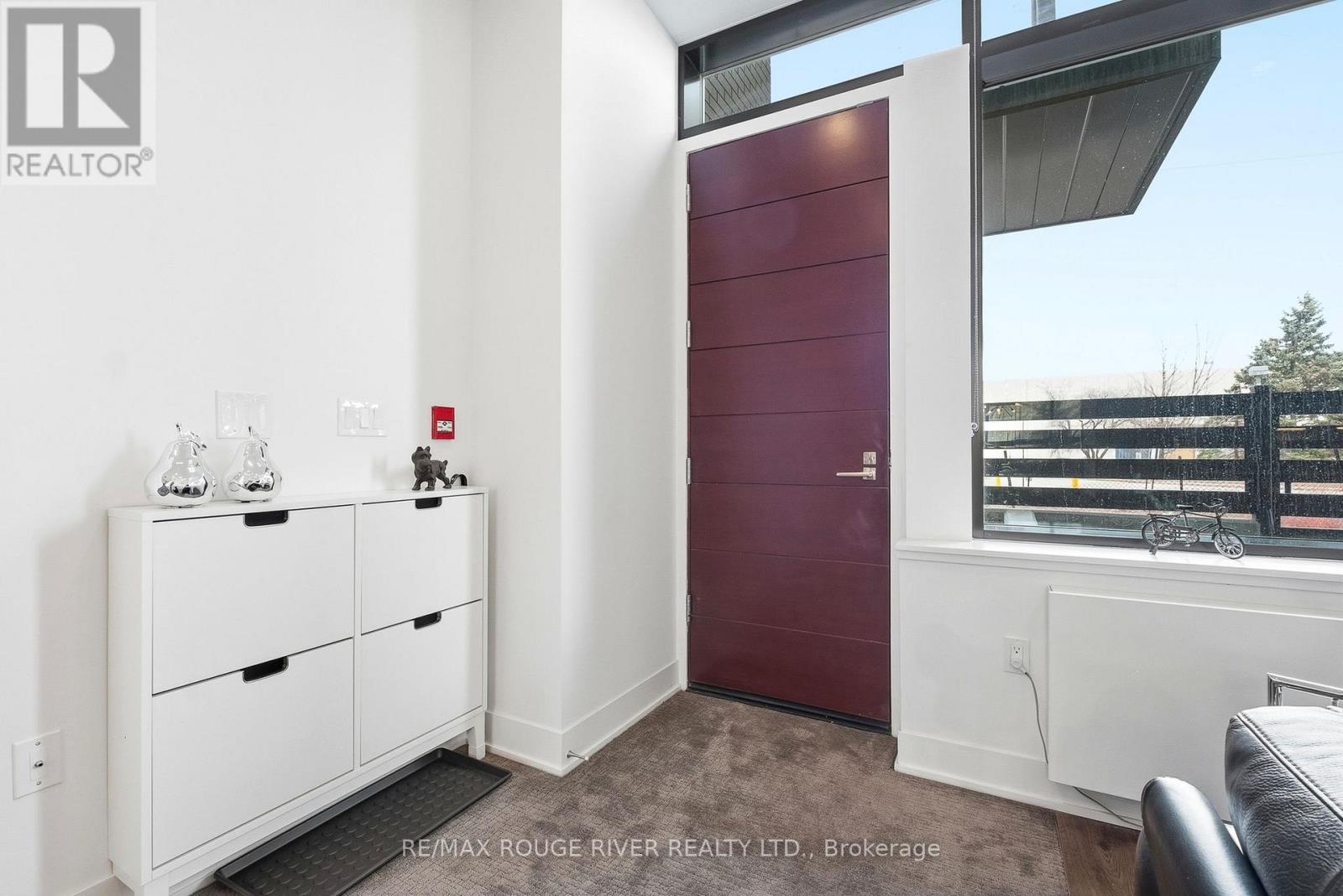 Outstanding value meets a curated lifestyle at the prestigious NORD East Condos known for superb amenities & good quality Dell property management. Bright open plan layout with soaring ceilings, tall windows, and walkout to a private terrace ideal for dining alfresco, complete with a bbq gas line and waterline, plus your own private exterior entry gate, perfectly suited to an active lifestyle and pet-friendly living.The integrated chef's kitchen features Caesarstone counters, and integrated Miele appliances, blending style with everyday function. A spacious main floor den with mirrored closets offers flexibility as an office, a den, or as a guest room with proximity to the 2 piece powder rm. The elegant glass staircase leads to a generous sized primary retreat with a walk in closet and ensuite with extended double vanities. Custom blinds, pot lights, and curated finishes throughout. Enjoy resort style amenities including the aqua oasis with indoor/outdoor pools, yoga studio, fitness centre, 24 hour concierge, guest rooms, theatre room, party room, chef's table, and pet spa, along with a new park featuring a children's play area. Includes a storage locker and a dedicated parking space in the garage plus ample ground level parking.. and with steps to the subway and Viva transit, the power of proximity connects you seamlessly to the city. (id:4555)