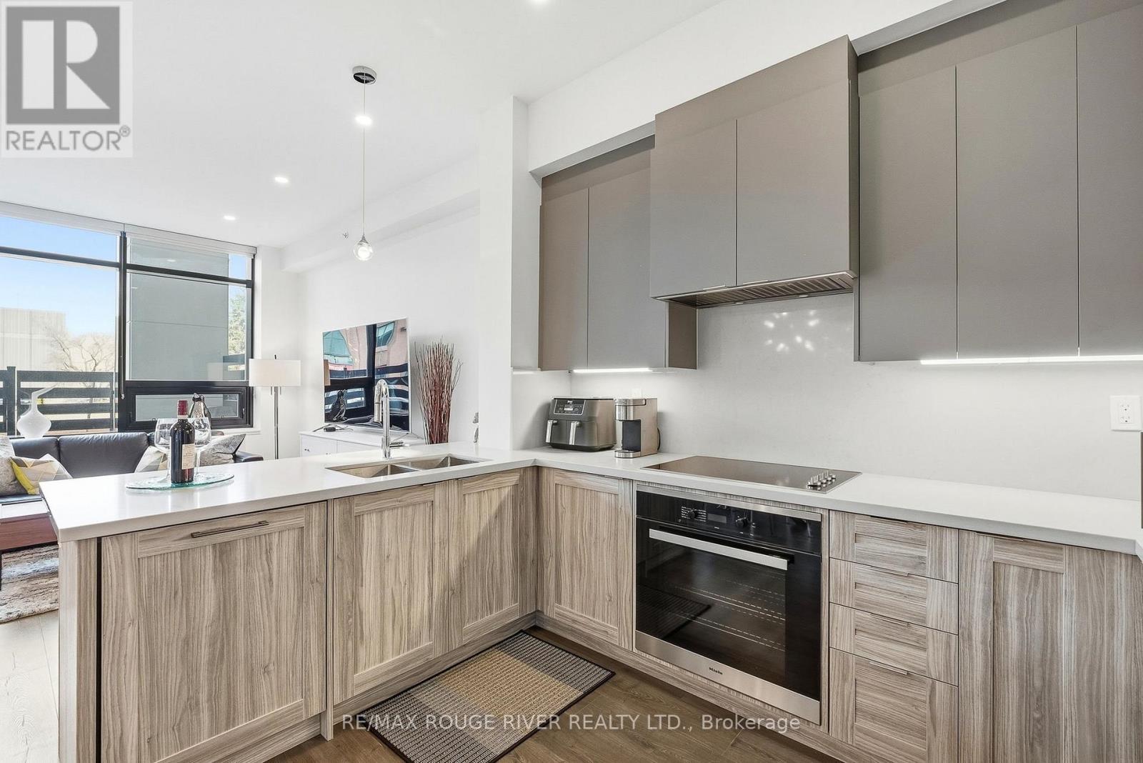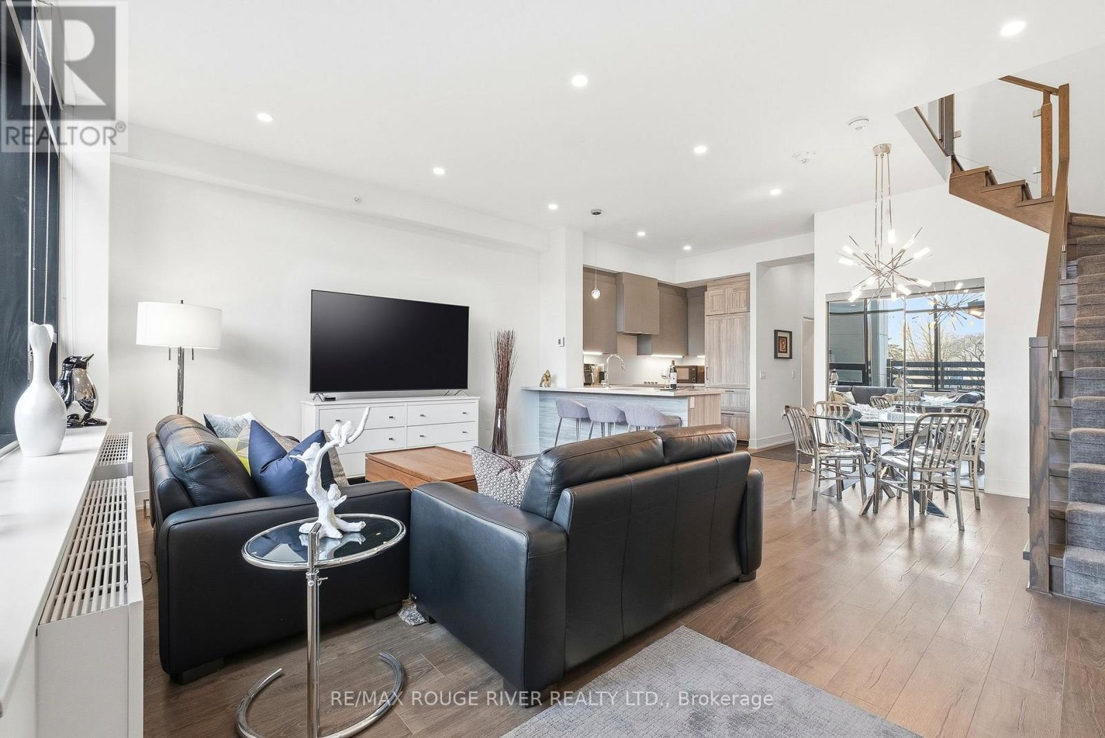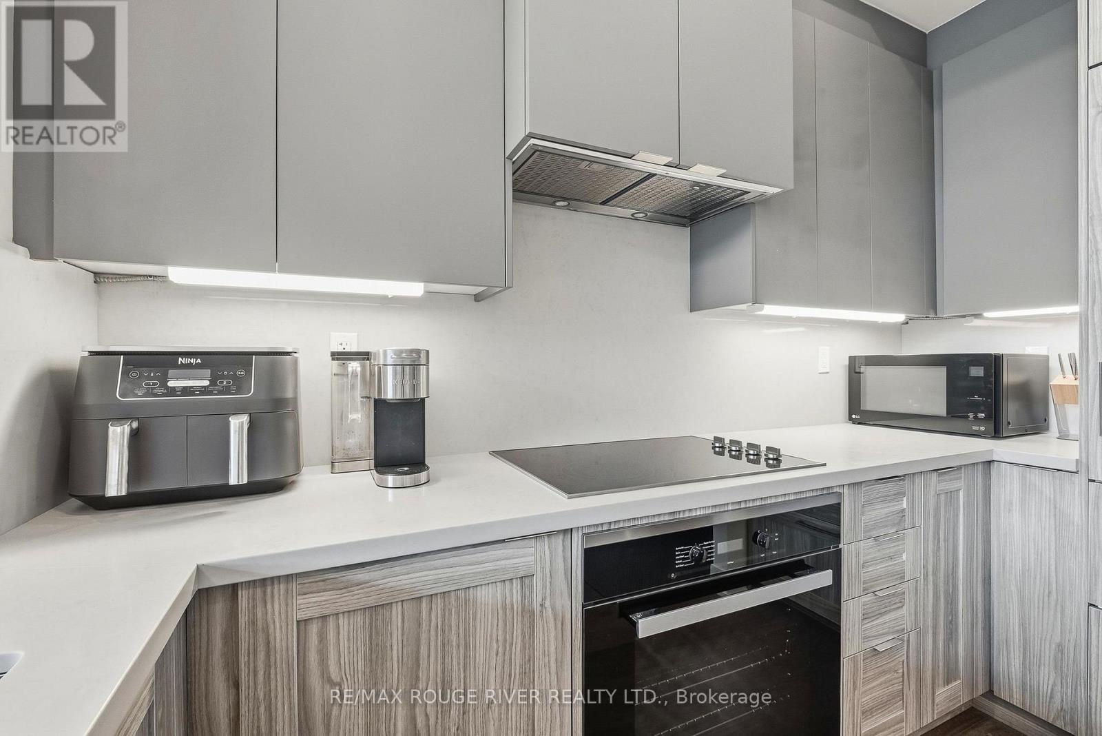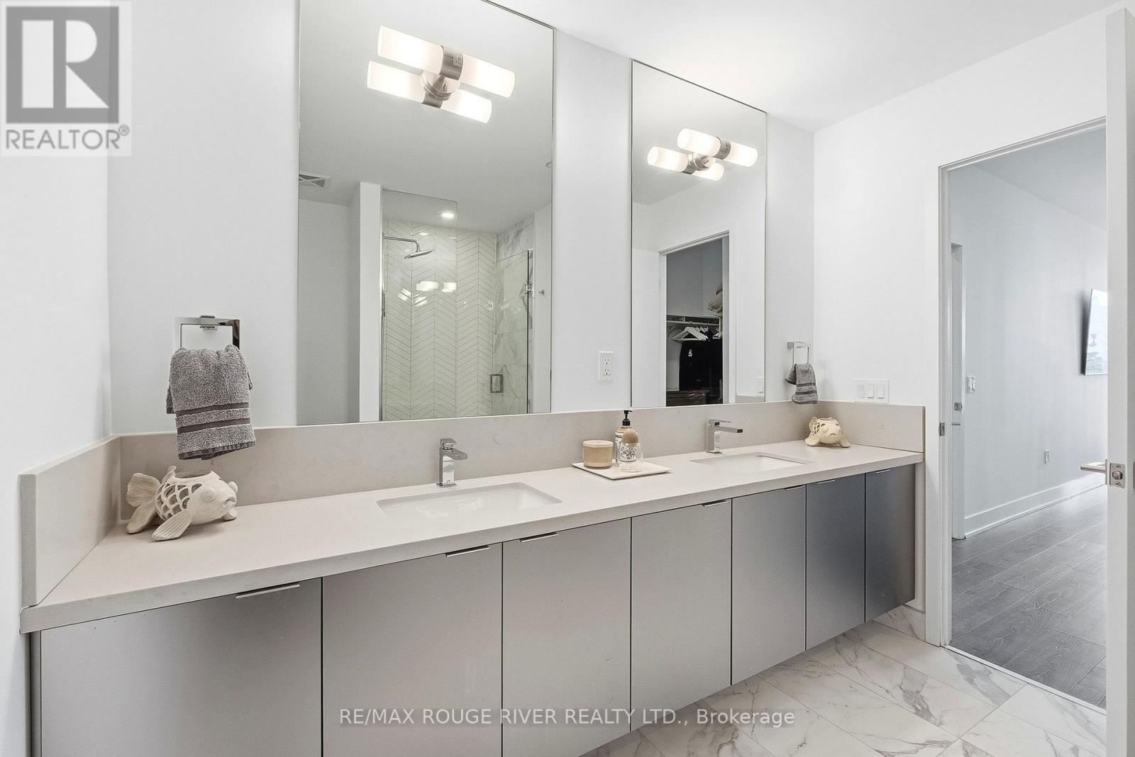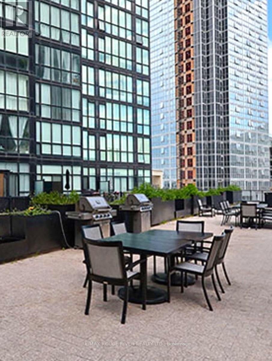 Outstanding value meets a curated lifestyle at the prestigious NORD East Condos known for superb amenities & good quality Dell property management. Bright open plan layout with soaring ceilings, tall windows, and walkout to a private terrace ideal for dining alfresco, complete with a bbq gas line and waterline, plus your own private exterior entry gate, perfectly suited to an active lifestyle and pet-friendly living.The integrated chef's kitchen features Caesarstone counters, and integrated Miele appliances, blending style with everyday function. A spacious main floor den with mirrored closets offers flexibility as an office, a den, or as a guest room with proximity to the 2 piece powder rm. The elegant glass staircase leads to a generous sized primary retreat with a walk in closet and ensuite with extended double vanities. Custom blinds, pot lights, and curated finishes throughout. Enjoy resort style amenities including the aqua oasis with indoor/outdoor pools, yoga studio, fitness centre, 24 hour concierge, guest rooms, theatre room, party room, chef's table, and pet spa, along with a new park featuring a children's play area. Includes a storage locker and a dedicated parking space in the garage plus ample ground level parking.. and with steps to the subway and Viva transit, the power of proximity connects you seamlessly to the city. (id:4555)