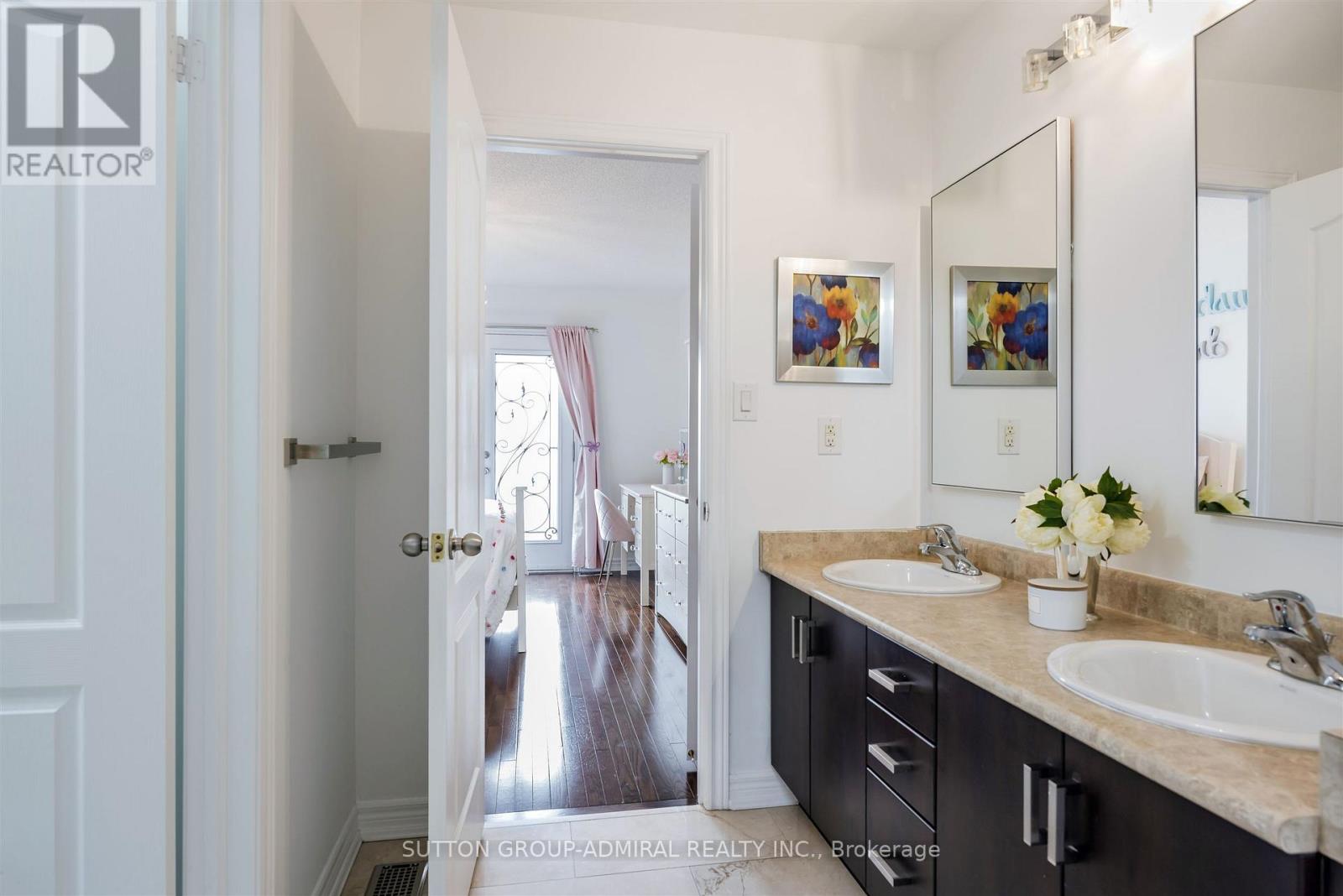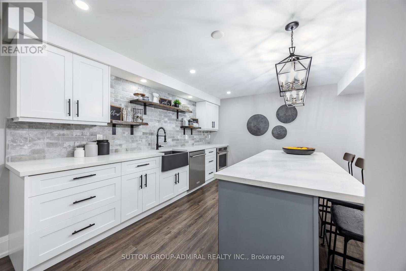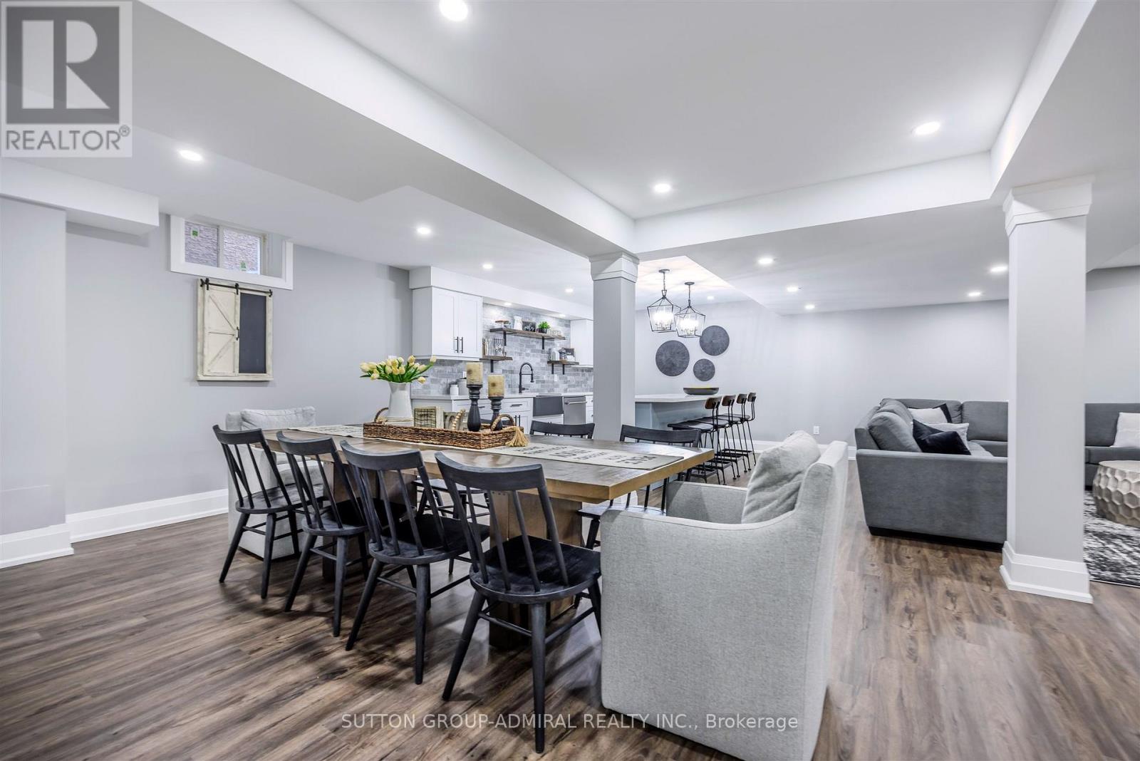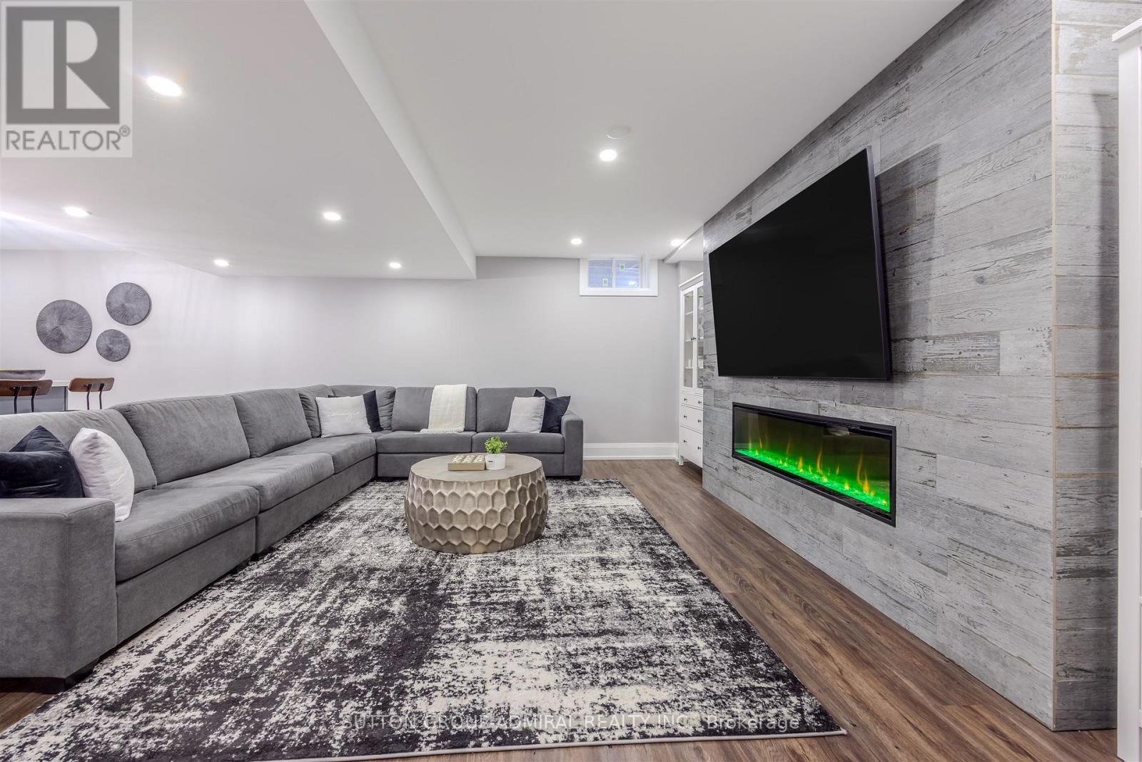 Welcome to this beautifully maintained home that truly displays pride of ownership. Featuring a striking stone and brick exterior with elegant exterior pot lighting, the property is professionally landscaped front & back with interlock. Enjoy the charming flagstone front porch & steps, along with a private backyard complete with a gazebo & shed. The property also features a long driveway with no sidewalk, allowing for additional parking spots. Step inside to a spacious open concept floor plan with large principal rooms. The main floor features a formal dining room and a large chef-inspired kitchen with center island and breakfast bar, upgraded appliances, Caesarstone countertops, tumbled marble floors, and a glass mosaic backsplash. The kitchen opens seamlessly to the inviting family room- perfect for everyday living & entertaining. The family room showcases a custom stone feature wall with a built-in linear fireplace along with custom cabinetry & shelving. The upper level offers four generous bedrooms, including two primary suites- each with its own ensuite bathroom and walk-in closet. Two additional bedrooms share a convenient semi-ensuite bathroom, making this level ideal for families. The professionally finished lower level adds exceptional versatility, featuring a secondary custom kitchen with a large eating area, a spacious recreation room with fireplace, a 3-piece bathroom, an office nook, and ample storage space. Located in the desirable Vellore Village community, this homes is close to all amenities including public transit, shops, schools, restaurants, and convenient access to major highways. (id:4555)