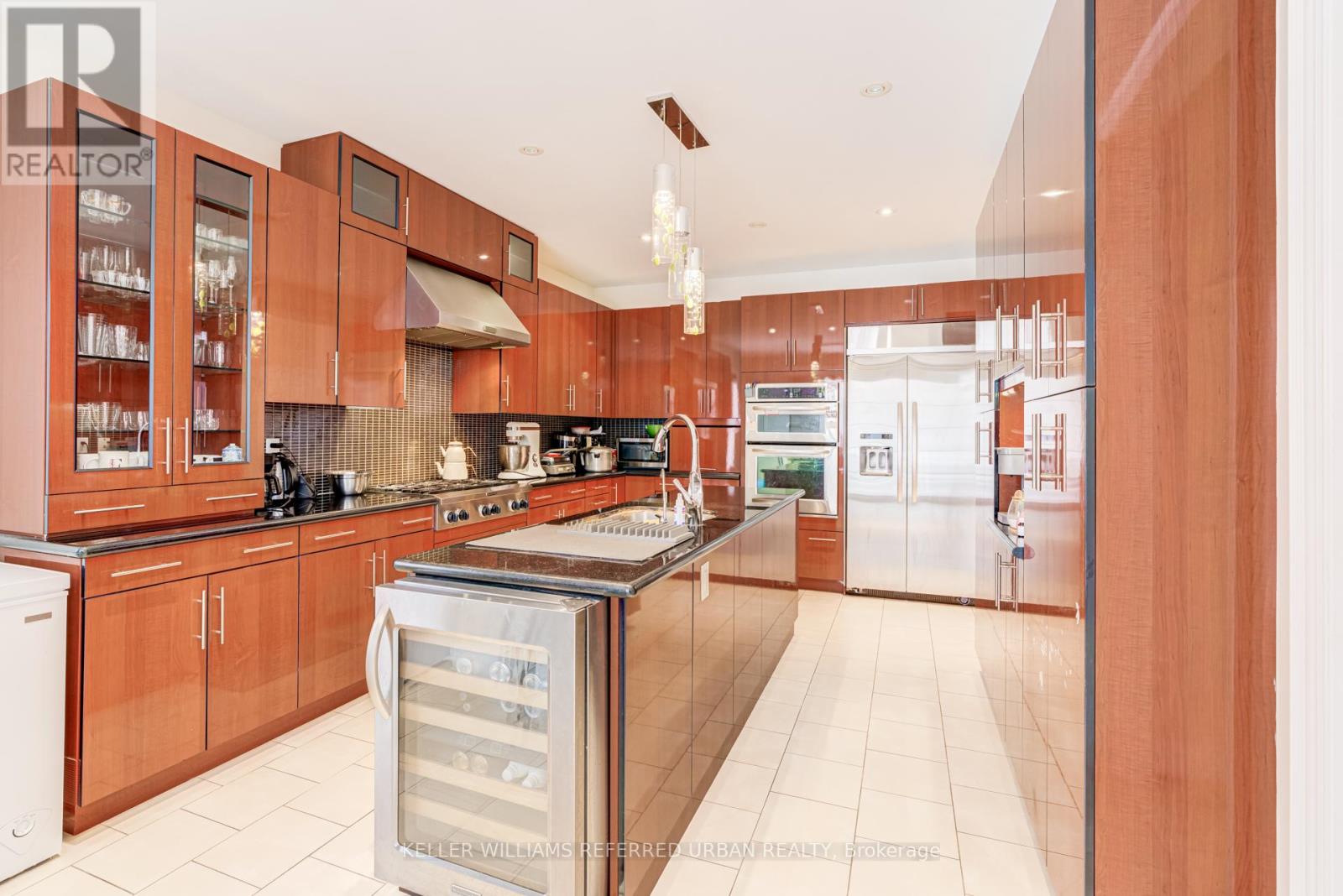 Executive 4-bedroom, 4-bathroom home with a fully finished 2-bedroom + den basement apartment suite with separate entrance, located in prestigious Upper Thornhill Estates on a quiet street facing a beautiful wooded area. Entire home available for lease. Perfect for multi-generational living. The main level features hardwood and limestone flooring and a vaulted living room ceiling. The modern European kitchen offers built-in stainless steel appliances, granite countertops, and abundant cabinetry, with pot lights and upgraded fixtures throughout. The second floor features 4 bedrooms and 3 bathrooms, including a large primary bedroom with walk-in closet and 5-piece ensuite. The spacious finished basement includes 2 bedrooms, a den, living and dining areas, full kitchen, 4-piece bath, fireplace, and large wine cooler, providing comfortable and private extended living space. Excellent location close to parks, top schools, shopping, and transit. (id:4555)