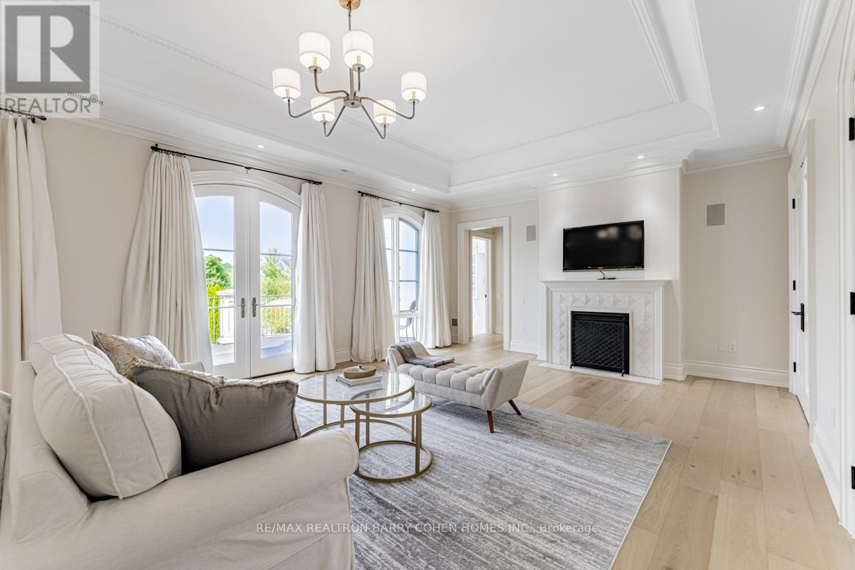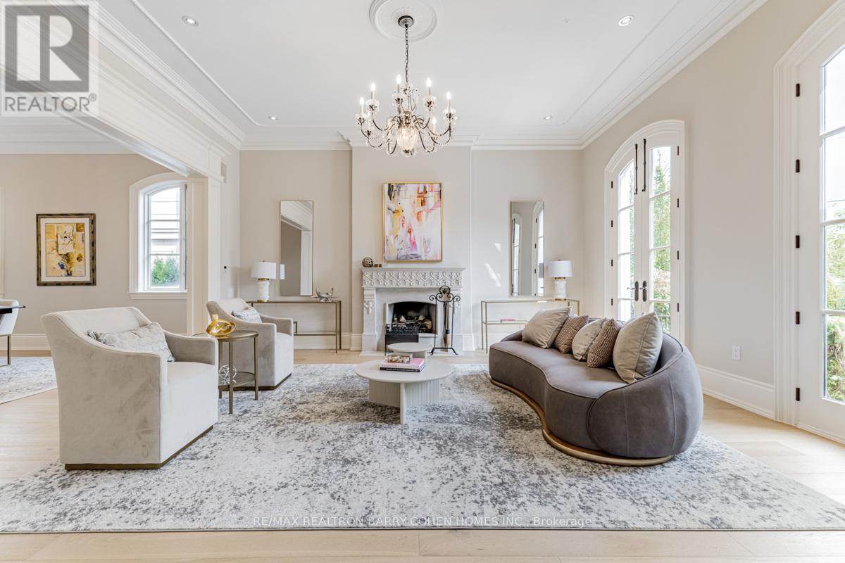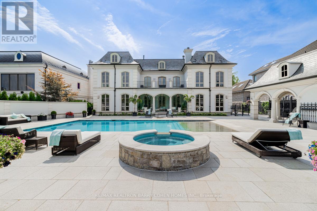 This sprawling, classically designed mansion has a gated front entrance to a circular courtyard with formal gardens with over 10,000 Sq-ft liveable area combined "Lower & upper levels" and lot size of 100 ft X 302 Ft, back to the Prestigious"Thornhill & upland Golf Club" Professionally Interior Designed & Furnished - 6+2 Bedrooms,9 Washrooms- Showcasing A Grand Cathedral Foyer, Magestic Archways And 11 Ft Ceilings with Elevator, Multiple Walk-Outs To Terraces & Enclosed-Veranda Overlook The Backyard Retreat & Swimming Pool Oasis, professional landscaping, heated driveway and surrounding wrought iron fencing with an entrance gate, Kitchen highlights include a hardwood floor, granite counters, a large centre island/breakfast bar with an integrated sink, a pantry, pot lights, a detailed decorative ceiling, custom backsplash, high-end stainless steel appliances, a built-in desk, arched windows, and a sliding door walkout to a covered patio. Off the kitchen is a covered outdoor loggia in Italian with a wood-burning fireplace. The living room features a hardwood floor, crown moulding, a wood-burning fireplace with detailed plaster surround, a ceiling medallion and chandelier, and two arched double garden-door walkouts. In the dining room, highlights include a hardwood floor, a chandelier and two arched windows. The office features rich wood walls, a coffered wood ceiling, wall sconces, floor-to-ceiling built-in shelves, and two double-door walkouts to the front. The backyard has a covered patio, an inground pool, a three-piece bathroom, a cabana, an inground hot tub, a large lanai with a wood-burning fireplace, an outdoor kitchen with stainless steel appliances and a dining area, fountains, gardens, a potting shed, and lawn space. The lower level wine room, a 700-bottle wine cellar, features cabinetry, counter space, exposed brick walls and ceiling, a tile floor, a games room and a soundproof movie theatre.3-car garage and 12 parking spaces. (id:4555)