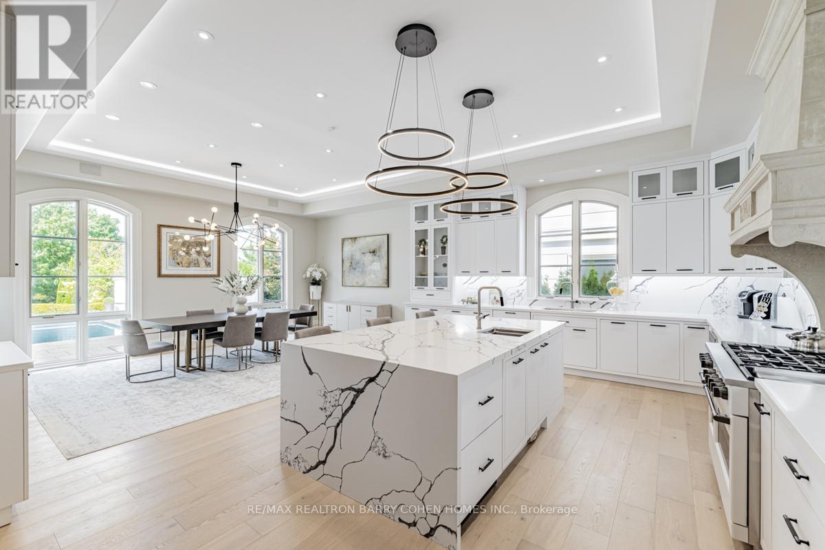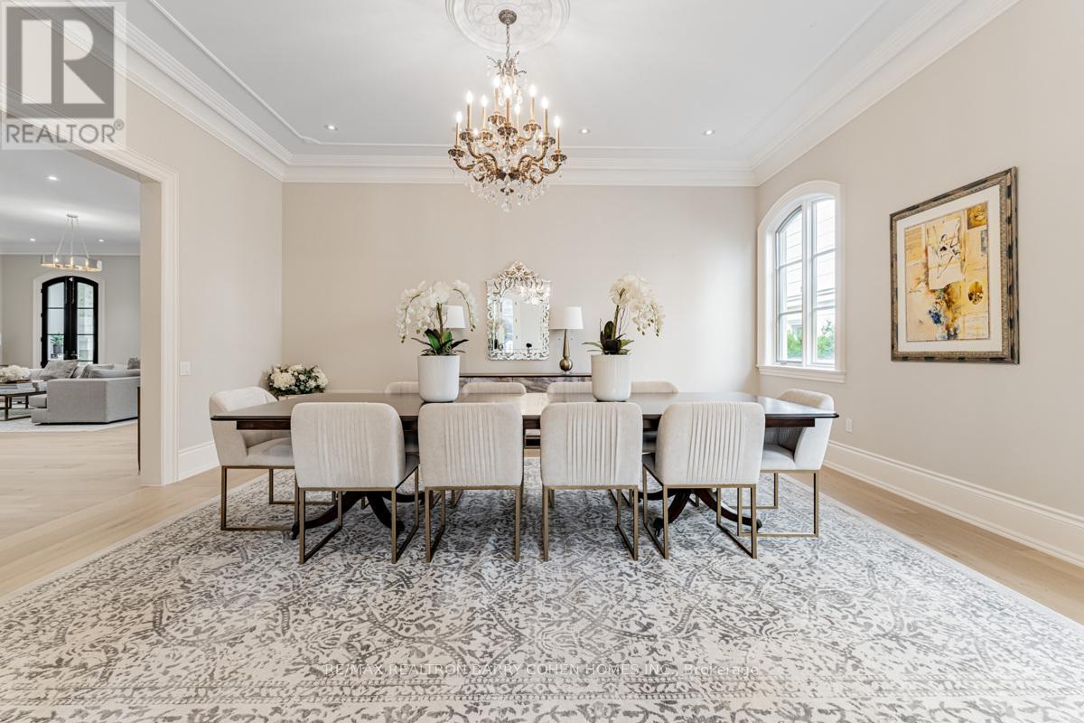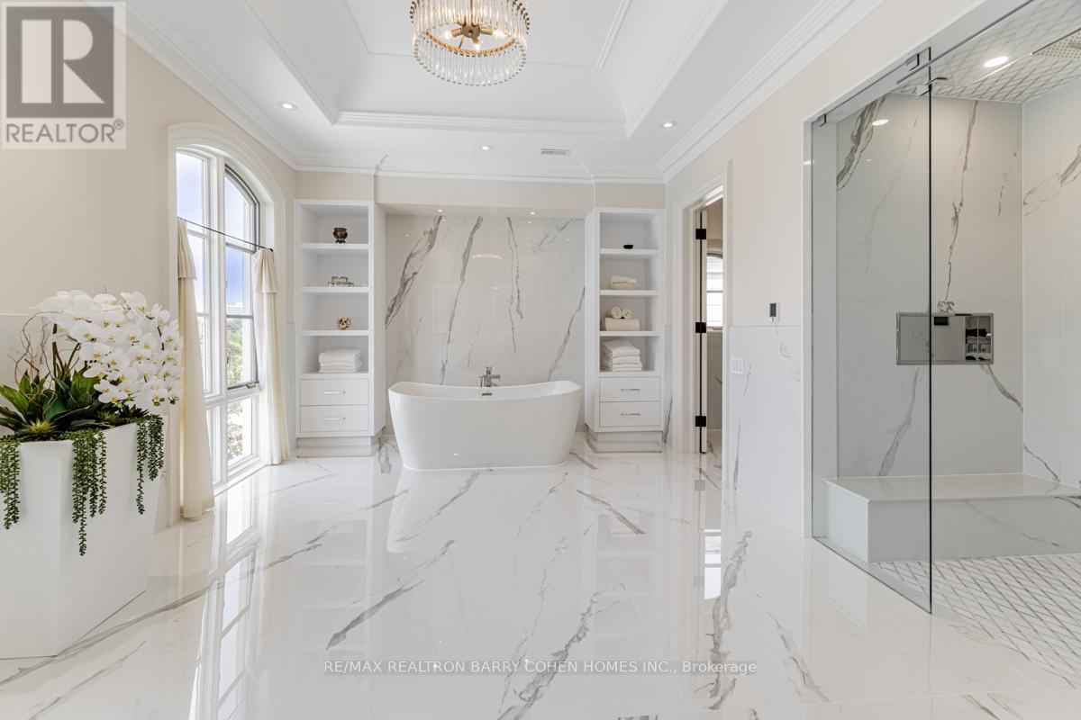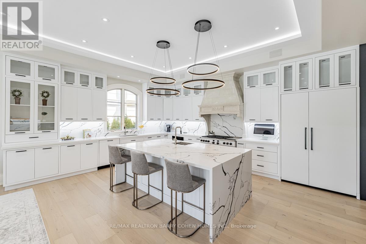 This sprawling, classically designed mansion has a gated front entrance to a circular courtyard with formal gardens with over 10,000 Sq-ft liveable area combined "Lower & upper levels" and lot size of 100 ft X 302 Ft, back to the Prestigious"Thornhill & upland Golf Club" Professionally Interior Designed & Furnished - 6+2 Bedrooms,9 Washrooms- Showcasing A Grand Cathedral Foyer, Magestic Archways And 11 Ft Ceilings with Elevator, Multiple Walk-Outs To Terraces & Enclosed-Veranda Overlook The Backyard Retreat & Swimming Pool Oasis, professional landscaping, heated driveway and surrounding wrought iron fencing with an entrance gate, Kitchen highlights include a hardwood floor, granite counters, a large centre island/breakfast bar with an integrated sink, a pantry, pot lights, a detailed decorative ceiling, custom backsplash, high-end stainless steel appliances, a built-in desk, arched windows, and a sliding door walkout to a covered patio. Off the kitchen is a covered outdoor loggia in Italian with a wood-burning fireplace. The living room features a hardwood floor, crown moulding, a wood-burning fireplace with detailed plaster surround, a ceiling medallion and chandelier, and two arched double garden-door walkouts. In the dining room, highlights include a hardwood floor, a chandelier and two arched windows. The office features rich wood walls, a coffered wood ceiling, wall sconces, floor-to-ceiling built-in shelves, and two double-door walkouts to the front. The backyard has a covered patio, an inground pool, a three-piece bathroom, a cabana, an inground hot tub, a large lanai with a wood-burning fireplace, an outdoor kitchen with stainless steel appliances and a dining area, fountains, gardens, a potting shed, and lawn space. The lower level wine room, a 700-bottle wine cellar, features cabinetry, counter space, exposed brick walls and ceiling, a tile floor, a games room and a soundproof movie theatre.3-car garage and 12 parking spaces. (id:4555)