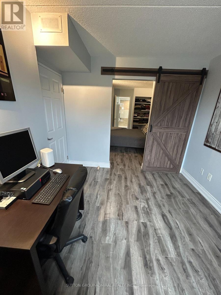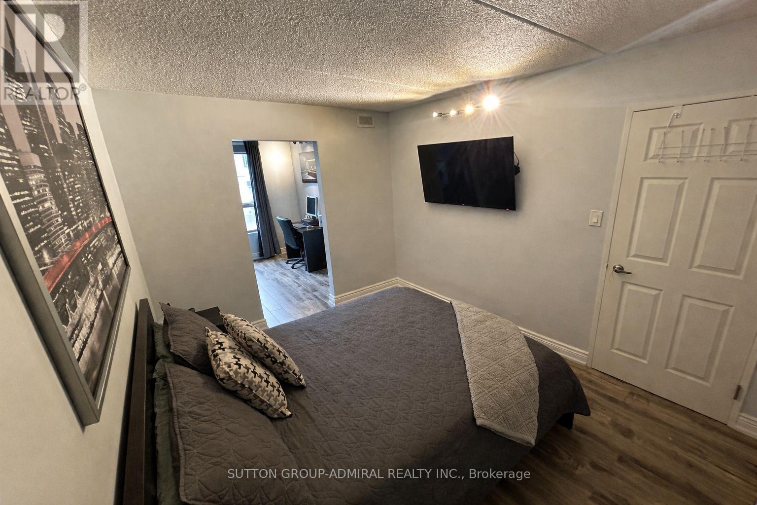 Immaculate condo nestled beside the scenic Humber River and Boyd Conservation Park. Thispremium 1+1 bedroom suite includes parking and a locker, offering the perfect blend ofcomfort, style, and convenience. Featuring modern laminate flooring throughout and abeautifully renovated bathroom with a sleek glass shower, it is Freshly Painted and move-inready. The spacious primary bedroom provides a relaxing retreat, while the versatile den isideal as a home office or can easily function as a second bedroom. Enjoy a welcoming foyer, in-suite laundry, and an open, functional layout designed for everyday living. Step out ontoyour oversized private balcony-perfect for morning coffee or unwinding in a peaceful setting.Residents have access to excellent amenities including a party room, rooftop terrace, securitysystem, and ample visitor parking. Ideally located just steps to transit, schools, parks, andthe Humber River trails, with quick access to Highways 7, 400, and 407-making commuting abreeze. A perfect opportunity for first-time buyers, downsizers, or investors seeking a well-appointed home in a prime location. (id:4555)